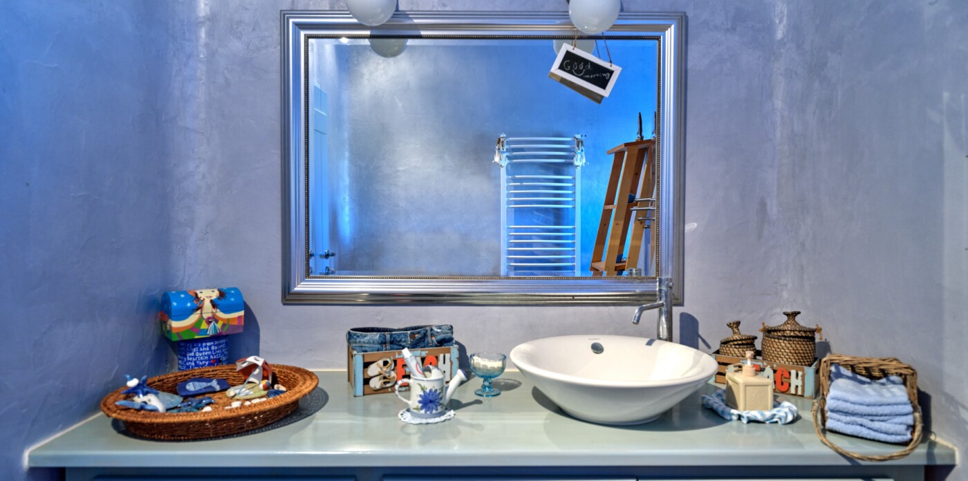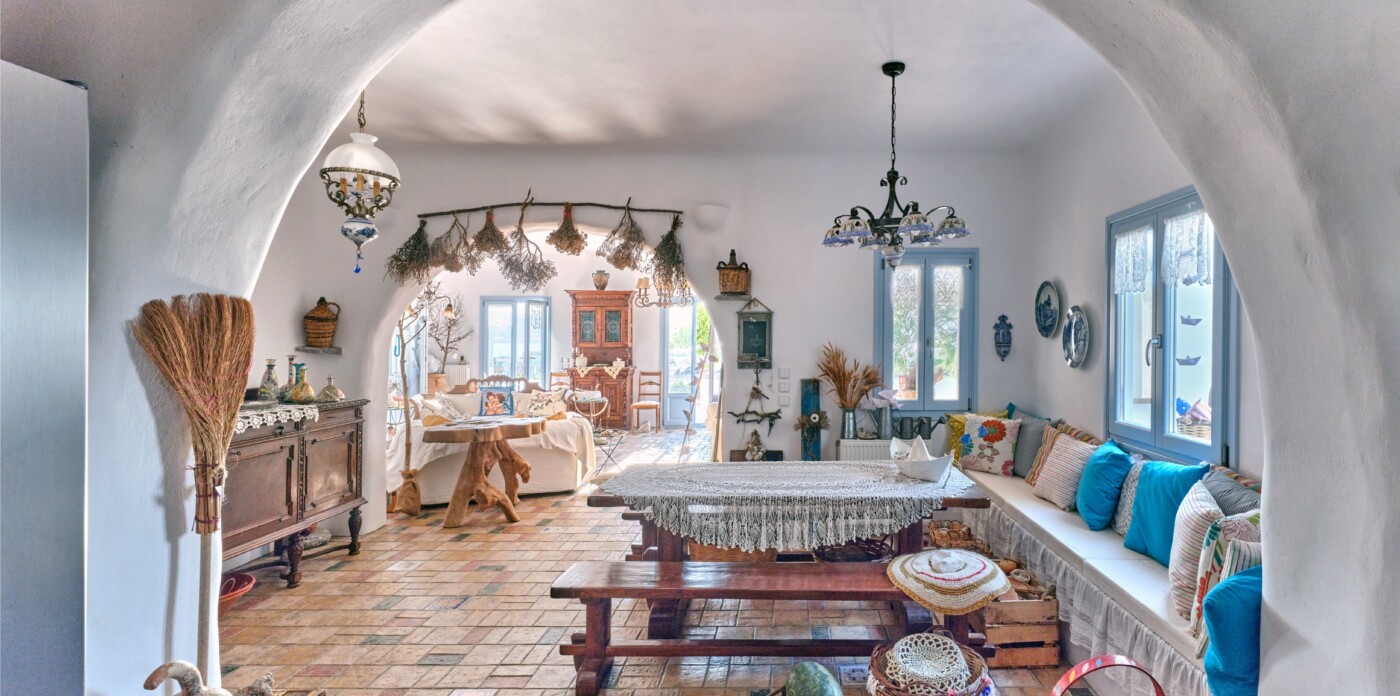 Step inside to discover interiors infused with timeless elegance. Decorative arches and exposed stone walls whisper tales of the island’s history, while wooden beams and marble accents exude a sense of warmth and refinement.