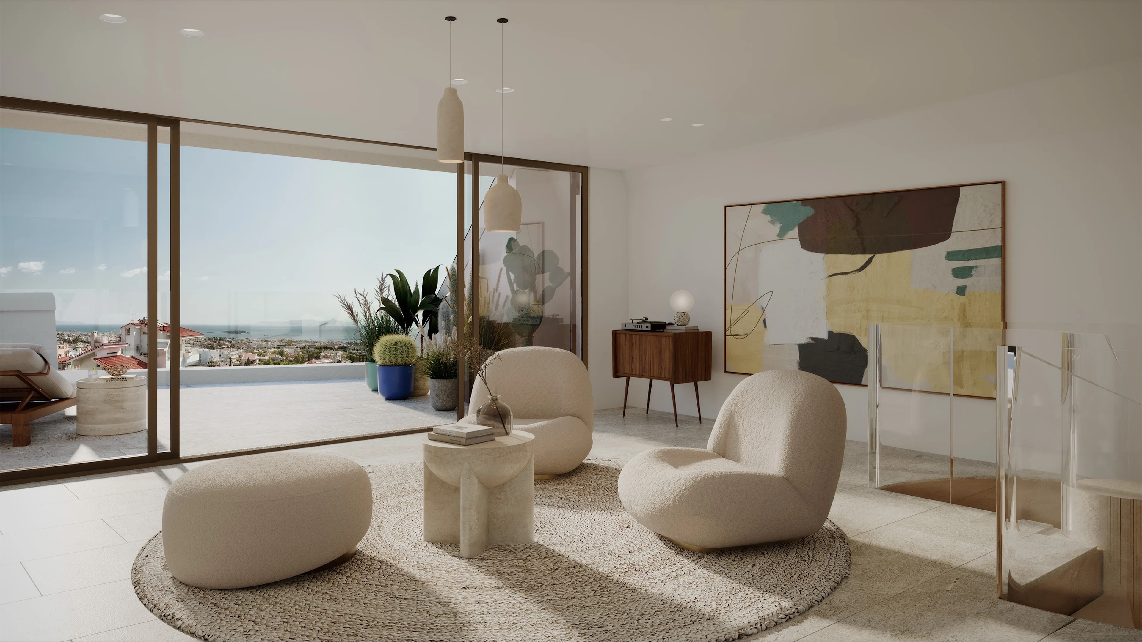 Crafted by the internationally acclaimed Greek architects, Porphyrios Associates, the warmly minimalist design seamlessly integrates private retreats with expansive open-plan areas, offering an ideal balance of solitude and space for family gatherings and entertainment. Each residence boasts premium materials, thoughtful layouts, and captivating views of the surrounding gardens and azure sea.