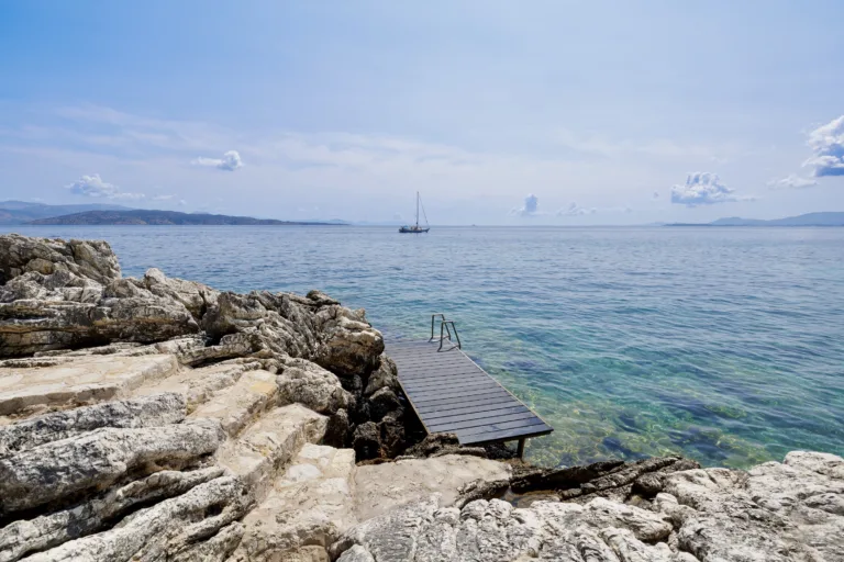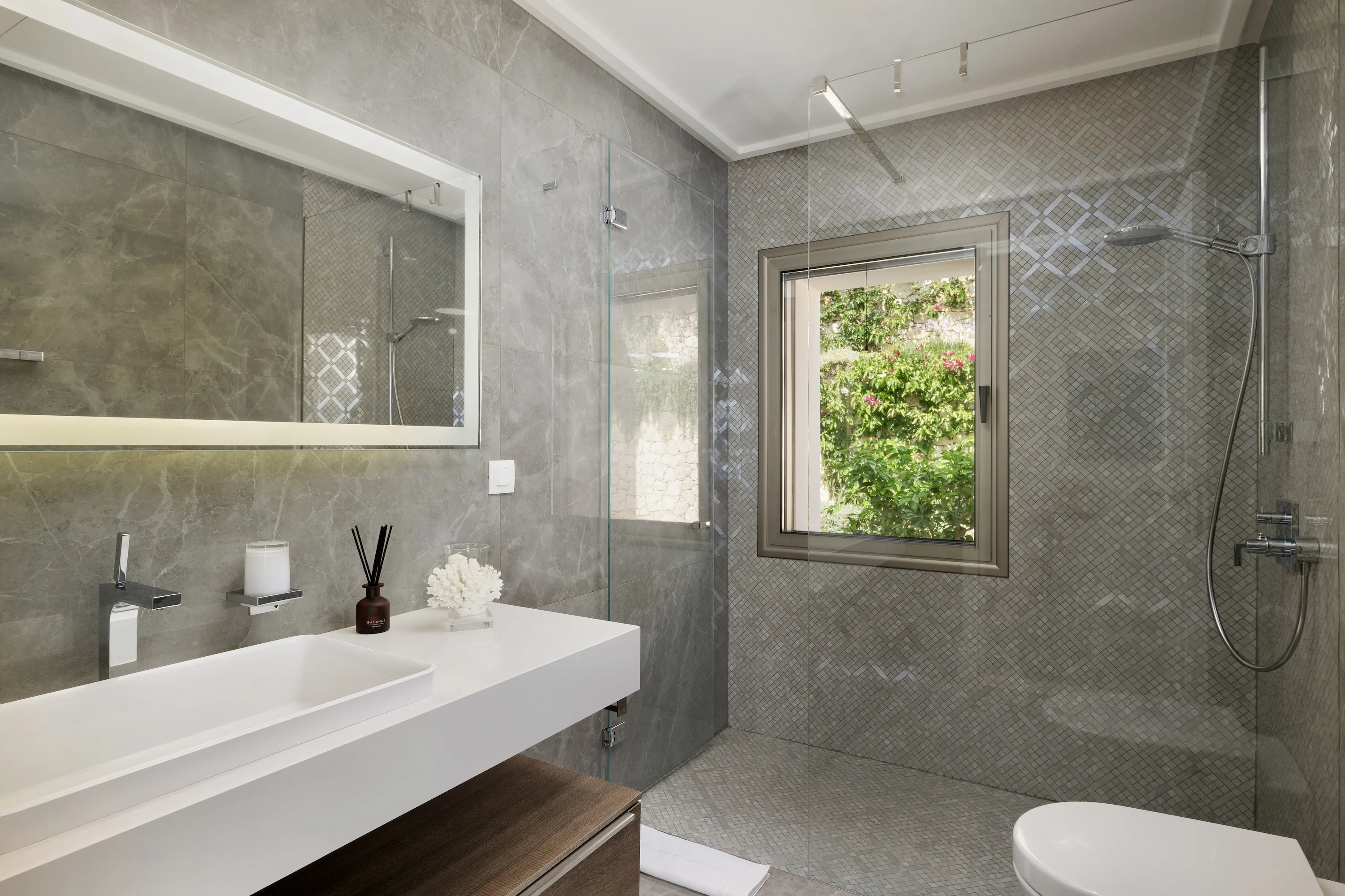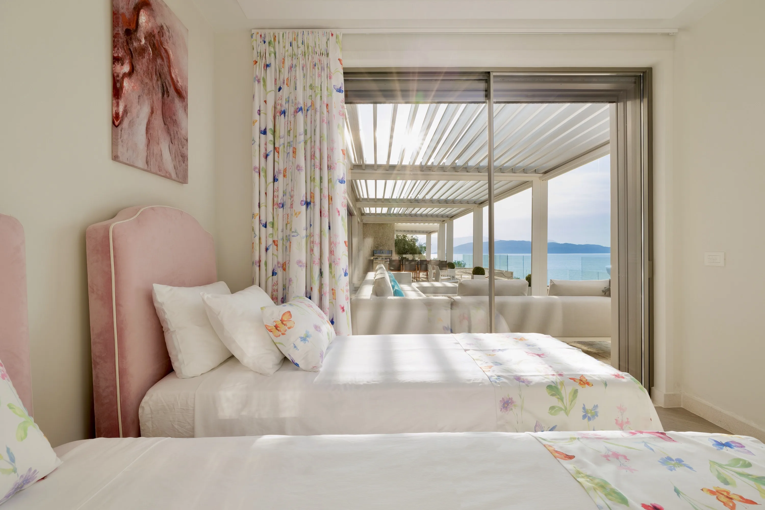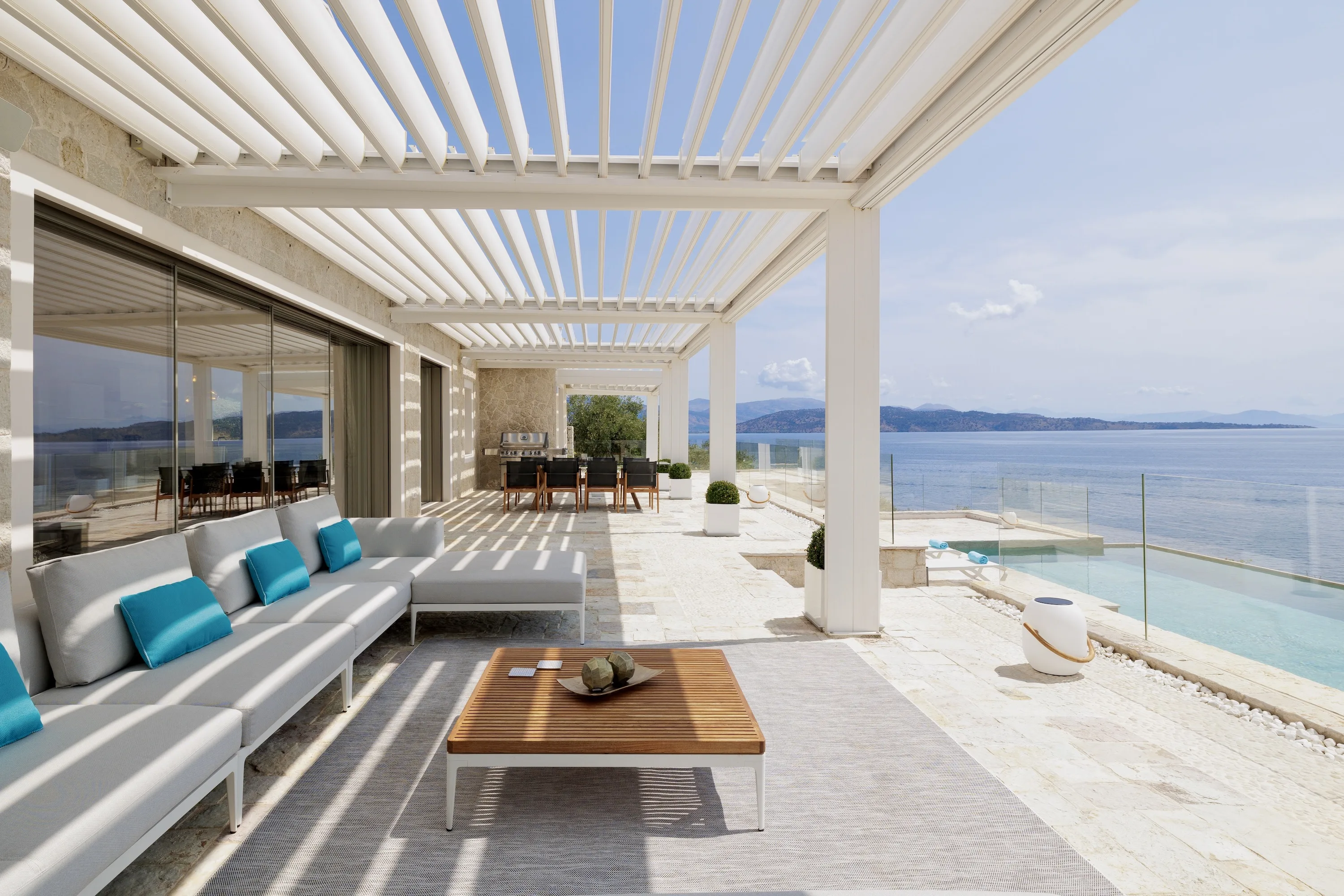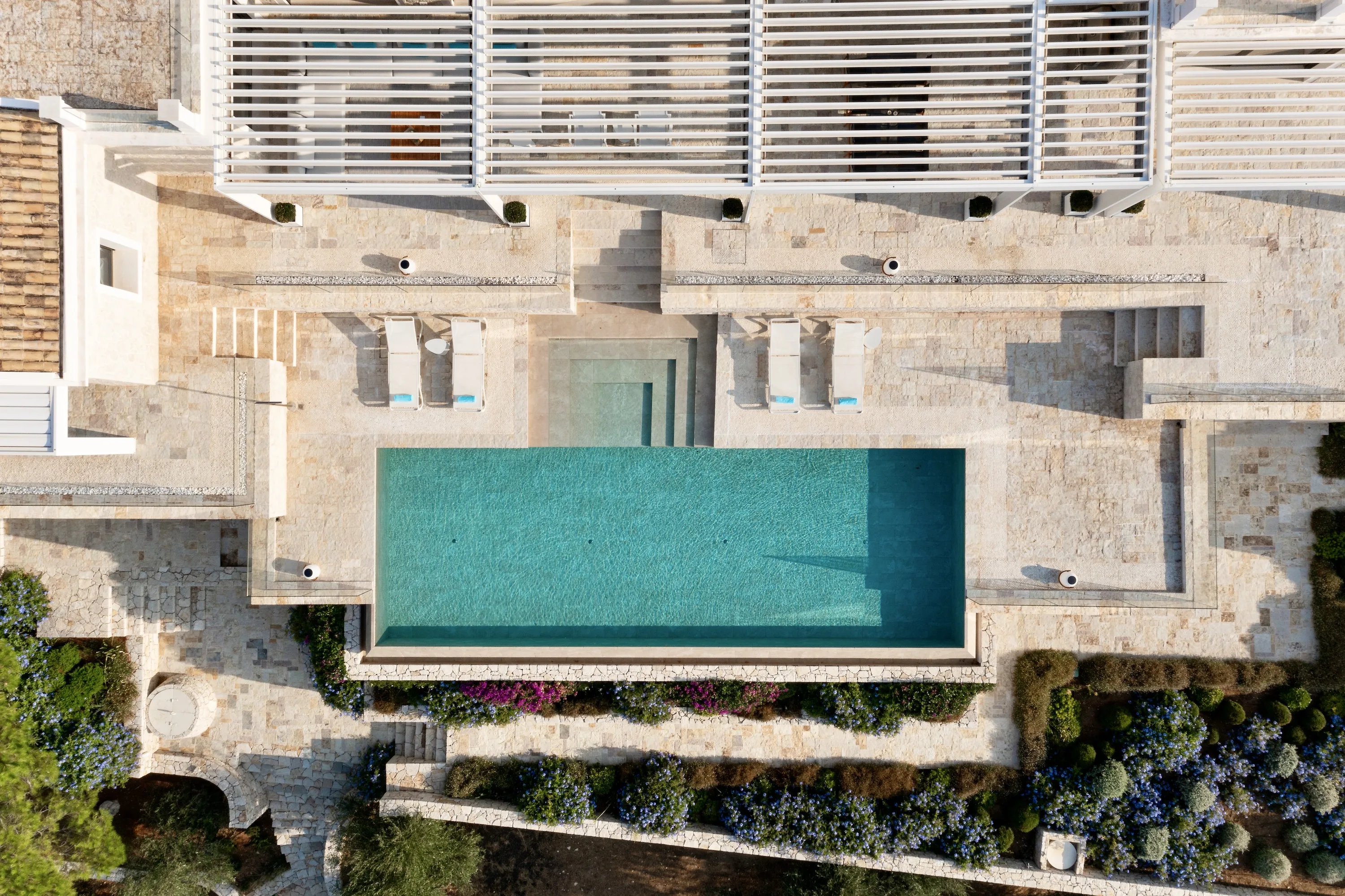 Located in Agni, Ayline is situated just a brief stroll from the picturesque bay and its famous beachfront restaurants. The villa showcases a unique blend of Corfiot and Venetian architectural influences fused with modern aesthetics. Two distinctive features are the windows that amplify the panoramic views and the stone used on the façade and exterior walls, which was sourced directly from the property’s grounds. Each stone was meticulously hand-shaped by a skilled craftsman and fitted together like pieces of an intricate puzzle.
