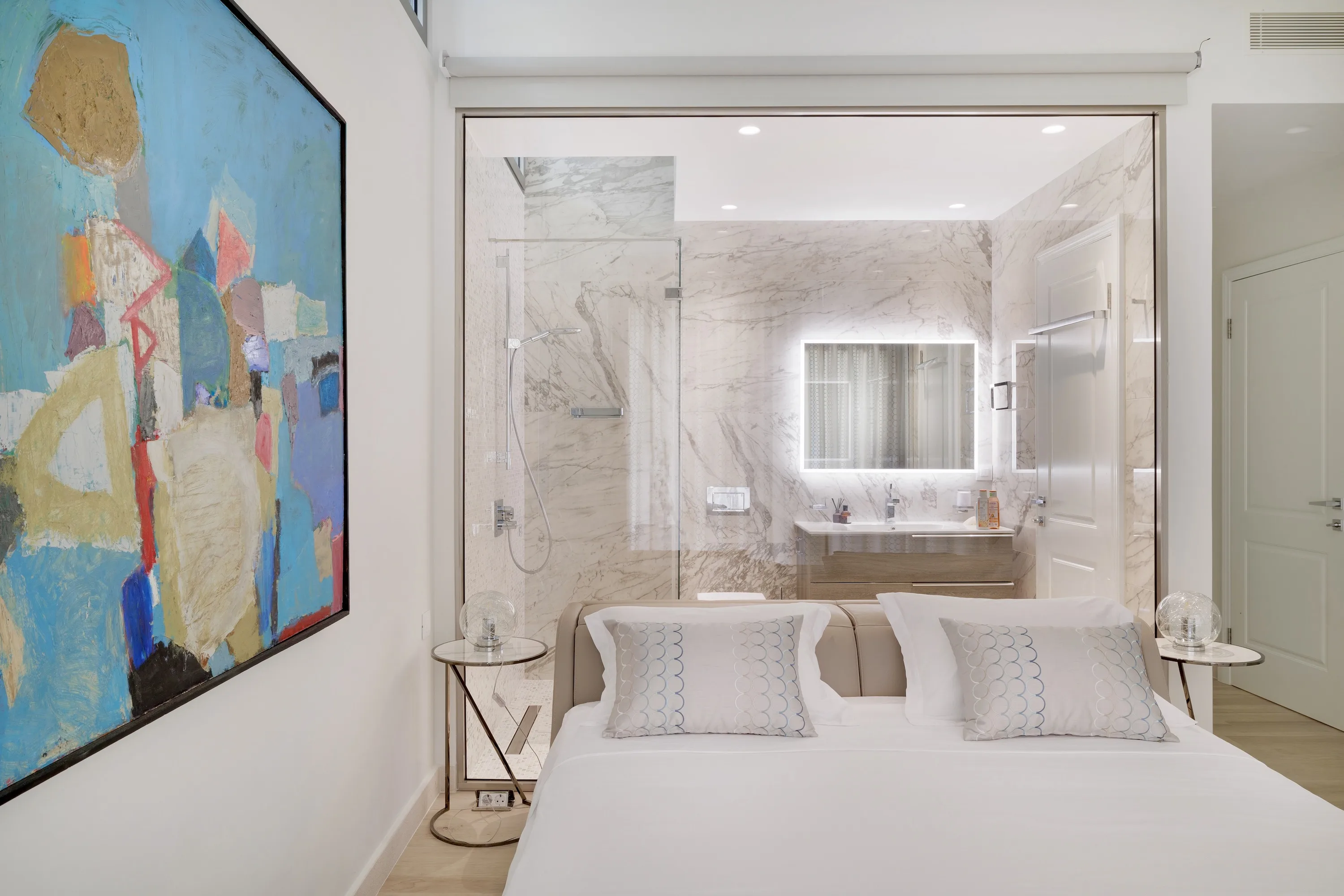 Ayline is on two levels and the living spaces are enhanced by exquisite interior design featuring contemporary French and Italian furnishings.