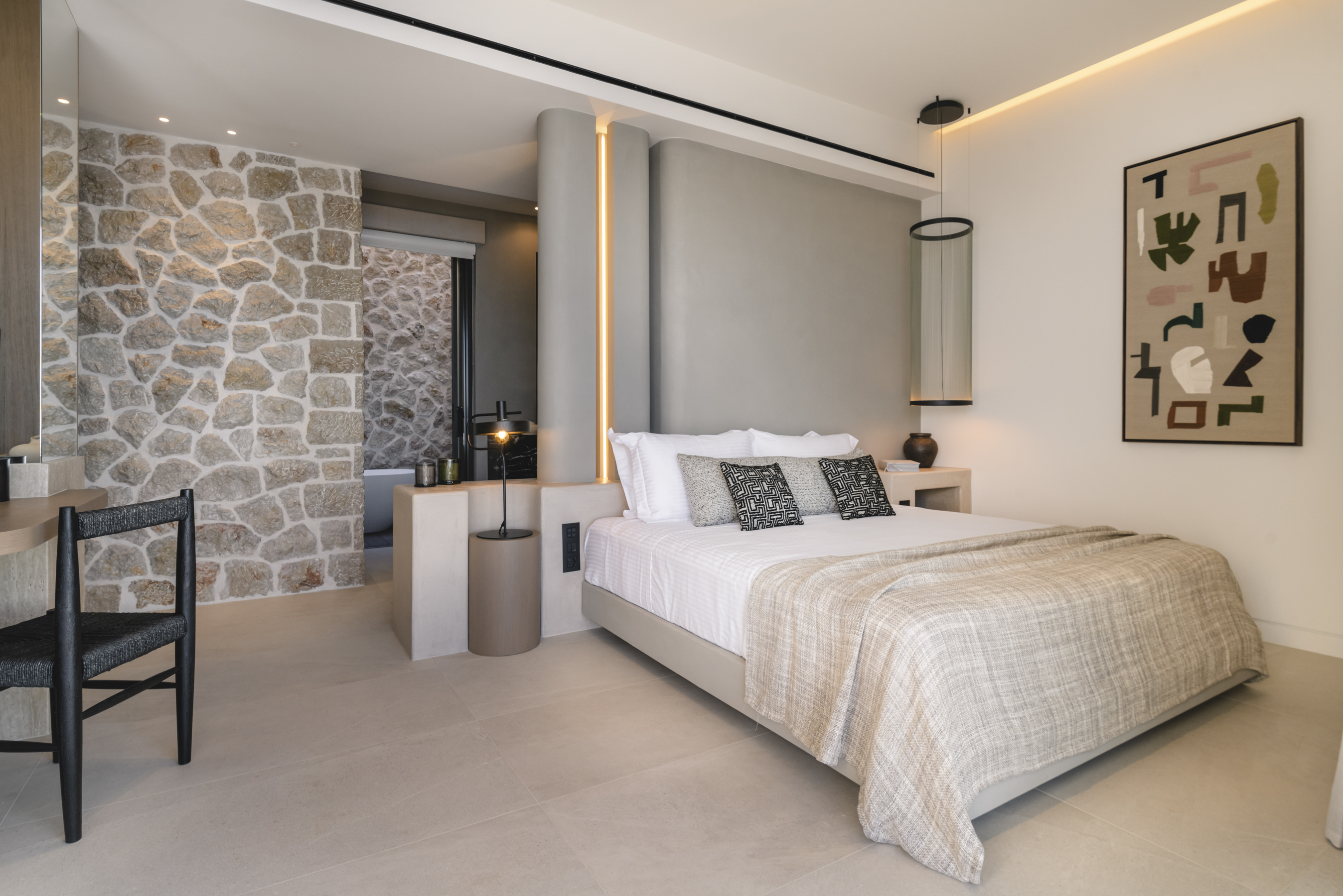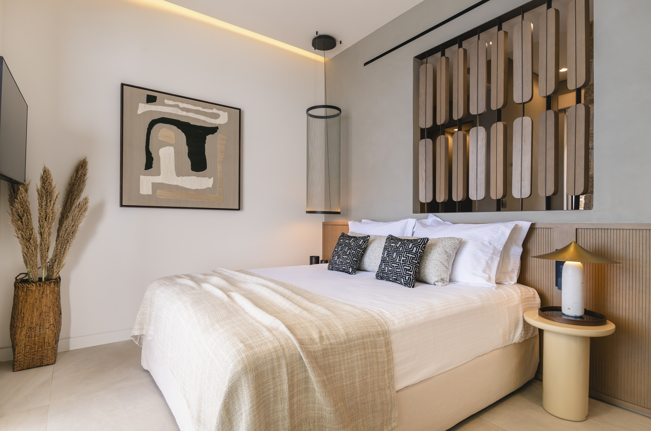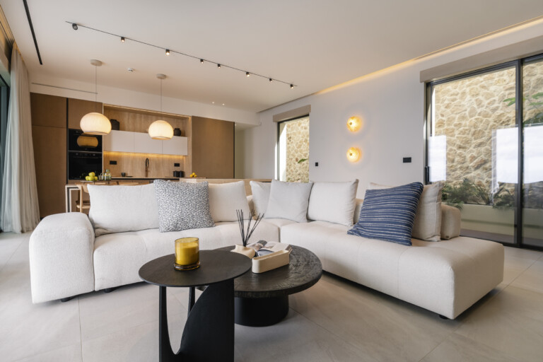 Designed to harmonize with its natural setting, the villa features spacious terraces, an infinity pool, and floor-to-ceiling windows that showcase the spectacular views from every room. A modern, warm aesthetic prevails in the interiors, with high-end finishes and contemporary design providing a luxurious and stylish environment.