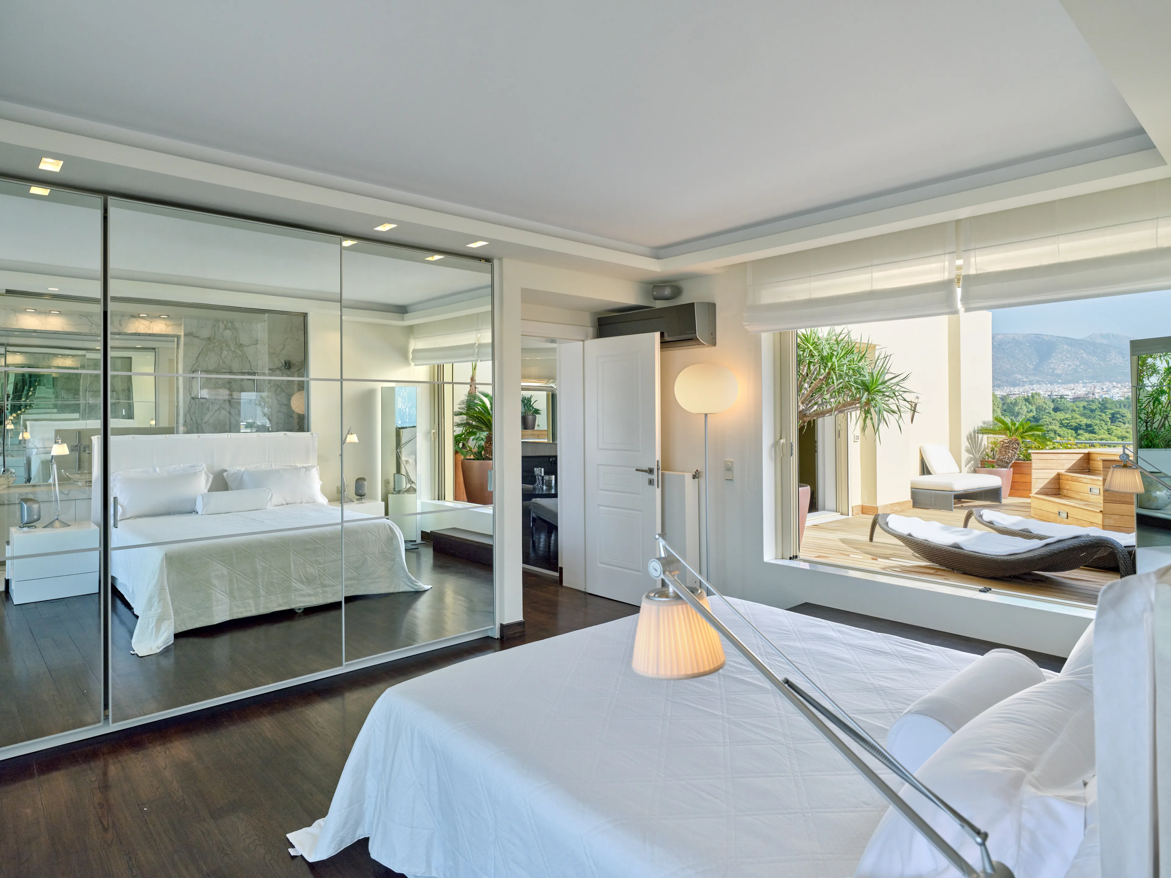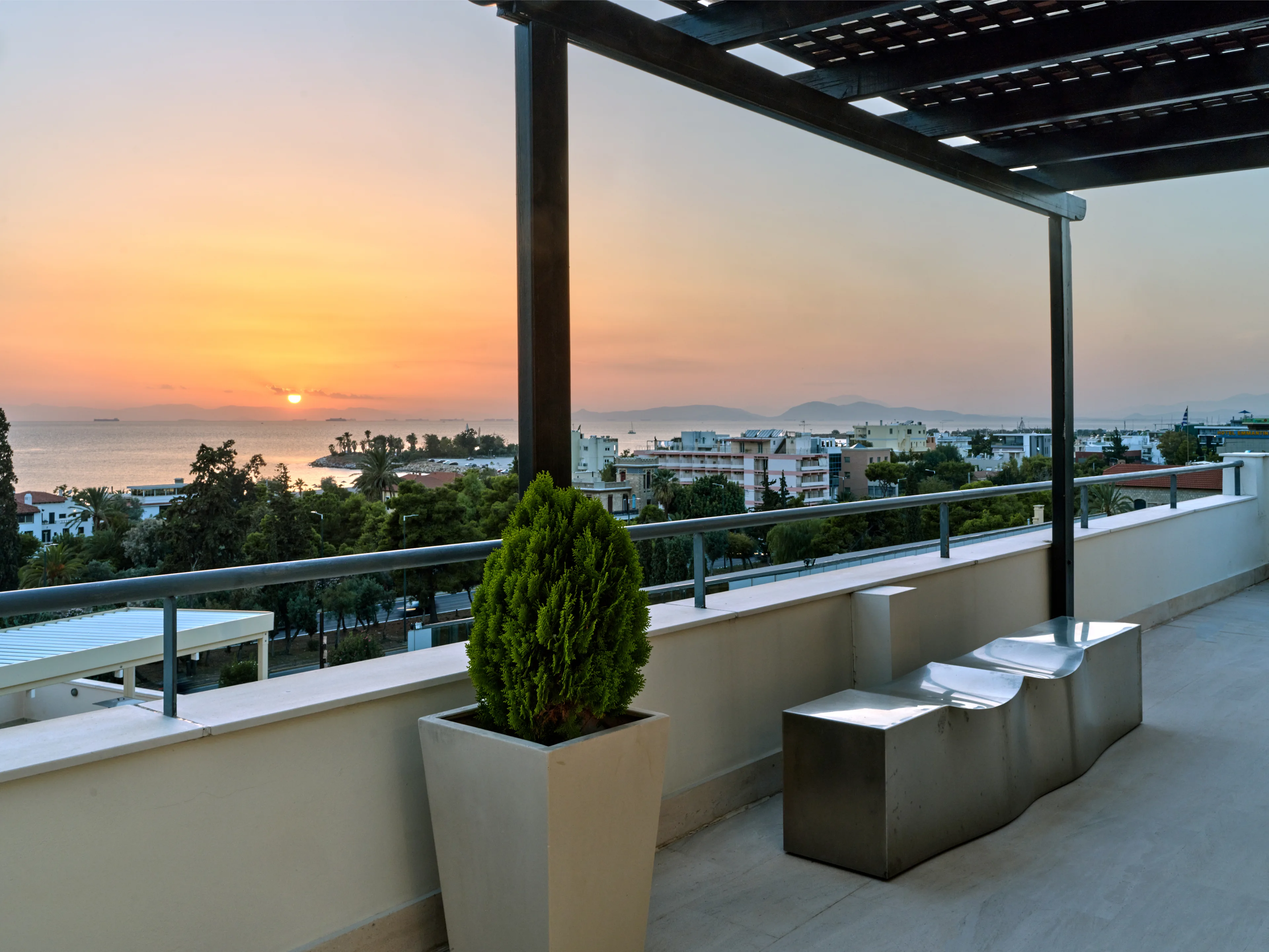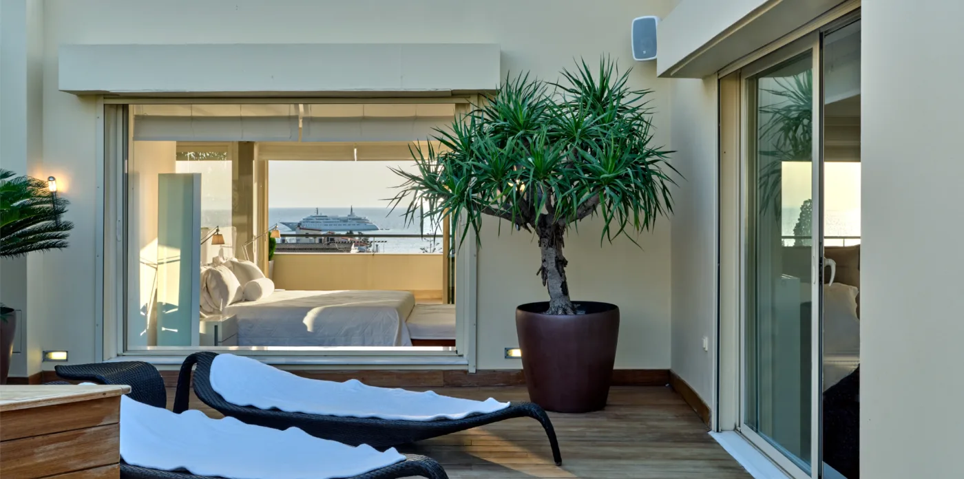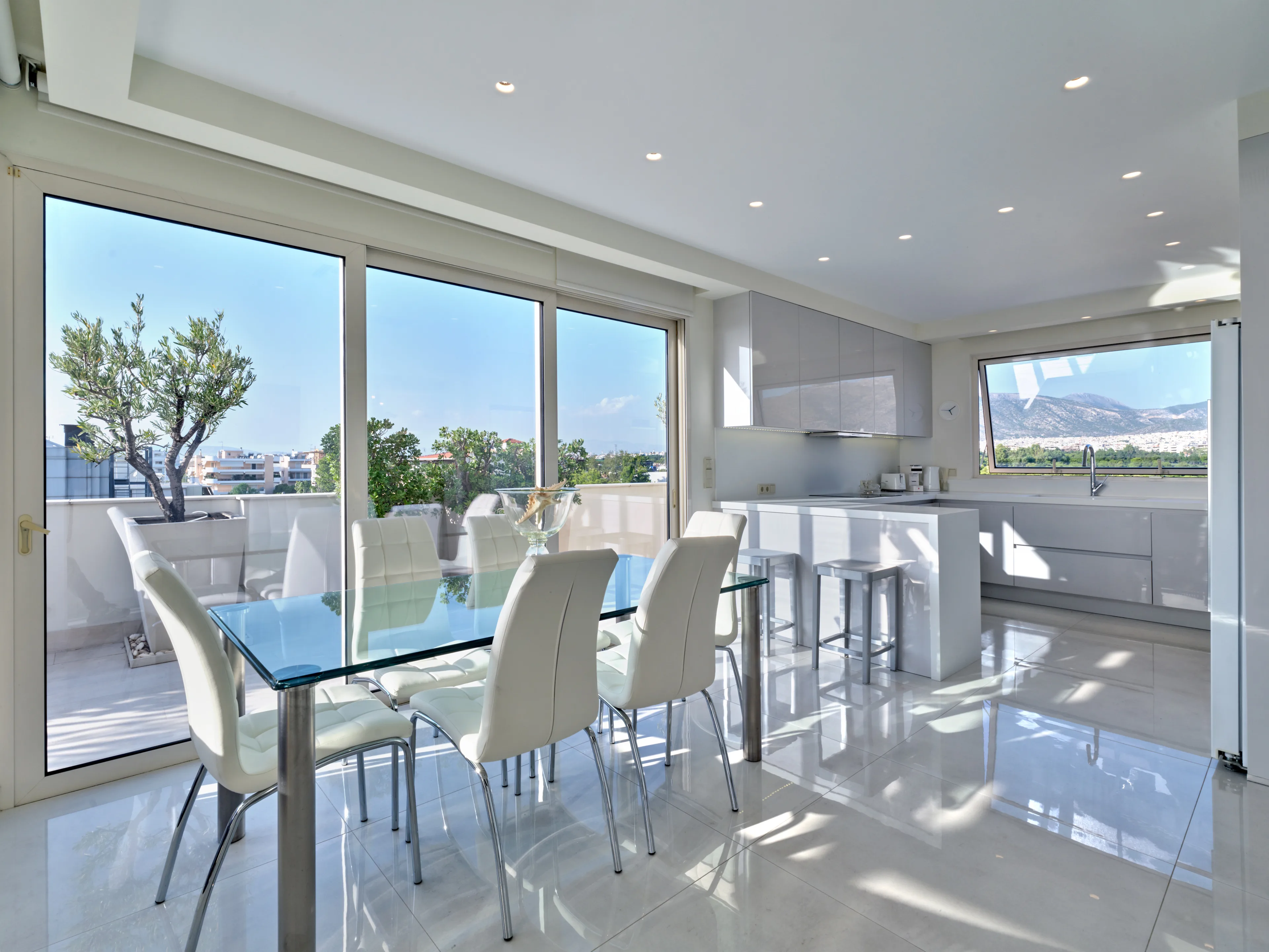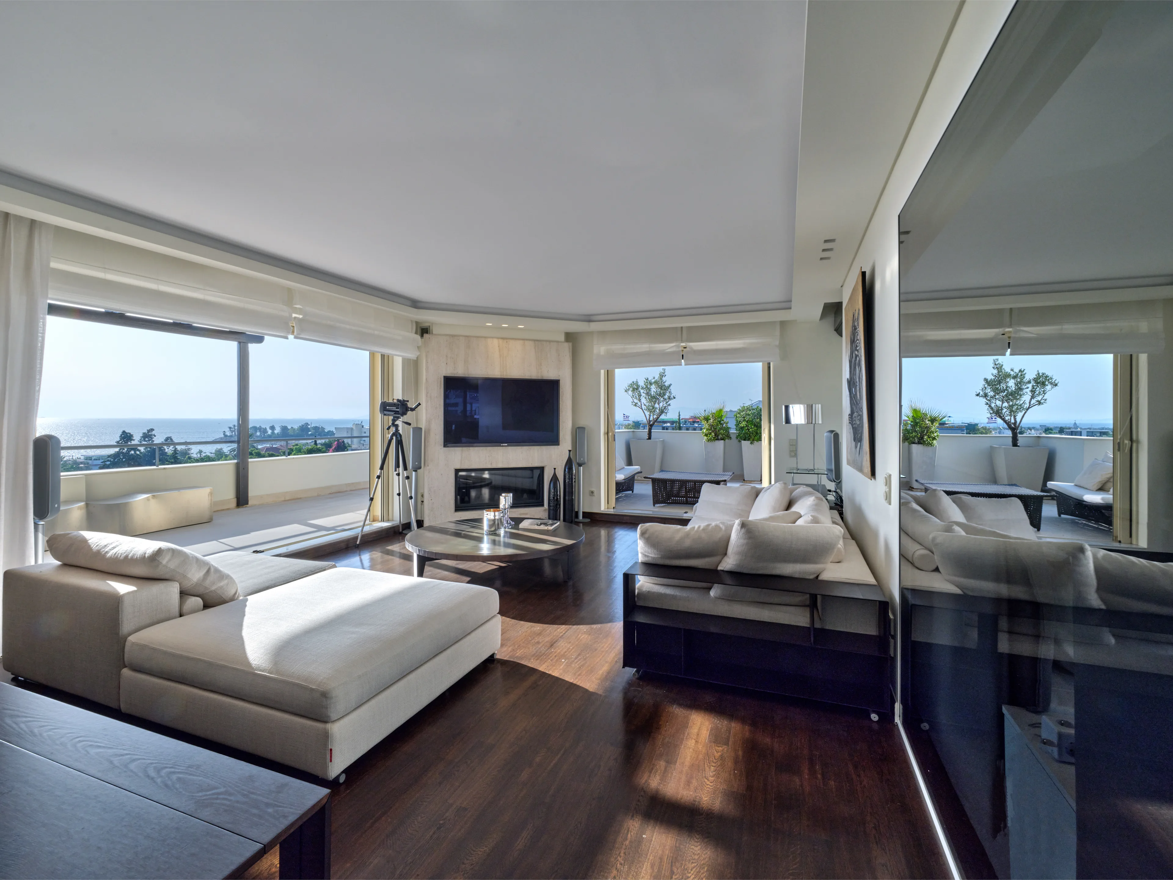 The unique penthouse is optimally located in the well-sought-after suburb of Glyfada, on the Athens Riviera, where a collection of fine dining restaurants, designer boutiques, and high-end marinas reside. Glyfada is internationally known as one of the most captivating resort towns in all of Greece, thanks to its golden coastlines, calm waters, and fashionable beach bars.