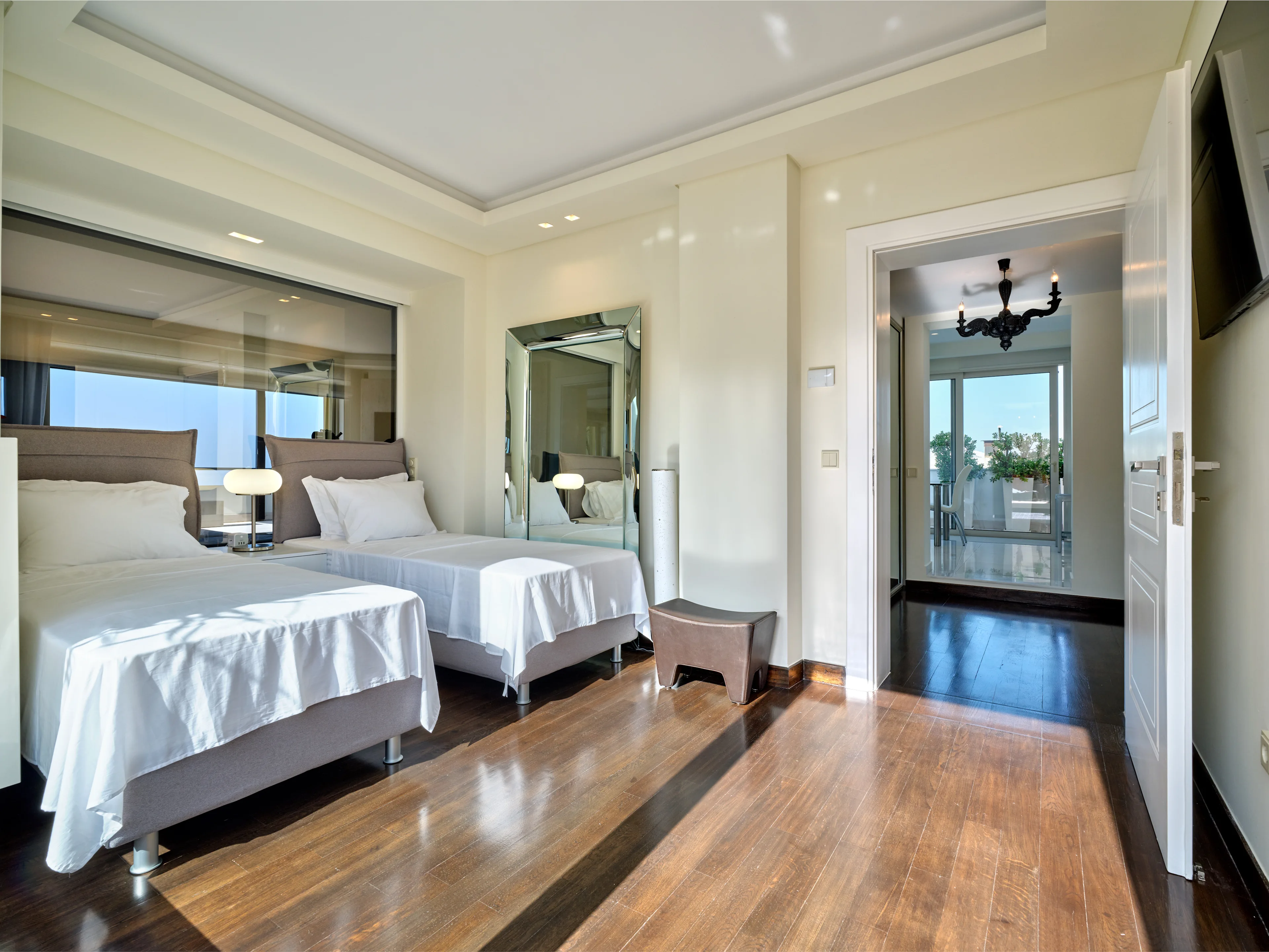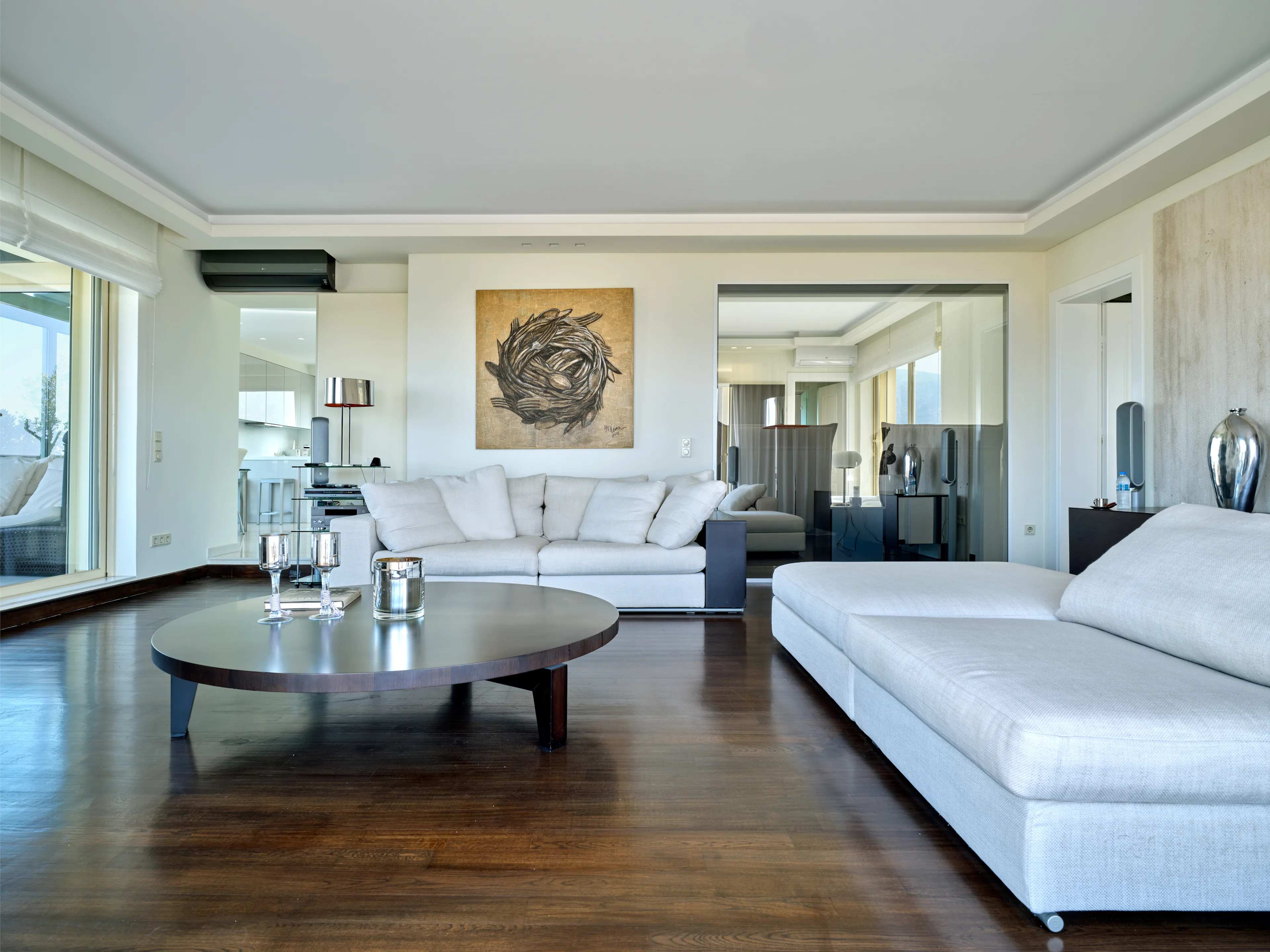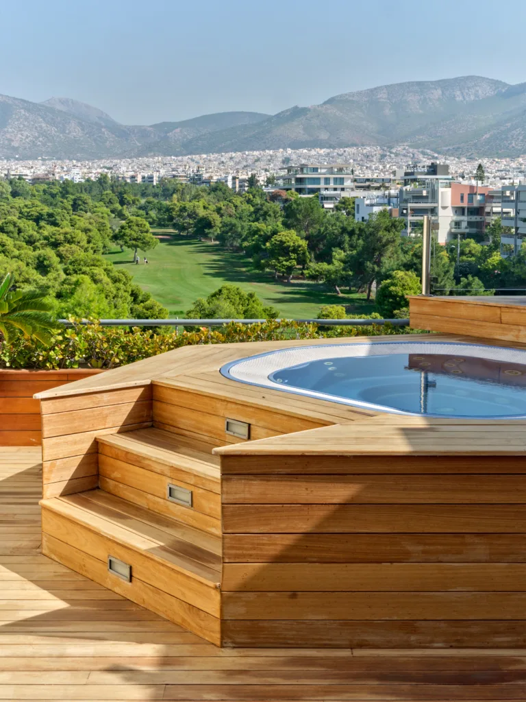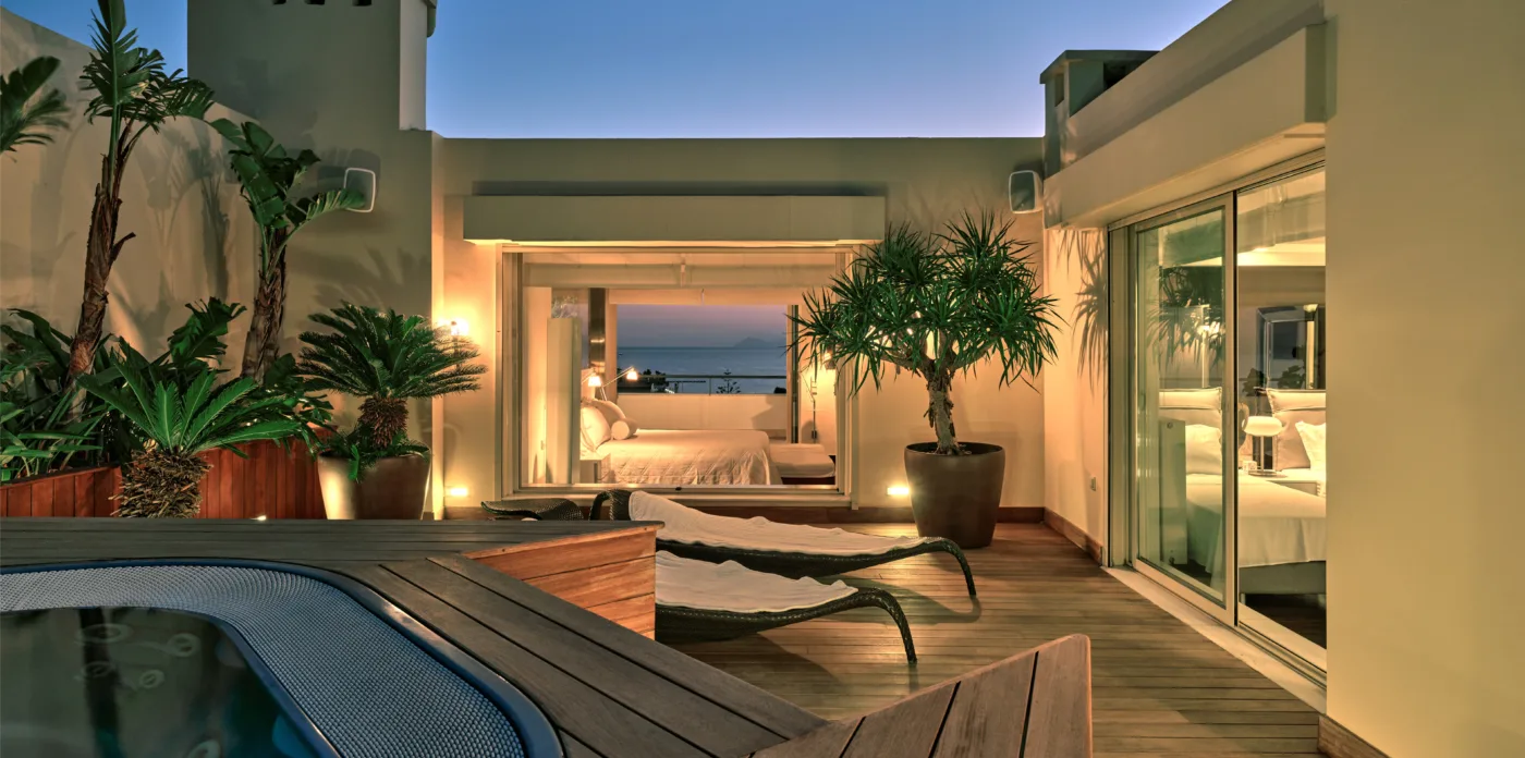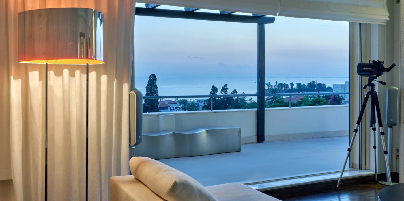 The unique penthouse is optimally located in the well-sought-after suburb of Glyfada, on the Athens Riviera, where a collection of fine dining restaurants, designer boutiques, and high-end marinas reside. Glyfada is internationally known as one of the most captivating resort towns in all of Greece, thanks to its golden coastlines, calm waters, and fashionable beach bars.