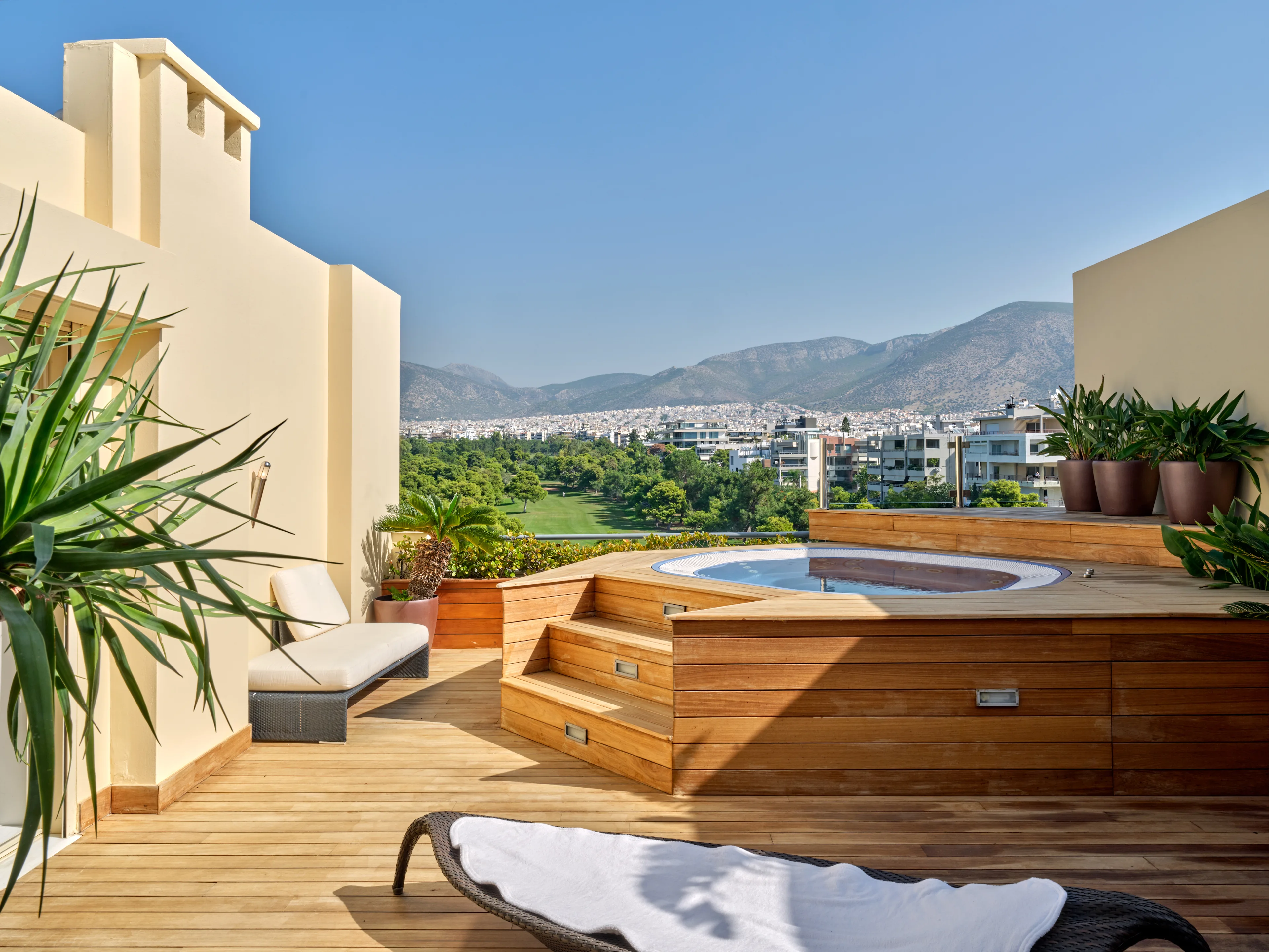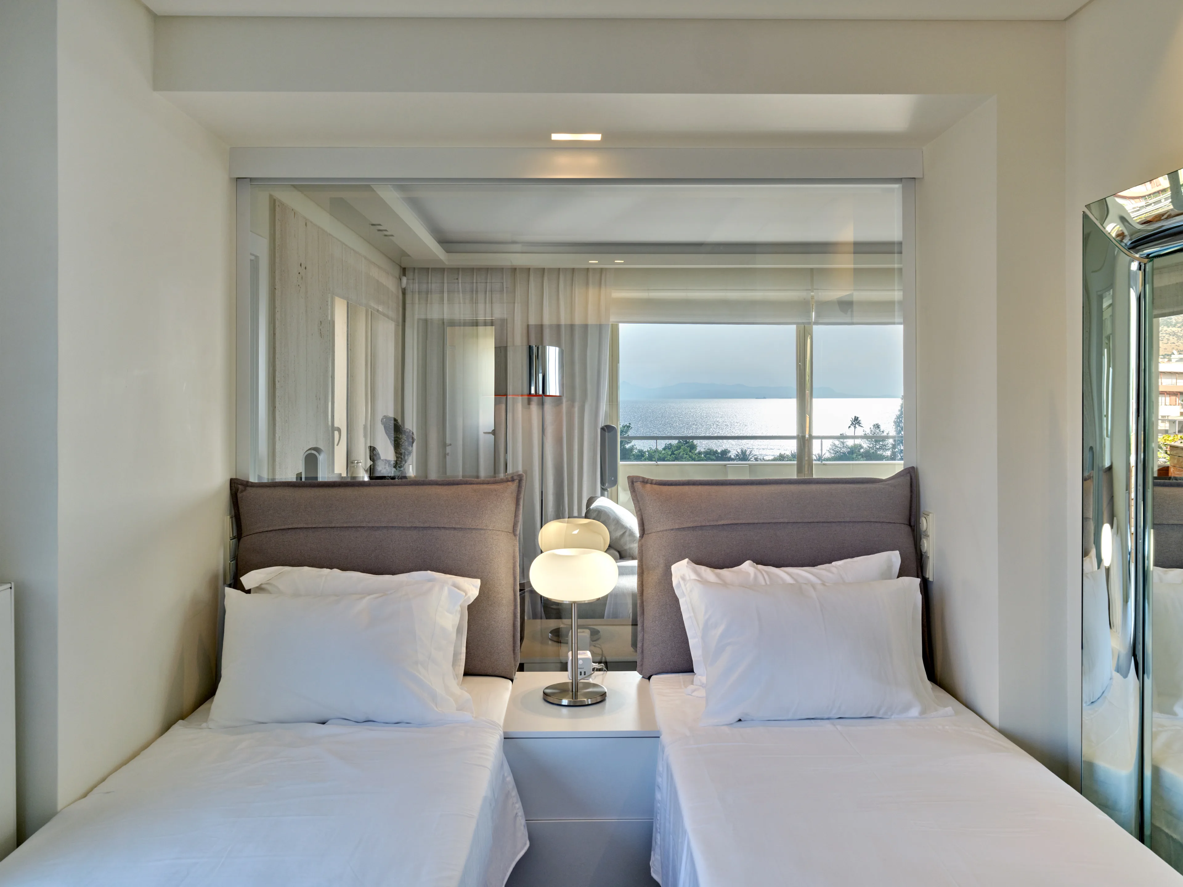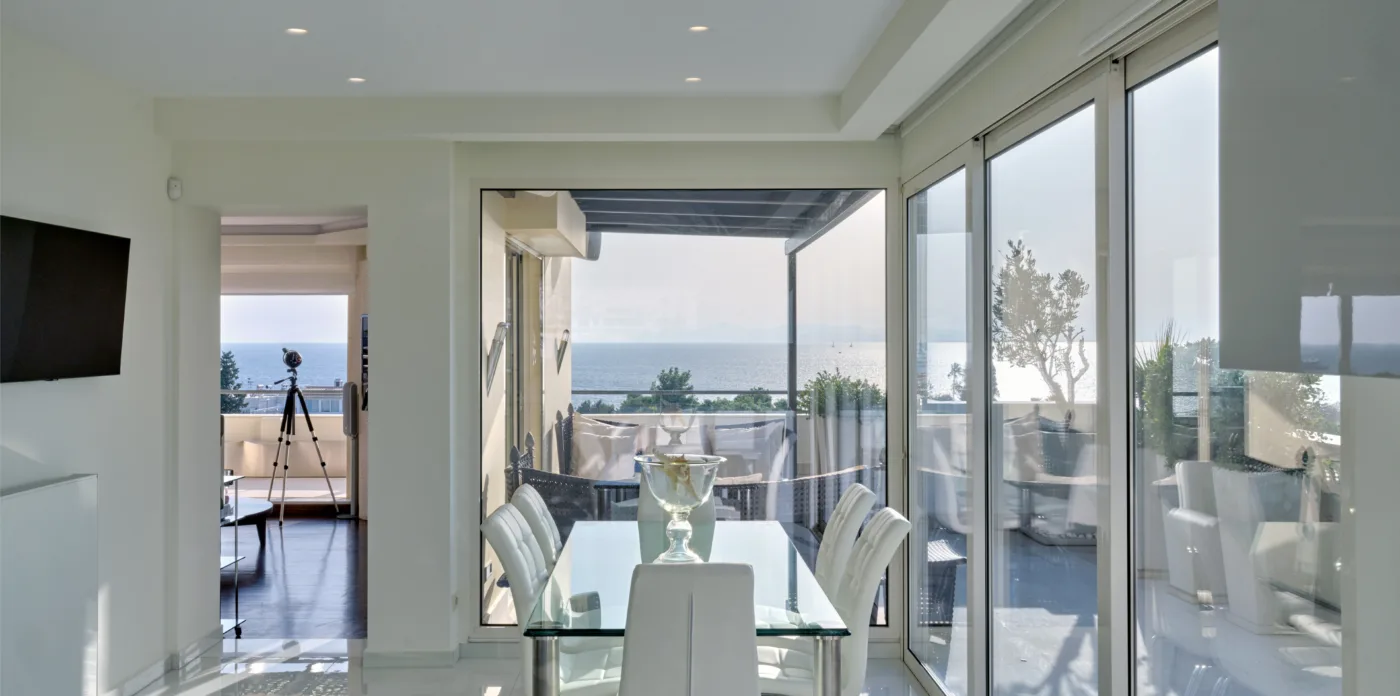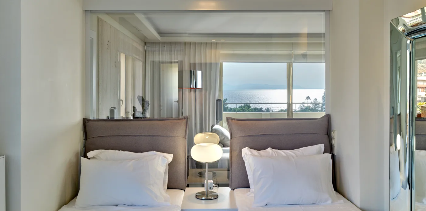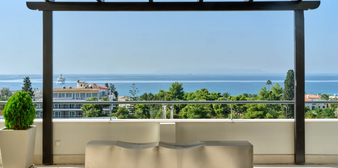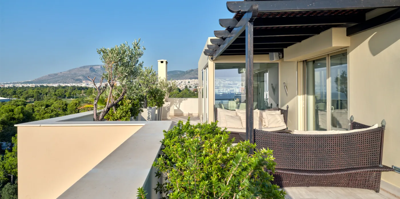 Cesare is a stunning 5th floor penthouse apartment located close to Glyfada Golf club on the Athenian Riviera, with views of the sea on one side and golf park views on the other.