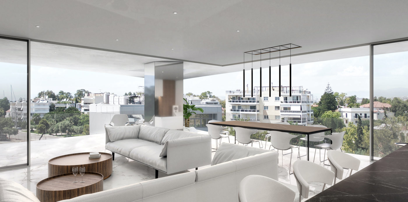 This apartment is the very personification of minimal luxury, combined with the freedom of the sky and the beauty of the sea in one of the most highly prestigious areas of Athens Riviera.