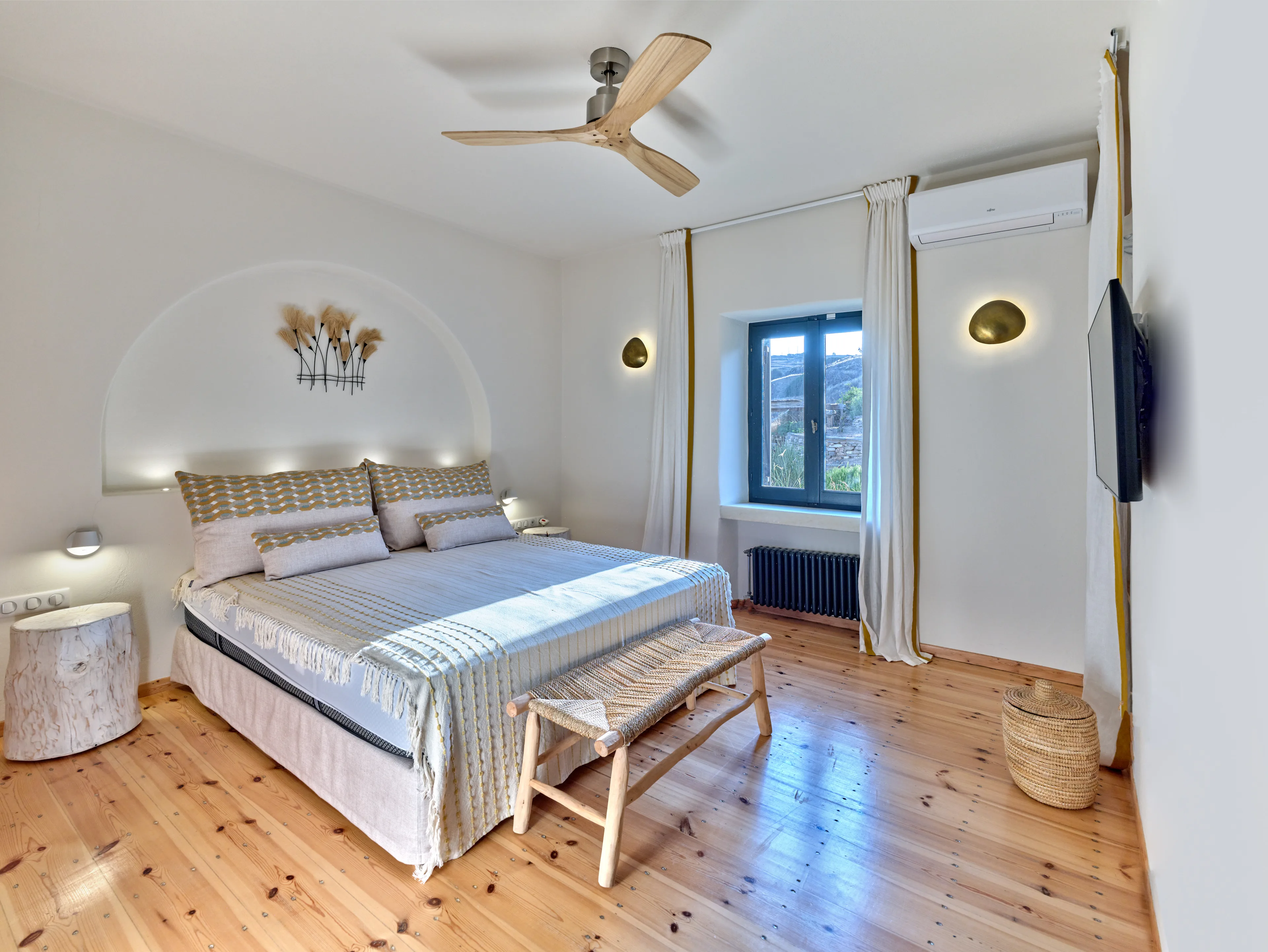Each one of the four bedrooms have been thoughtfully designed to provide unobstructed views of the sea, allowing you to awaken to views of the Aegean every morning.