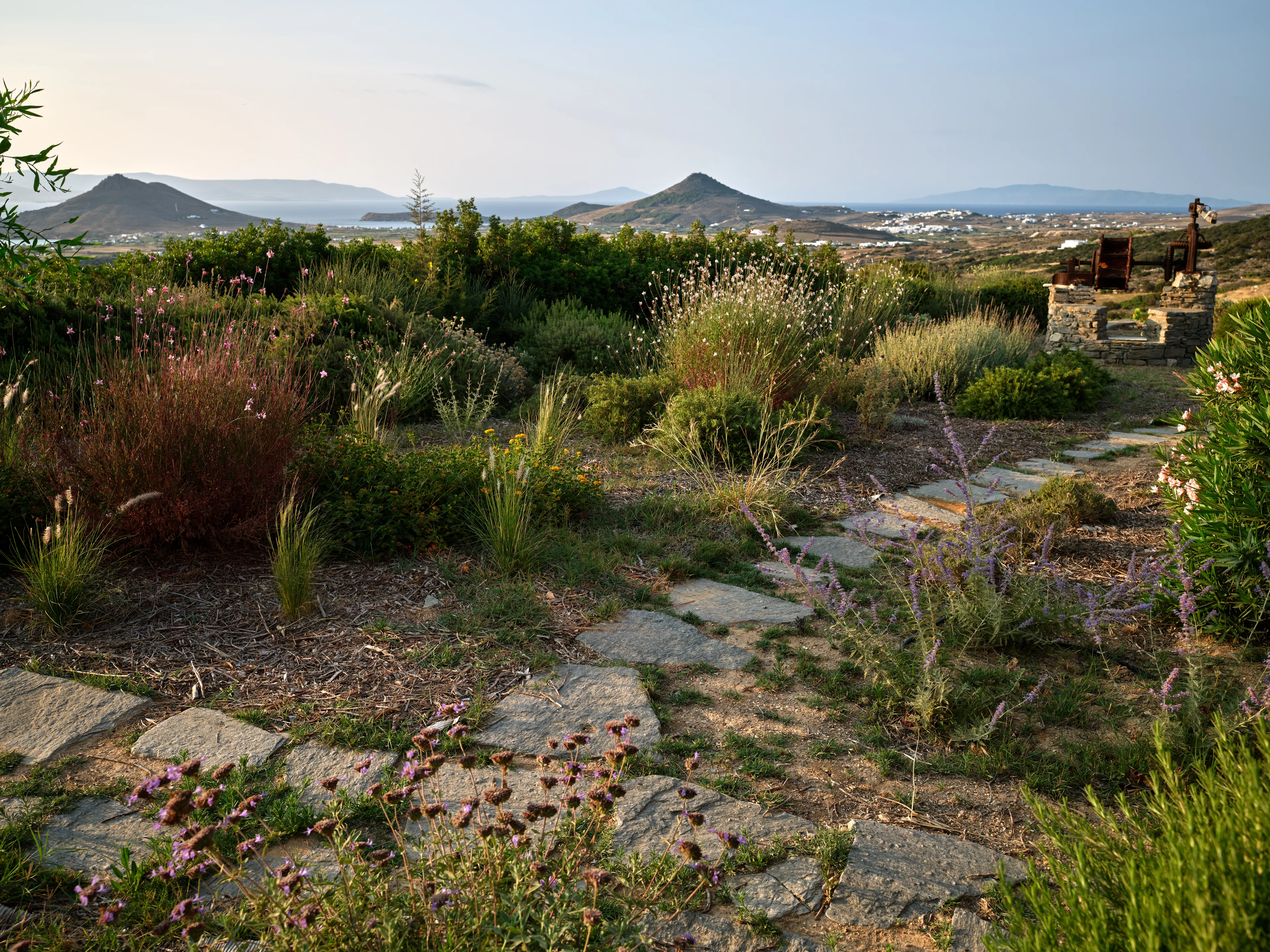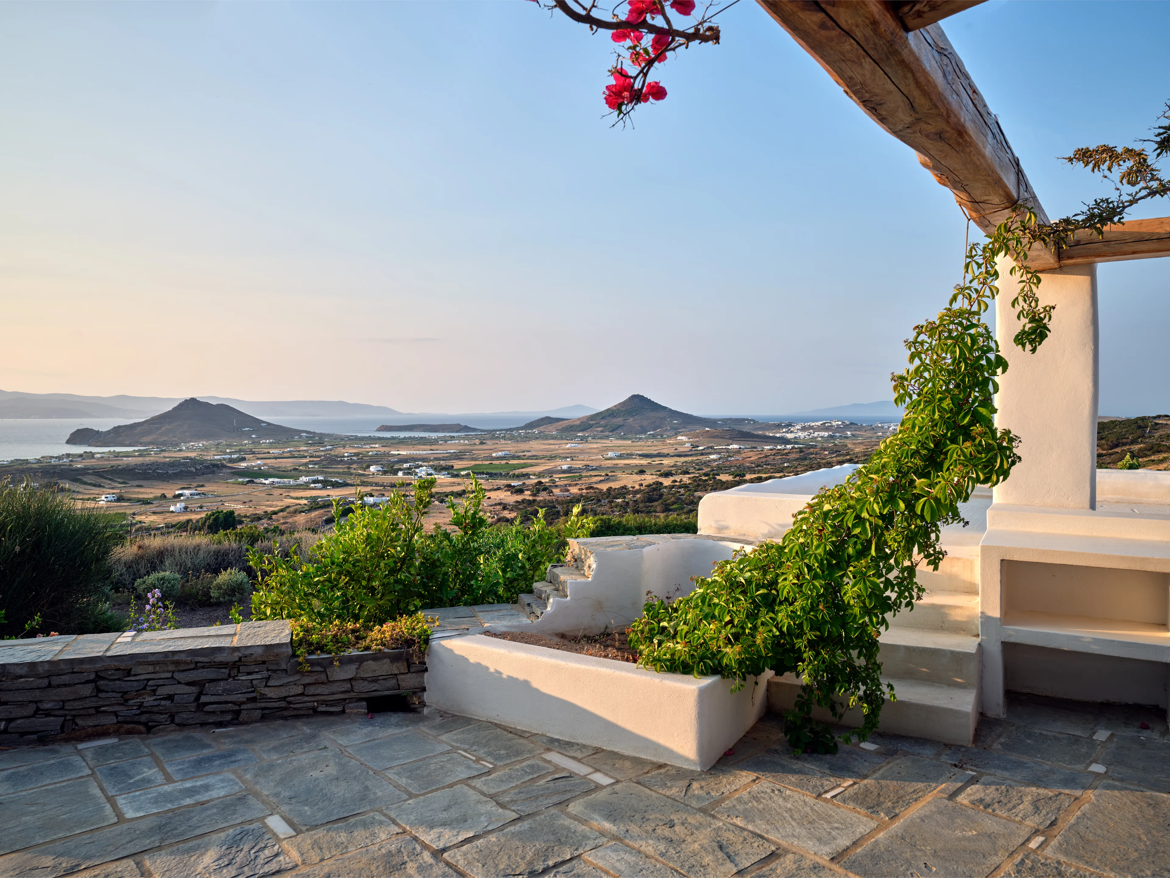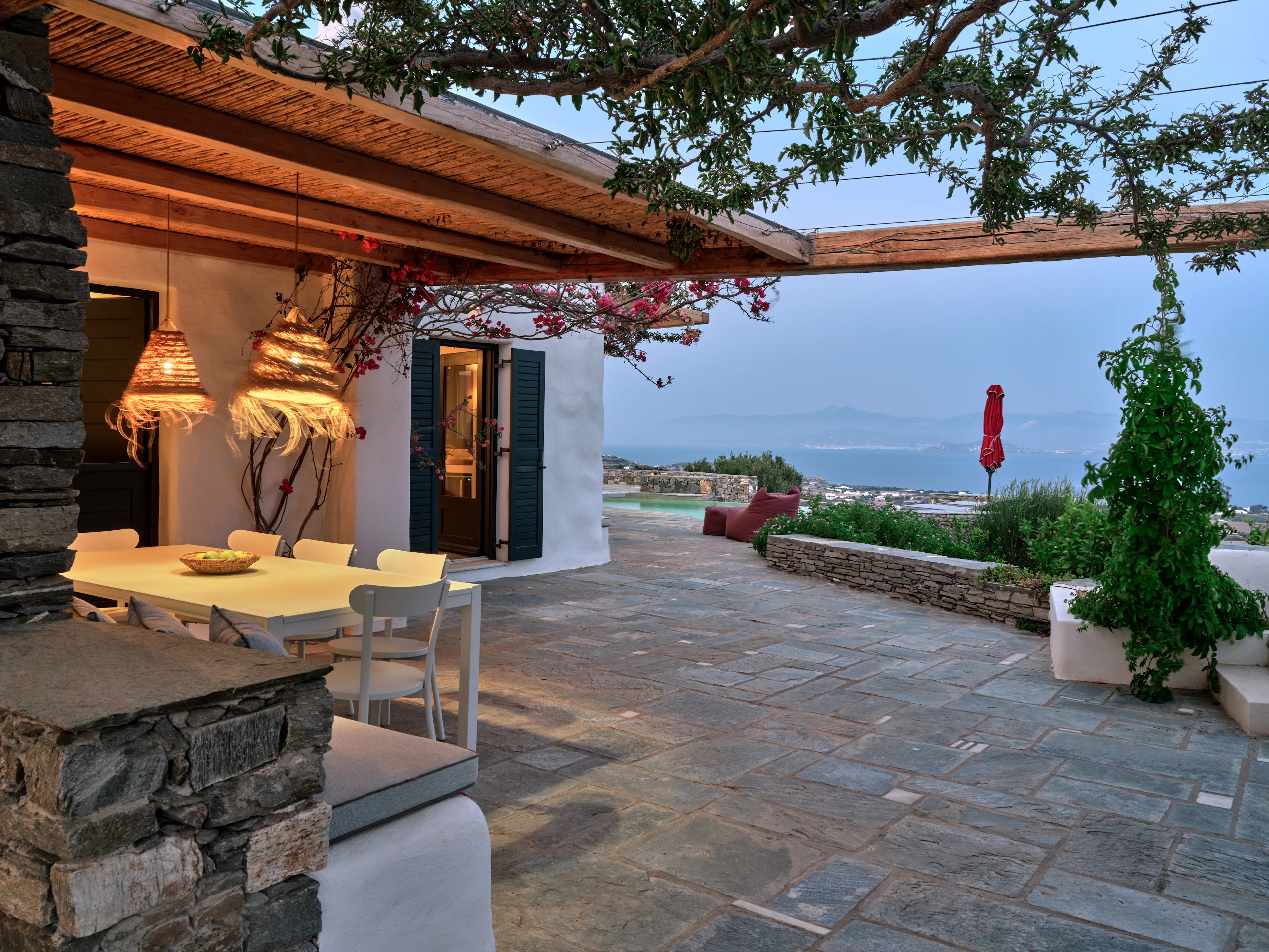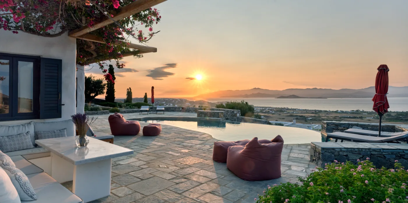 As evening falls, the terraces transform into captivating vantage points to watch the sparkling lights across Naxos island.