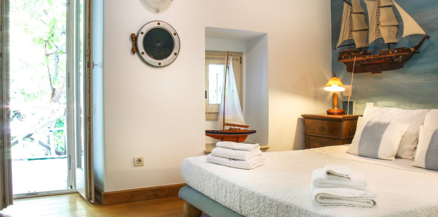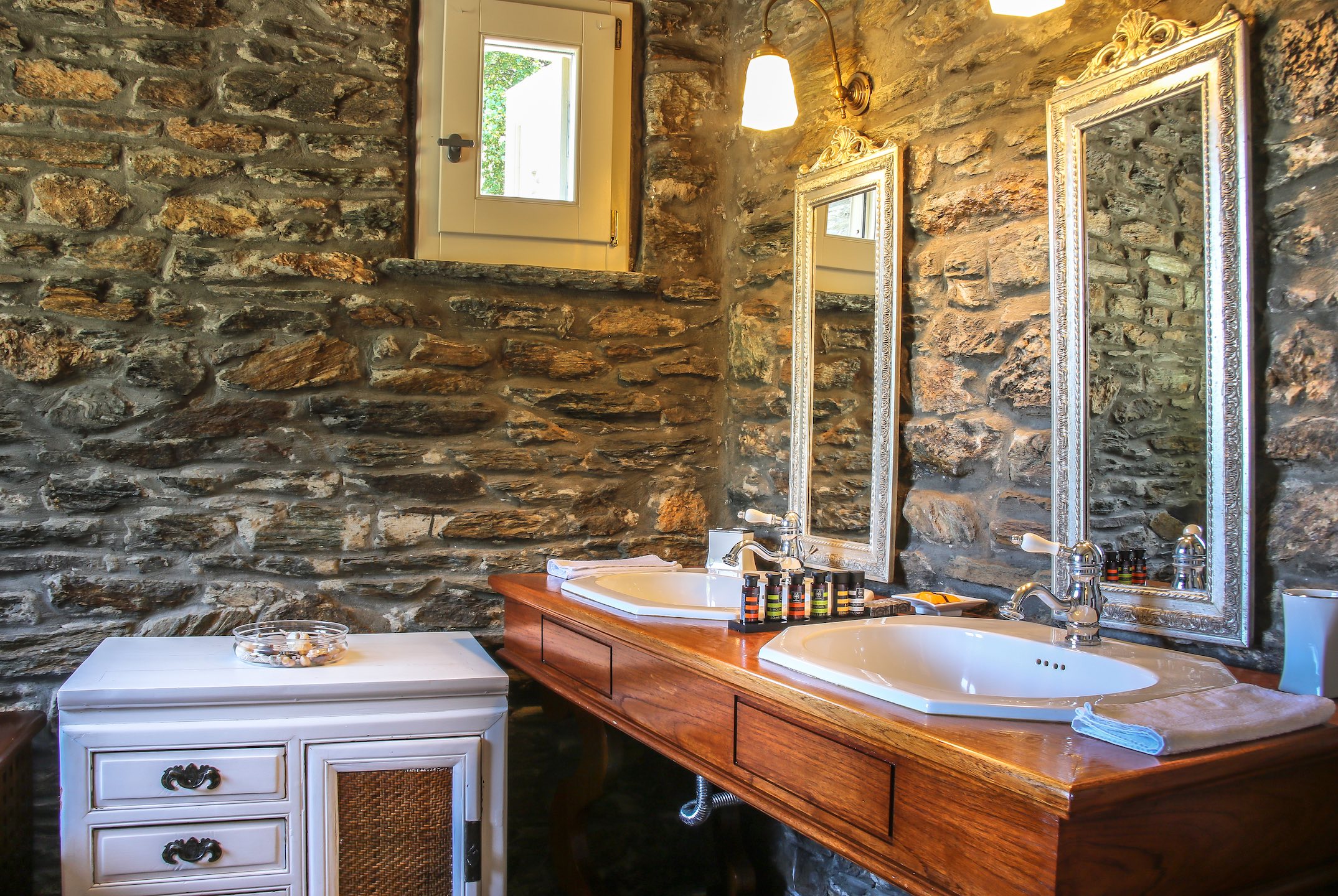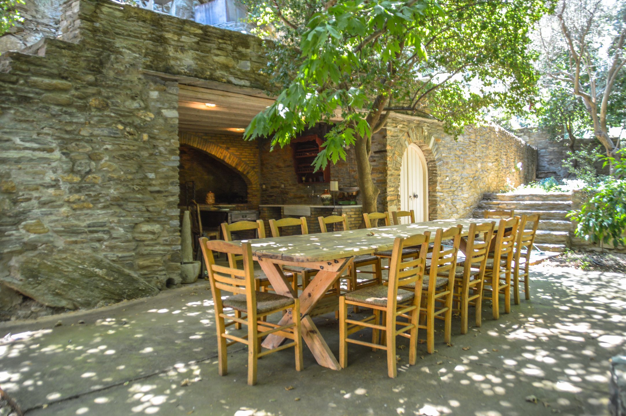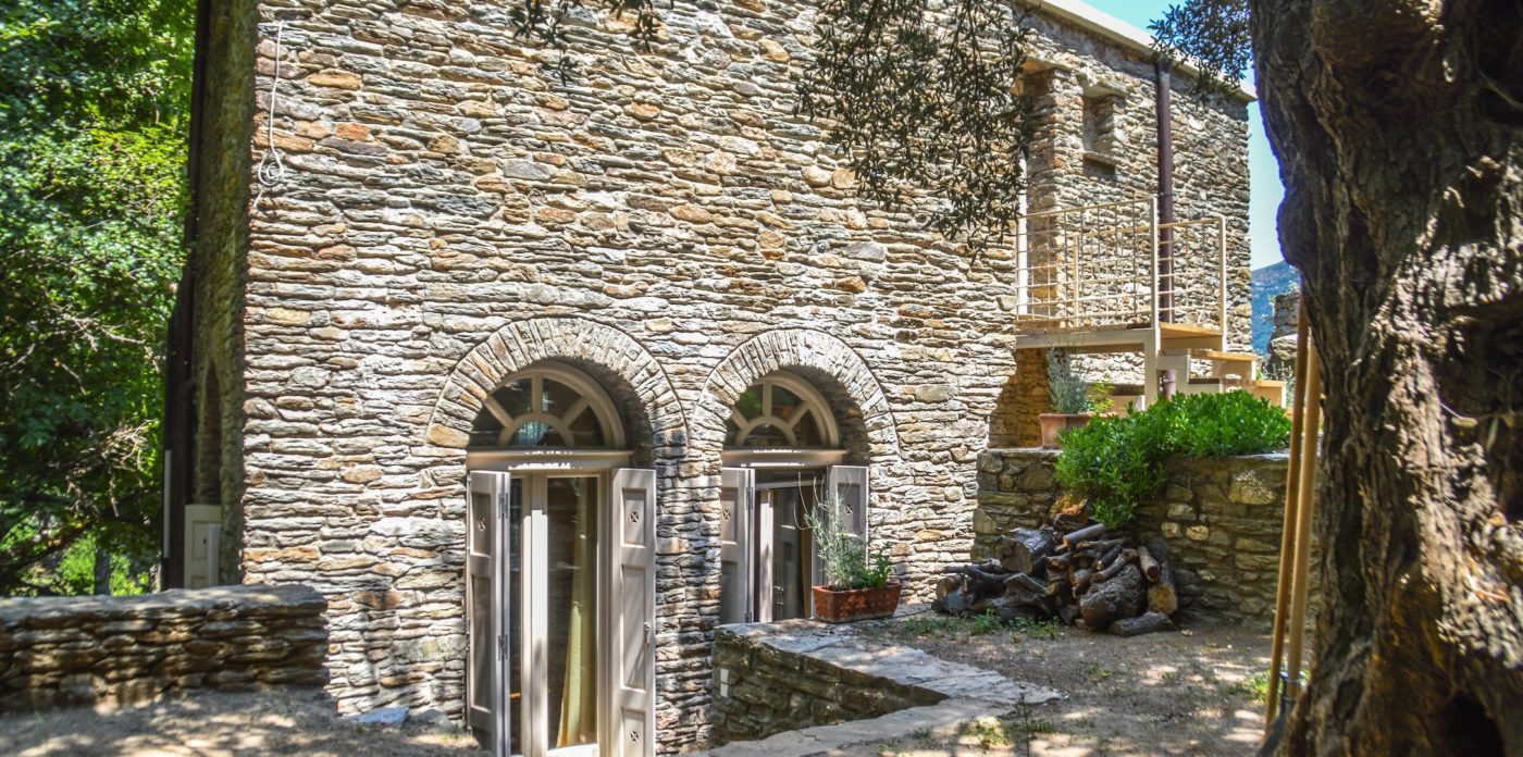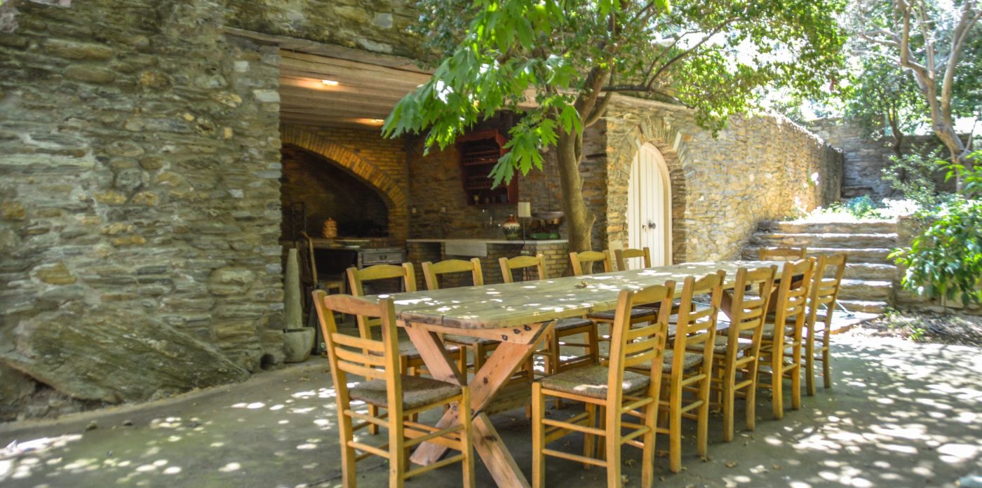 The villa is close to the famous Menites Springs, where water runs from marble fountains surrounded by ancient sycamore and walnut trees. It is rumoured that the name of the village is drawn from the nymph followers of Dionysos, or comes from the latin word “amoenitas”, meaning a pleasant place. Whichever it is, it is one of the most beautiful, green villages on Andros and located very close to the main town of Chora.
