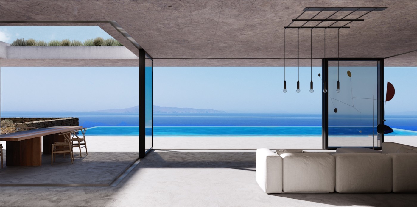 Both residences feature an inviting dining-living area with large windows that flood the interior with light and a contemporary kitchen. The architecture is modern, compact, bears clear lines and is organically linked to the natural landscape of Andros. The properties offer high-end aesthetic, privacy and breathtaking vistas of the endless blue.