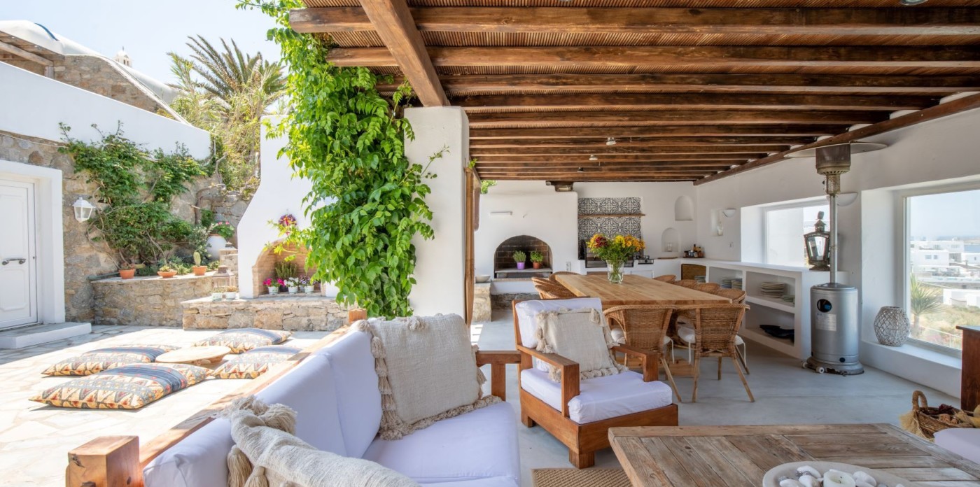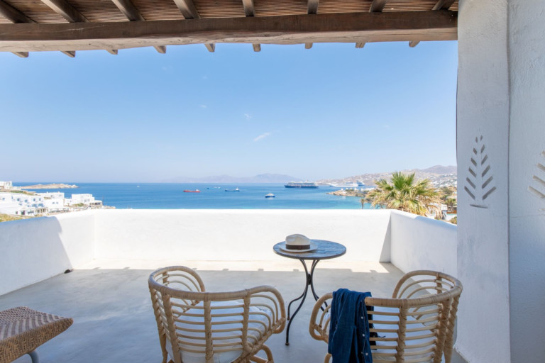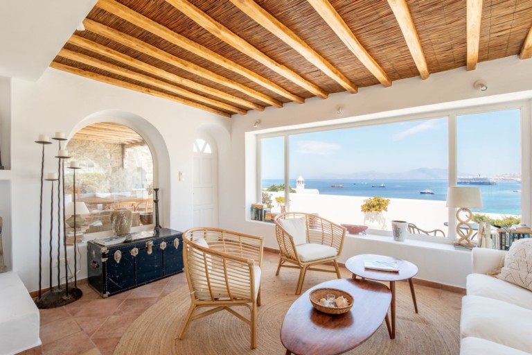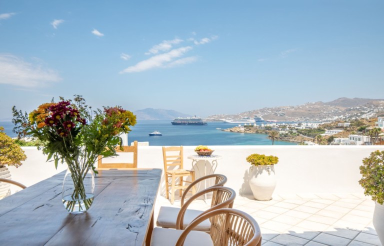 This savvy home inspires energy and a cosmopolitan flair with its perfect positioning right above of it all. Sit back and enjoy the cruise ships and the sailing yachts as they come in to dock and be part of the cosmopolitan and luxurious lifestyle Mykonos has to offer.