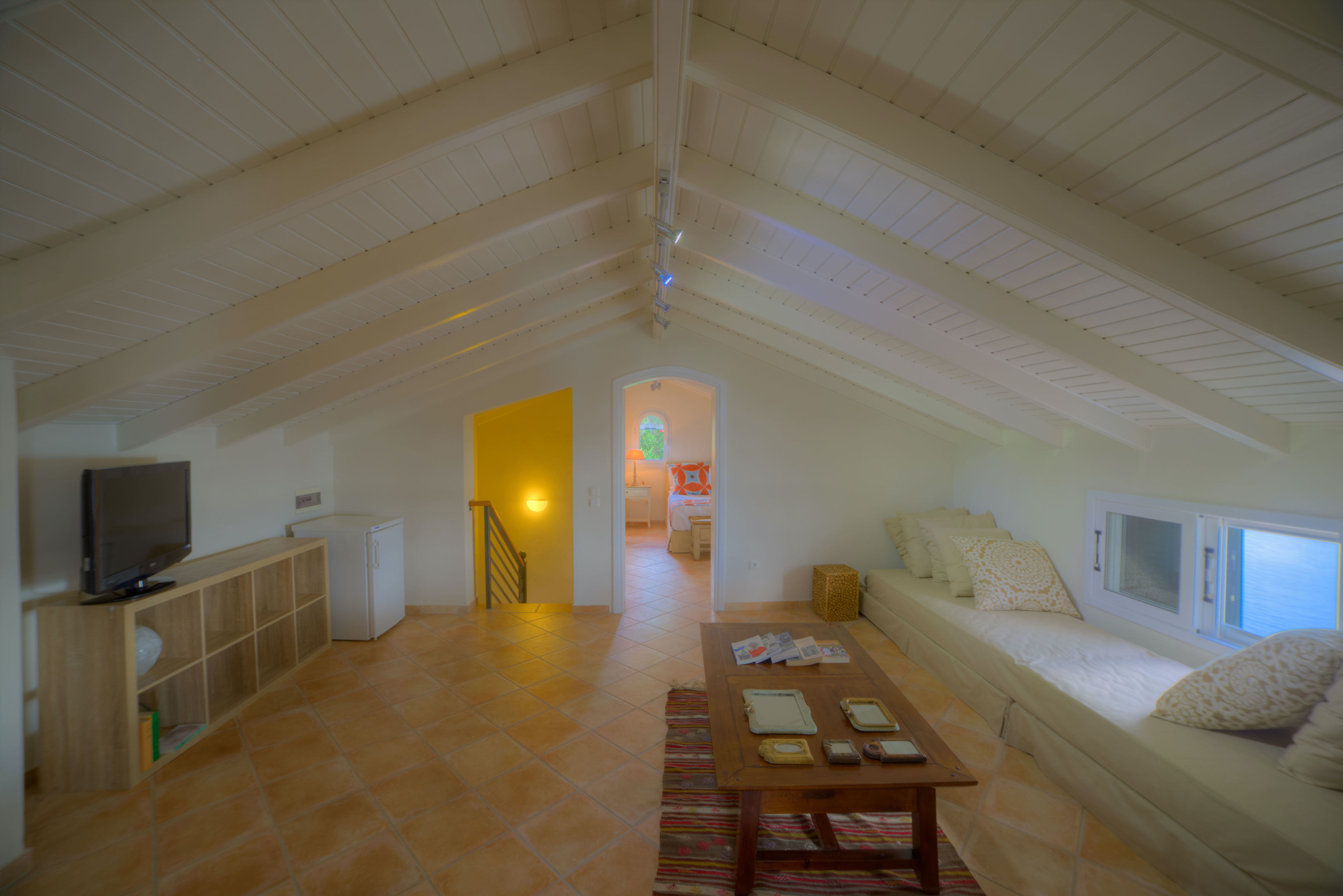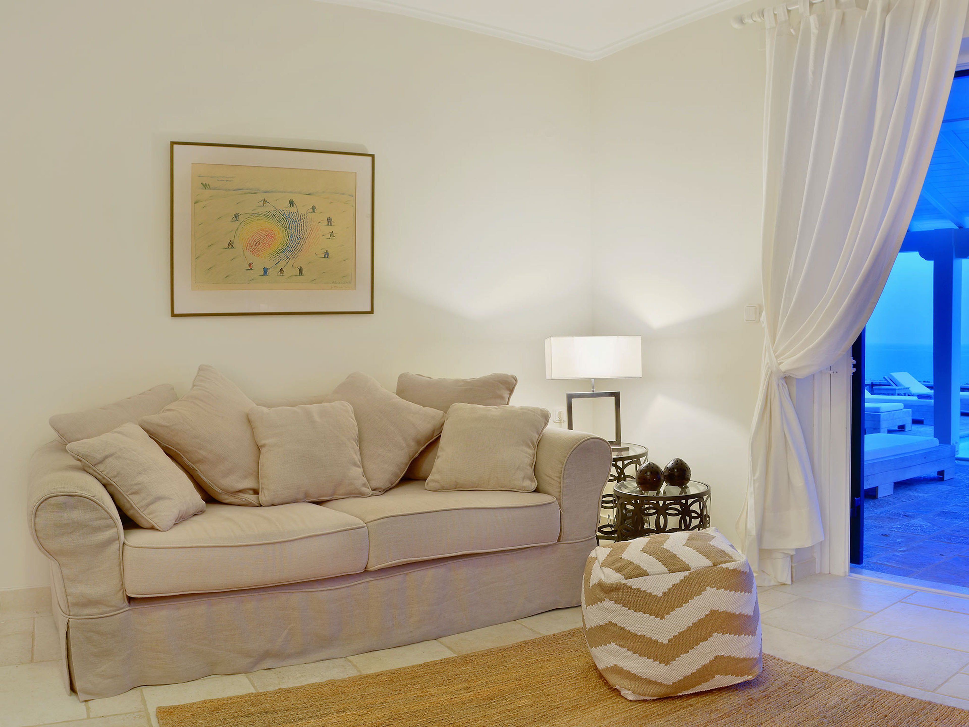 A lovingly created fitted kitchen features an island worktop and patio doors lead from both the sitting and dining room out to a portico. Here you can enjoy dinner whilst enjoying looking out over your private infinity pool across the sea all the way to Corfu Town.