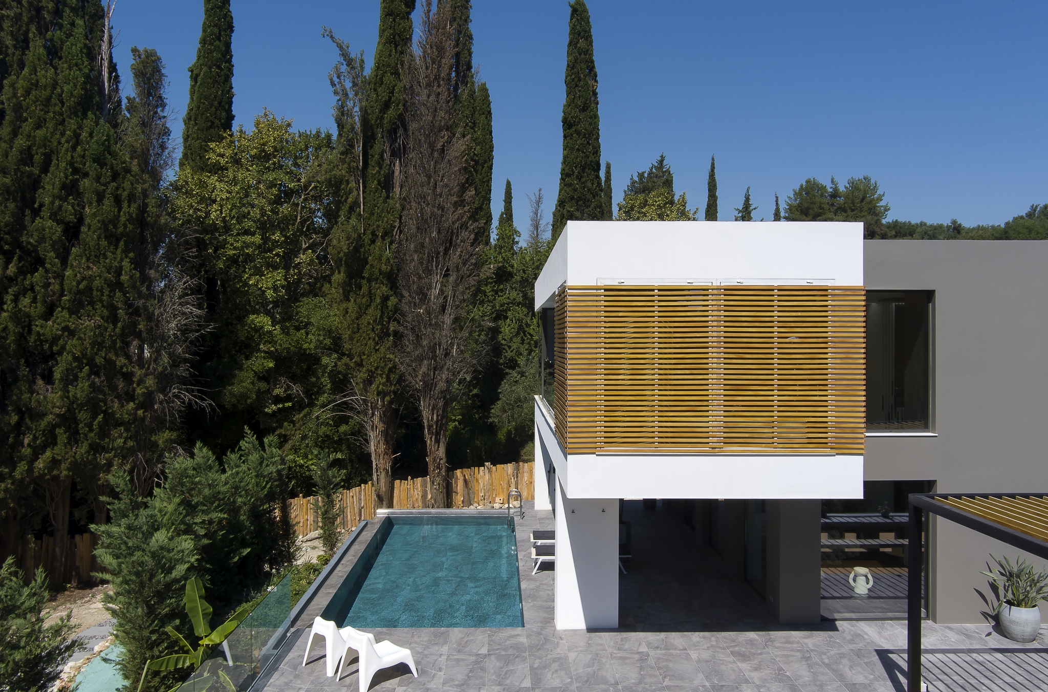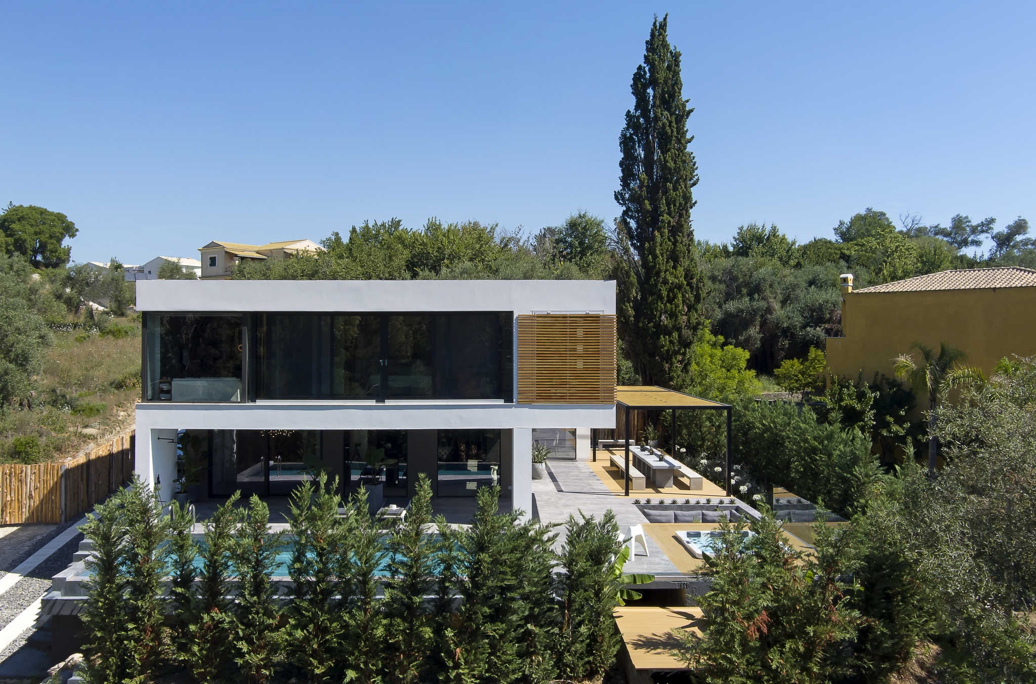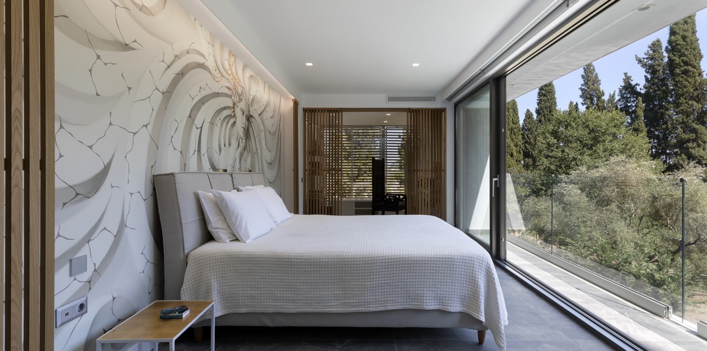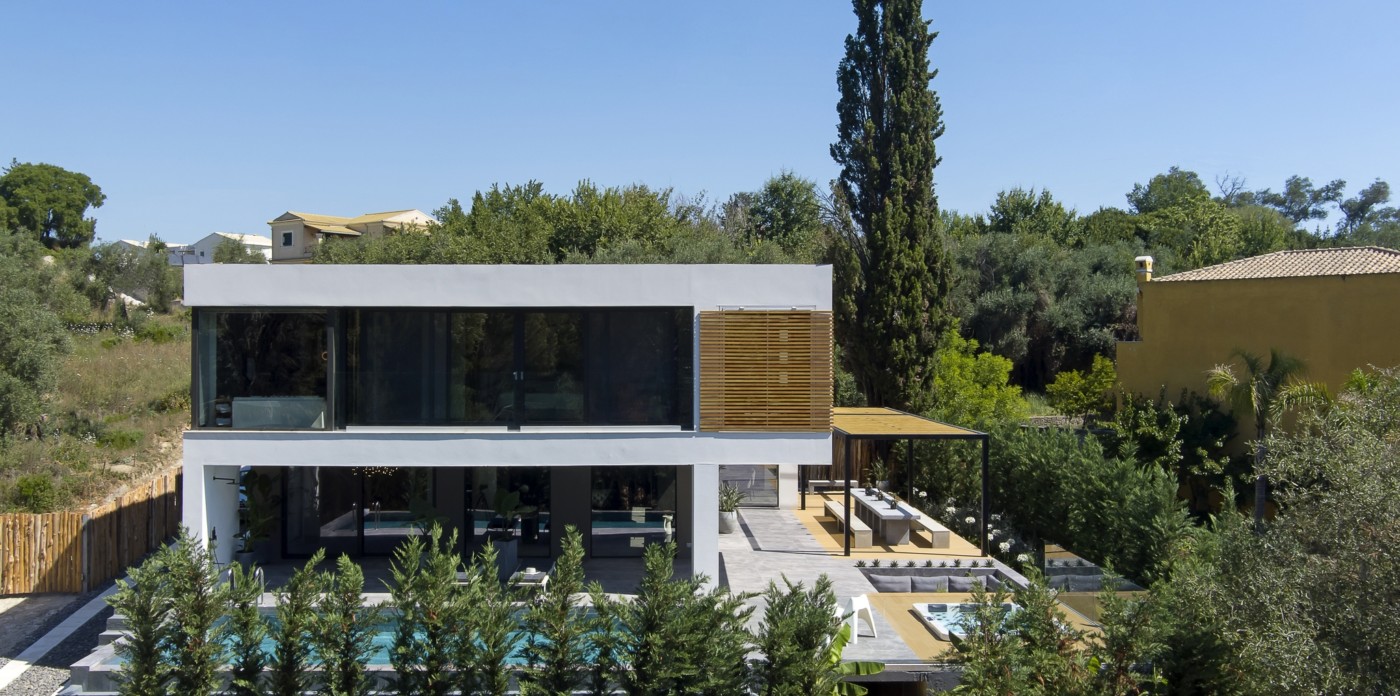 This beautiful modern villa benefits from its own private entrance and is located in a quiet residential area, with easy access to Corfu Town and all sides of the island.