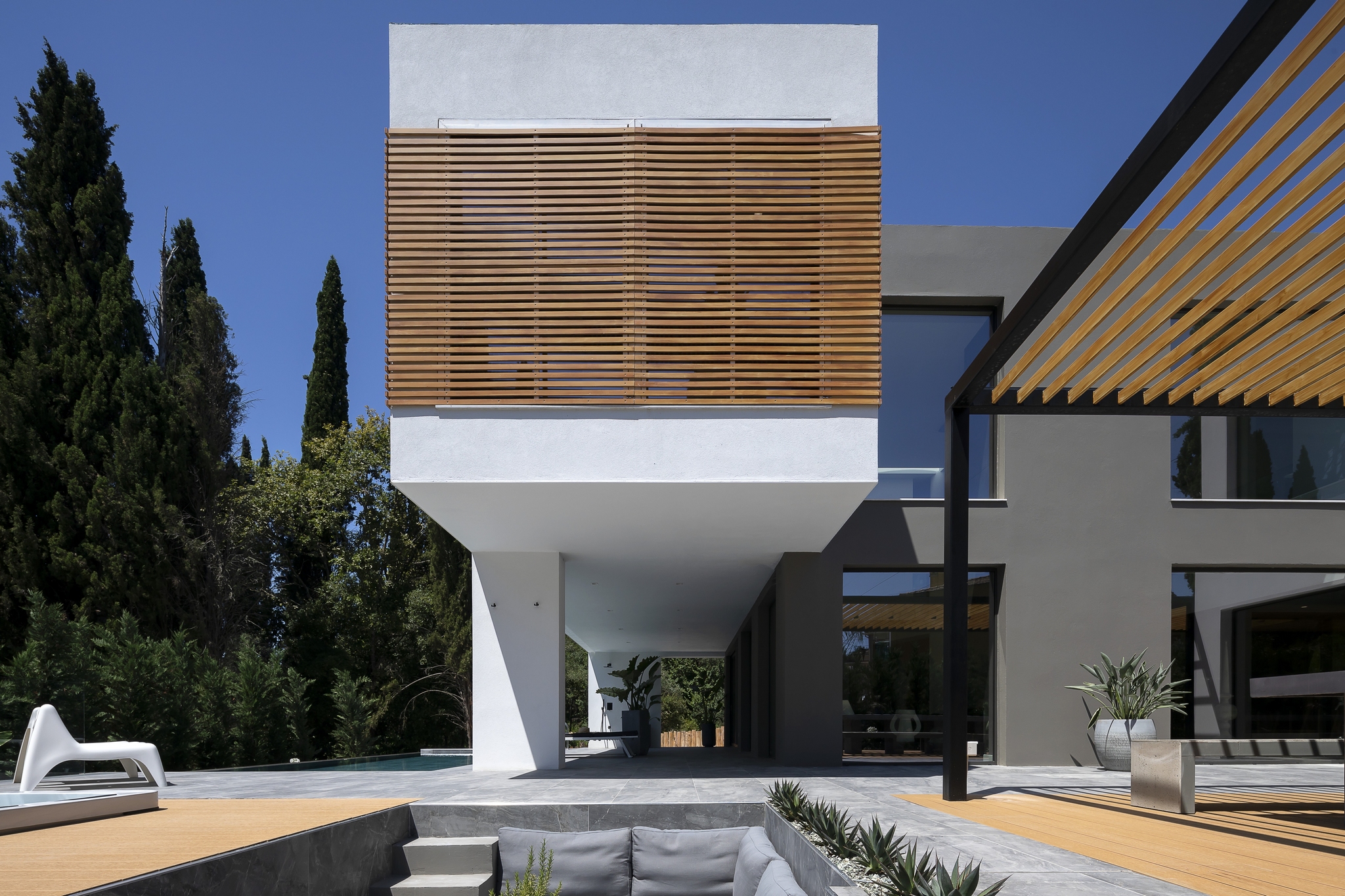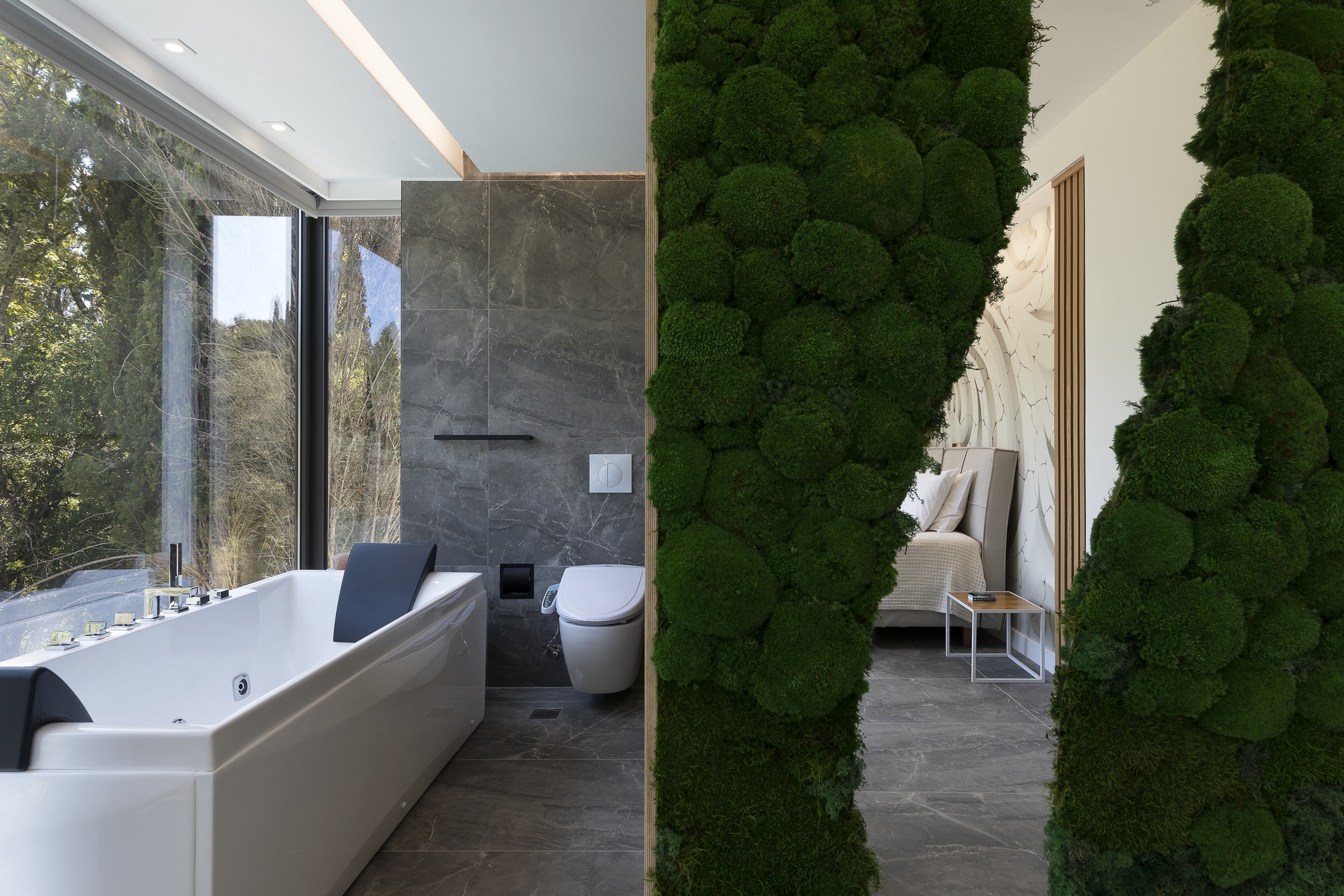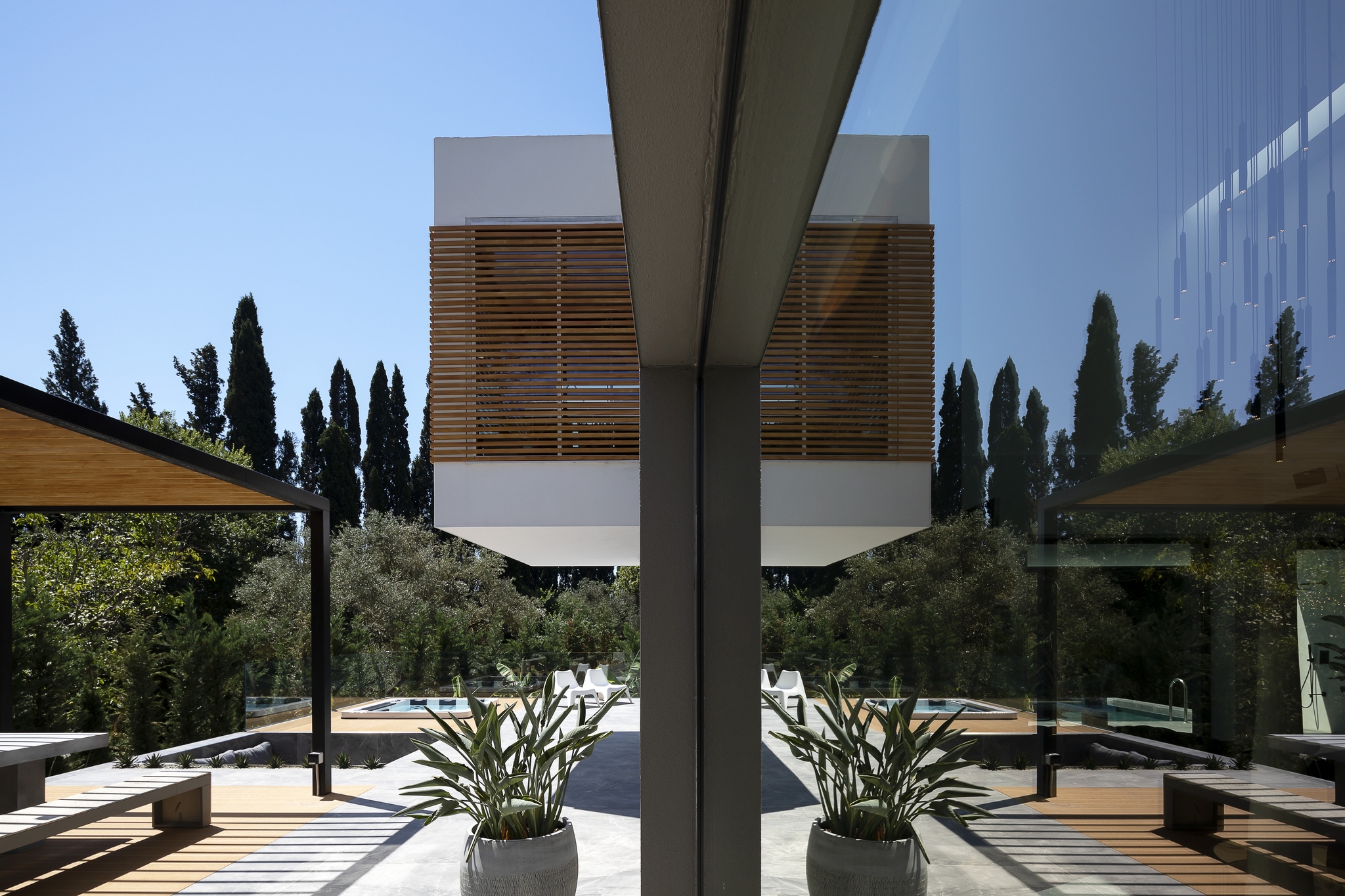 Add to the beauty of this villa ensuring an exclusive living experience are the equally exquisite outdoors areas. A large infinity pool overlooking the luscious forests, ample shaded seating areas for comfortable dining during the warmest summer days, a comfy sunken lounge area and last but not least, a state-of-the-art jacuzzi.