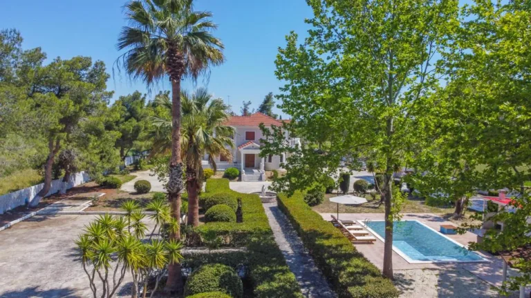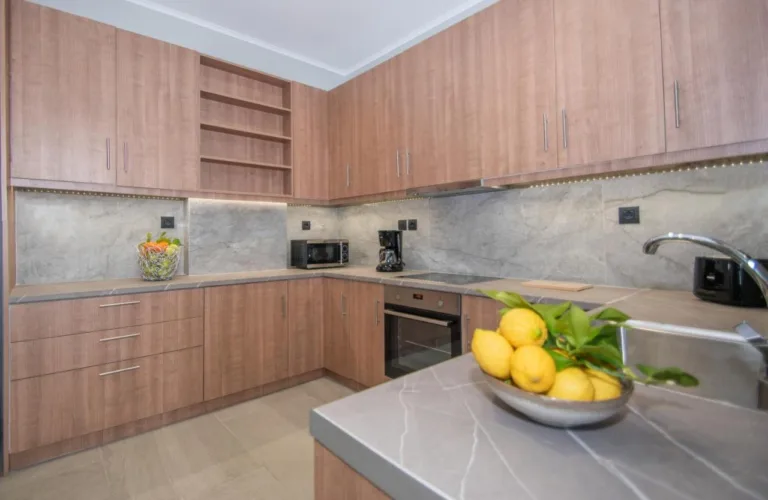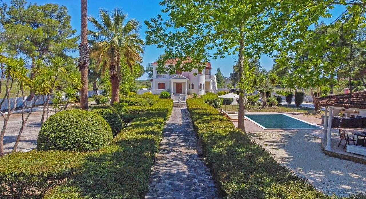The villa’s vast outdoor living areas offer an idyllic setting for relaxation and leisure. Enveloped by verdant greenery, the inviting swimming pool beckons as a refreshing oasis under the warm embrace of the Mediterranean sun. Situated nearby, an outdoor kitchen and BBQ area await, ready to facilitate delightful al fresco dining experiences. Meanwhile, the expansive outdoor dining area sets the stage for memorable gatherings amidst the serene surroundings.