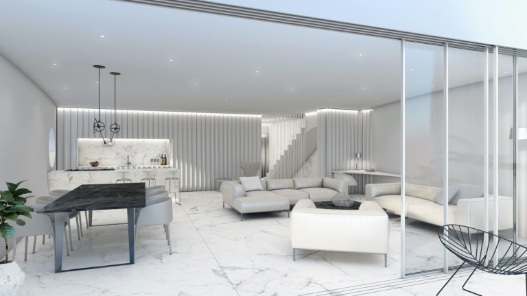 High ceilings combined with full length windows make for grand, light filled spaces. All the materials used have been carefully selected and considered to create an ideal home.