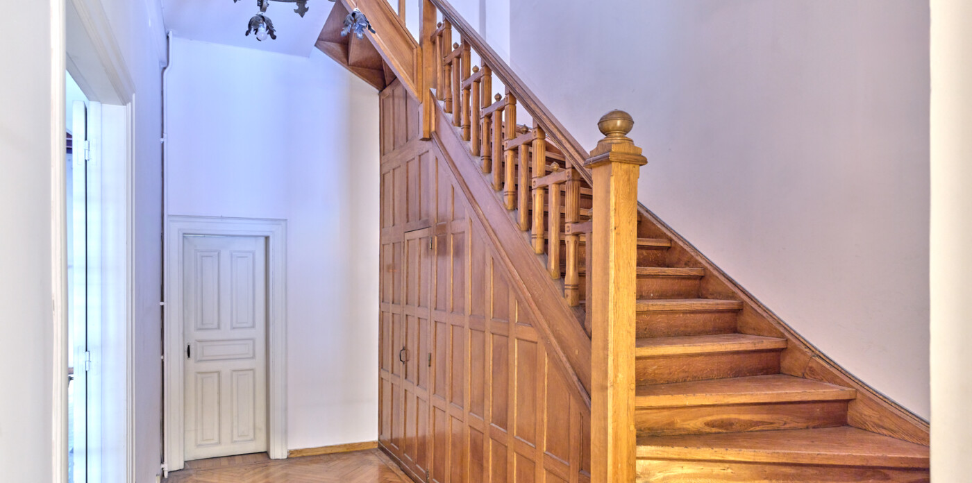 The first floor features a spacious living and dining area, perfect for entertaining. The second floor includes one ensuite bedroom, an additional WC, a kitchen, and another dining area. The third floor comprises three bedrooms, one bathroom, and an additional WC. At the top, the attic provides the opportunity to create a beautiful rooftop relaxing area, offering atmospheric moments in the vibrant cityscape.