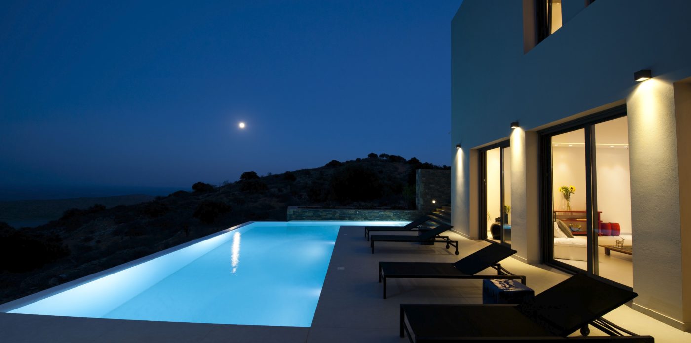 Minoan View Sapphire is a stylishly sophisticated home which enjoys enviable views of sapphire blue seas by day and by night the twinkling lights of Elounda and nearby islands.