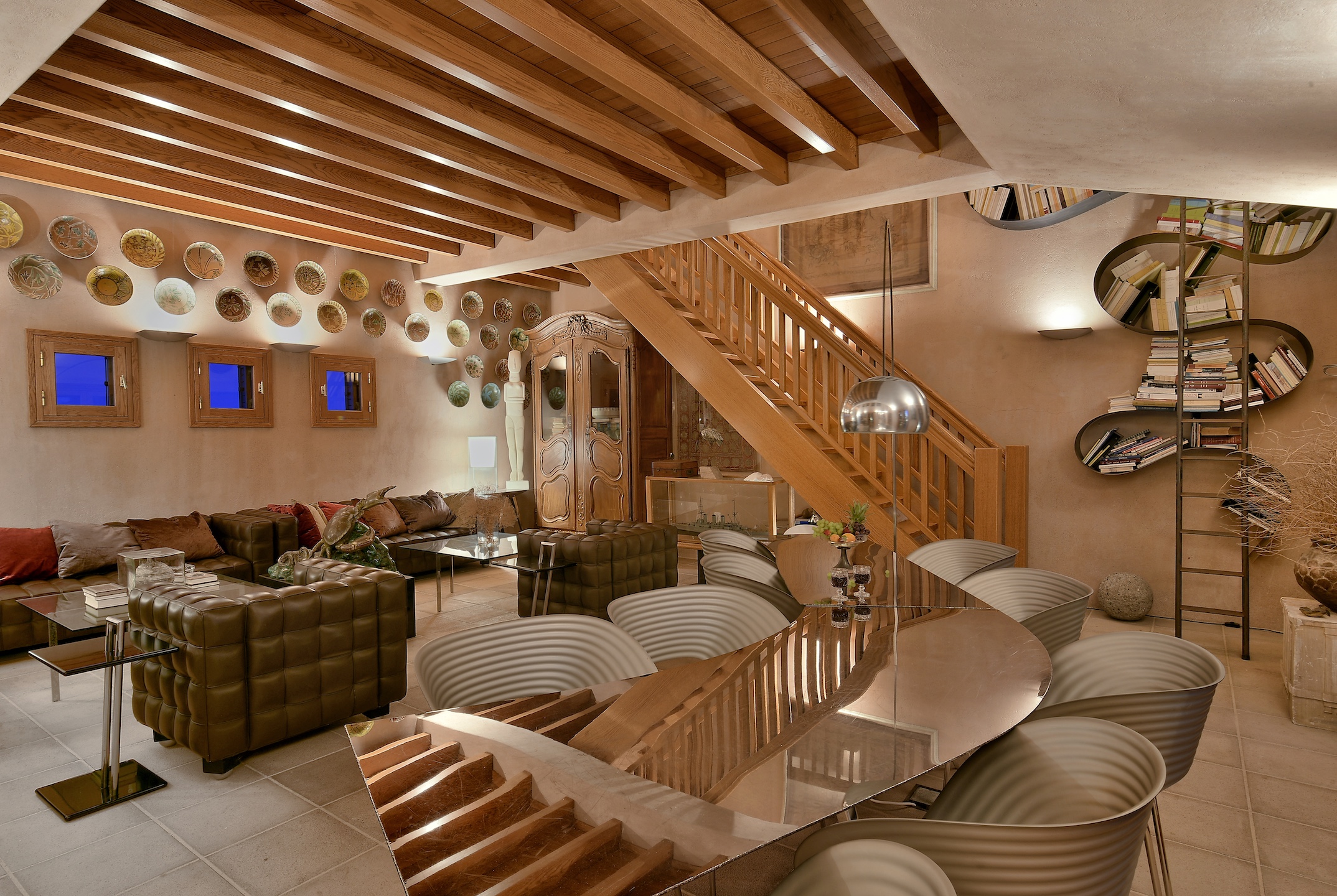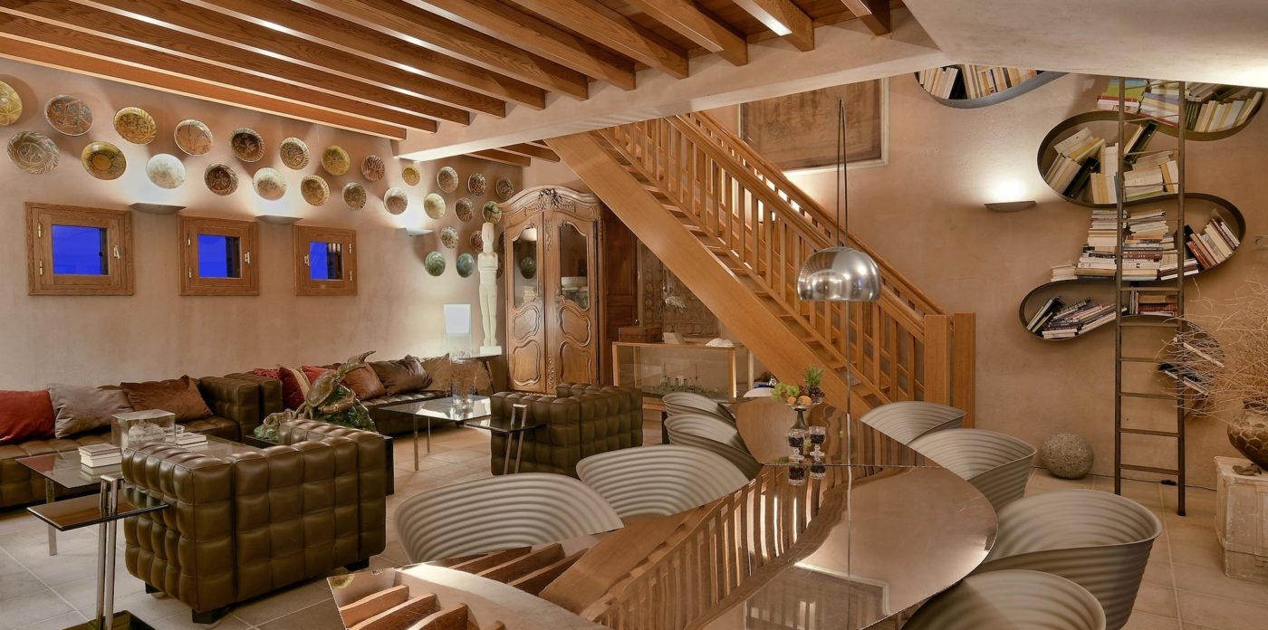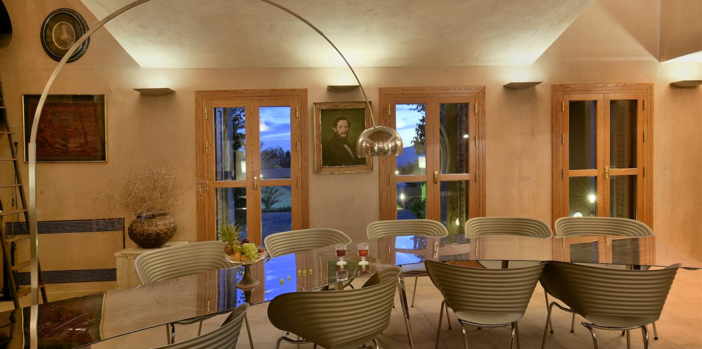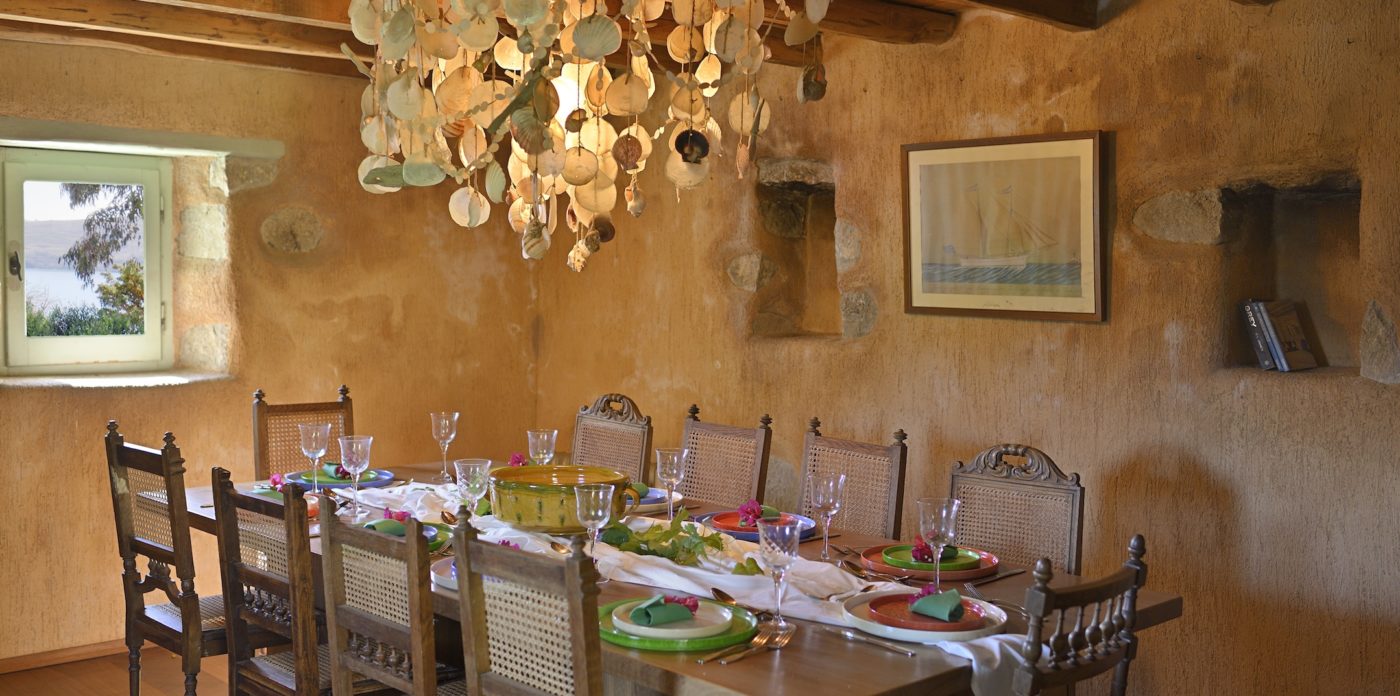 The villa’s interiors are a lovely combination of both contemporary and more traditional touches. Wooden ceiling beams, and wooden window frames bring warm tones to the cosy, eclectic living spaces, which are all tastefully decorated. A separate dining room has a distinct rustic ambience and is a lovely room to invite friends to join you for dinner on a cooler evening, when eating outside is off the menu.