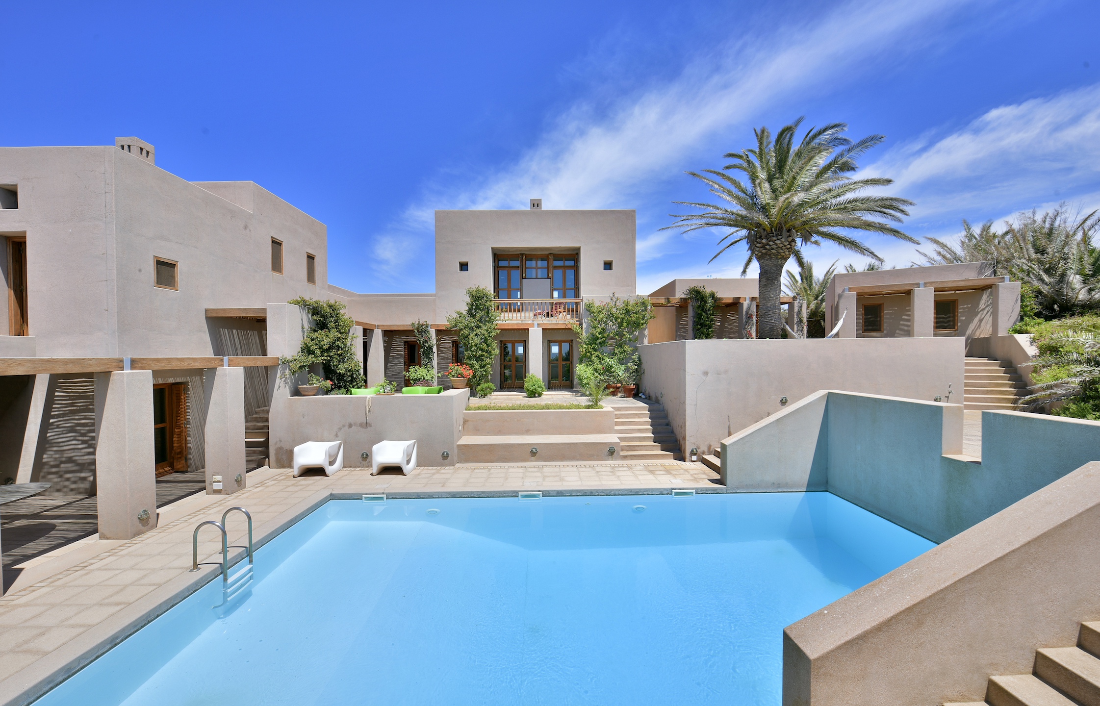 The villa has four comfortable bedrooms and five bathrooms as well as a guest room, playroom and a personnel room.
