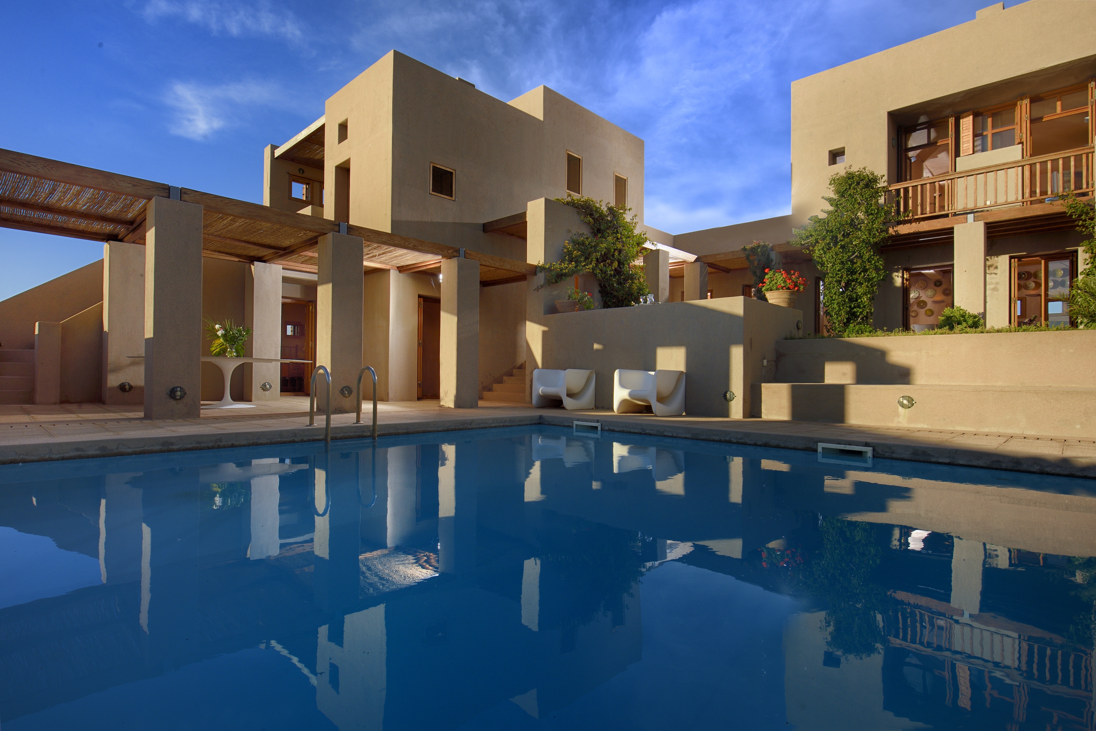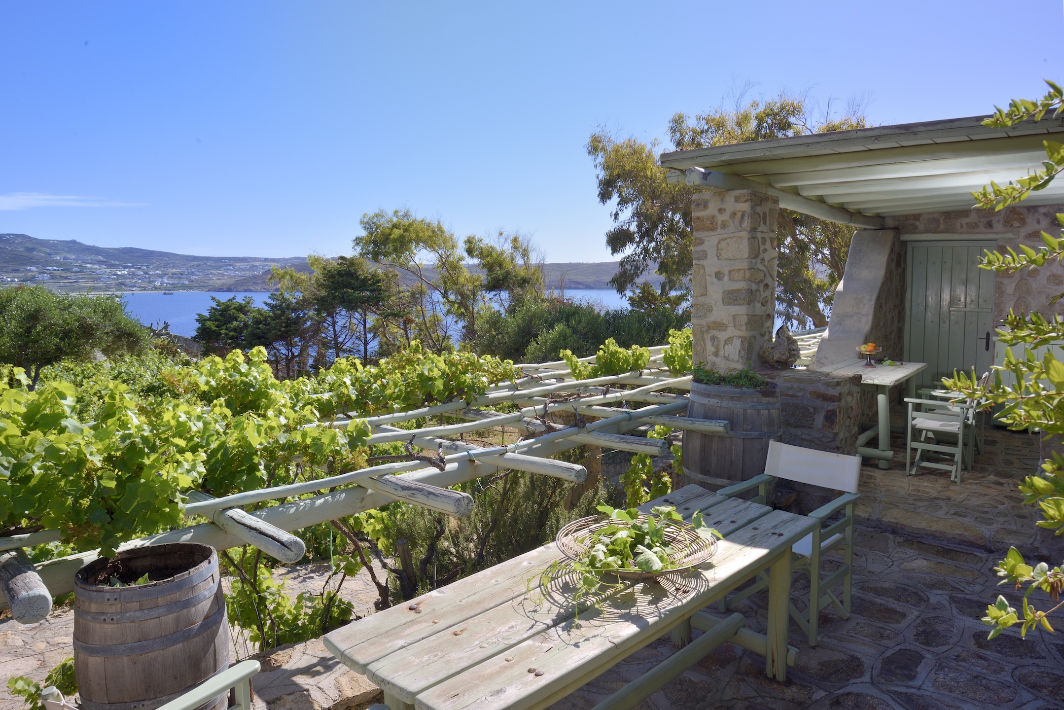 The climate in Mykonos is generally mild and moderate throughout the winter months and spending time here during the cooler months is a joy. The island is known for “meltemia”, northerly winds that can turn from light cooling breezes to something stronger. Here you won’t get blown away by the weather as the Estate has been designed to be protected from the winds.