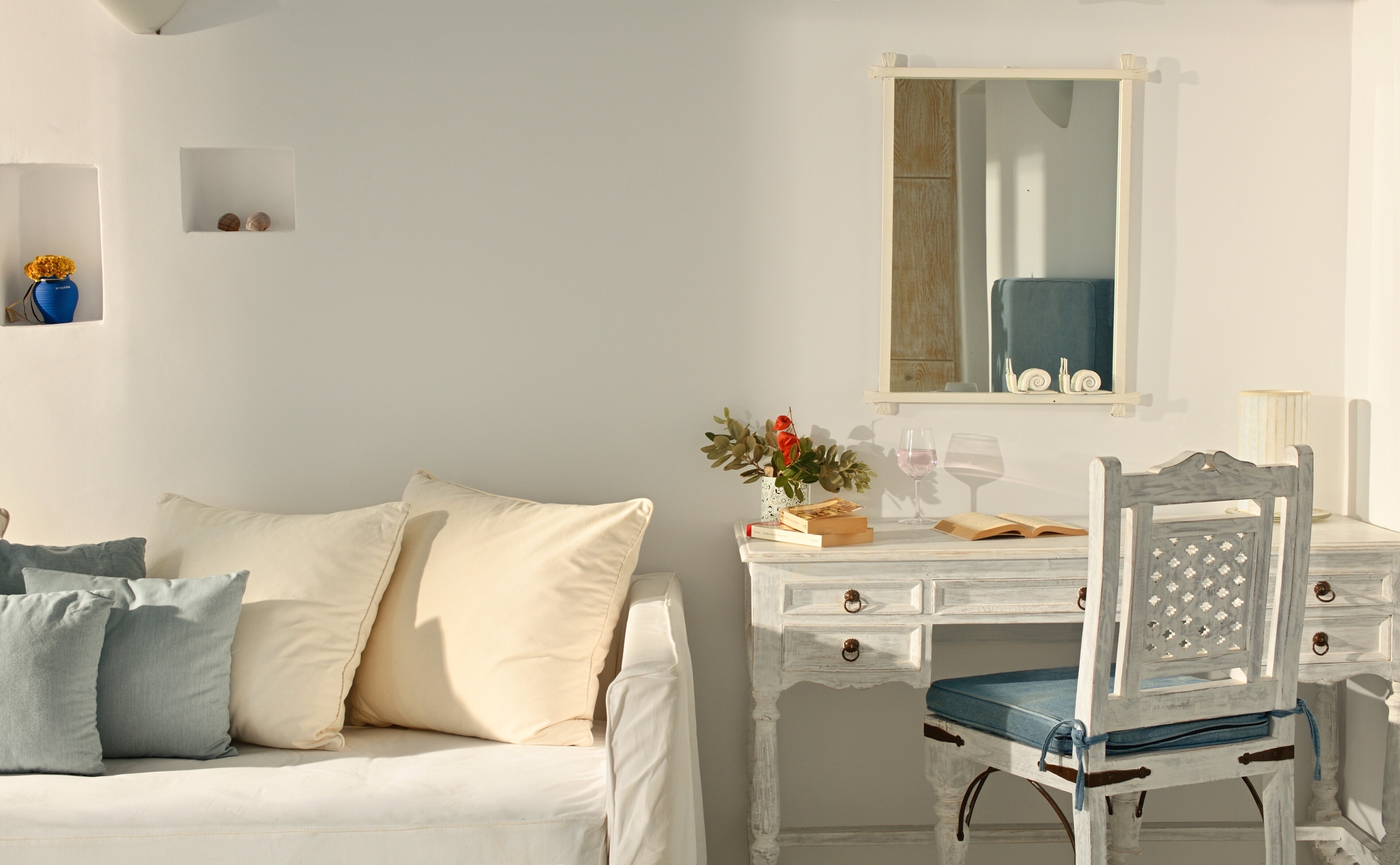 In this villa, the discreet sense of luxury is so totally fitting that it will amaze even the most demanding guest. One feels truly blessed to live on the most vibrant island of Greece and at the same time enjoy serenity and the magnificent views from such a tranquil environment.