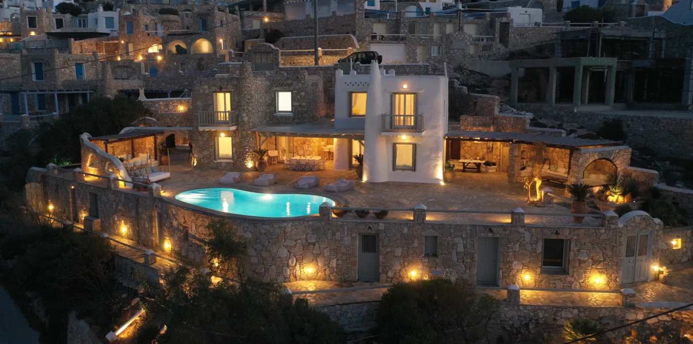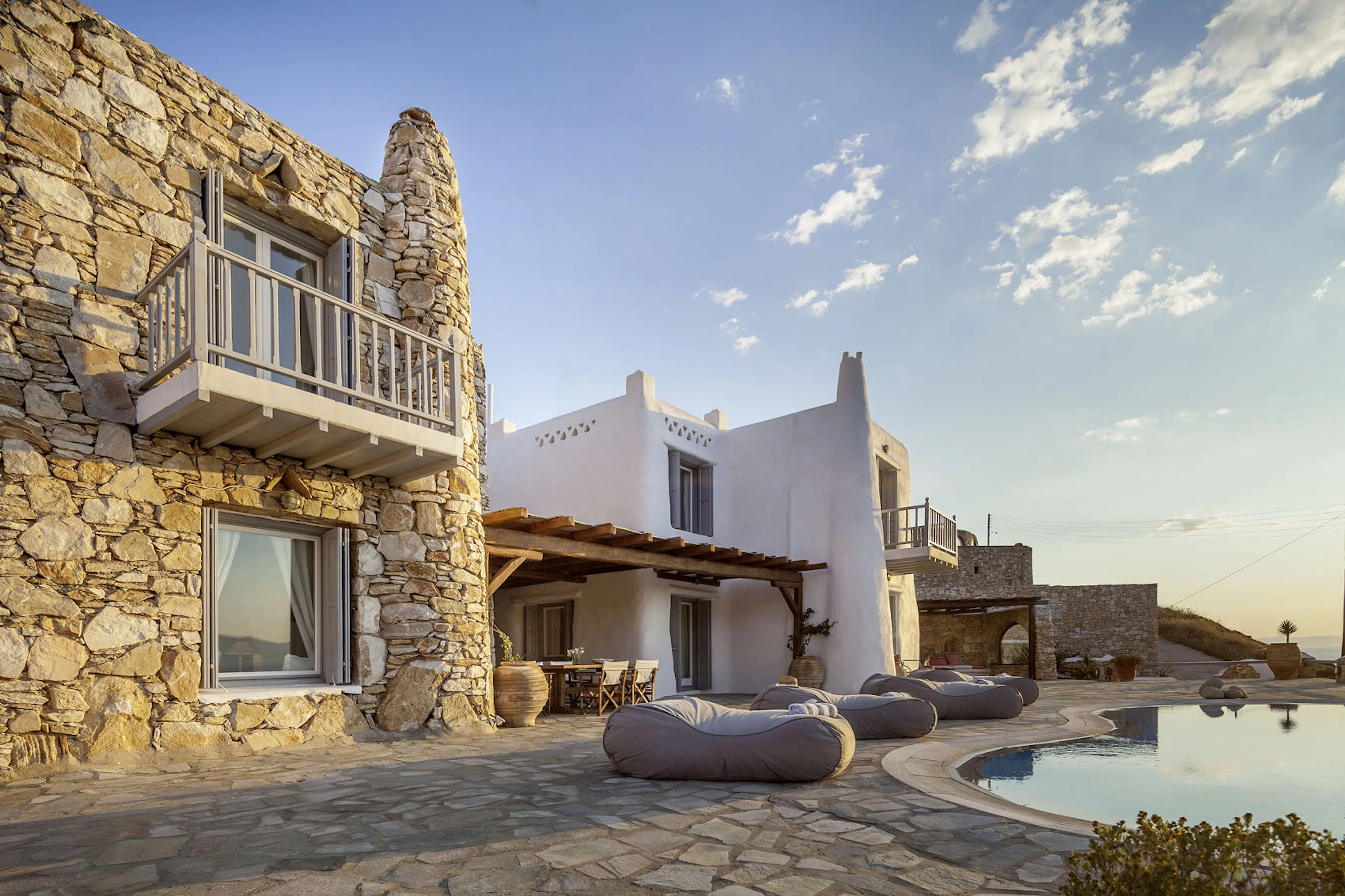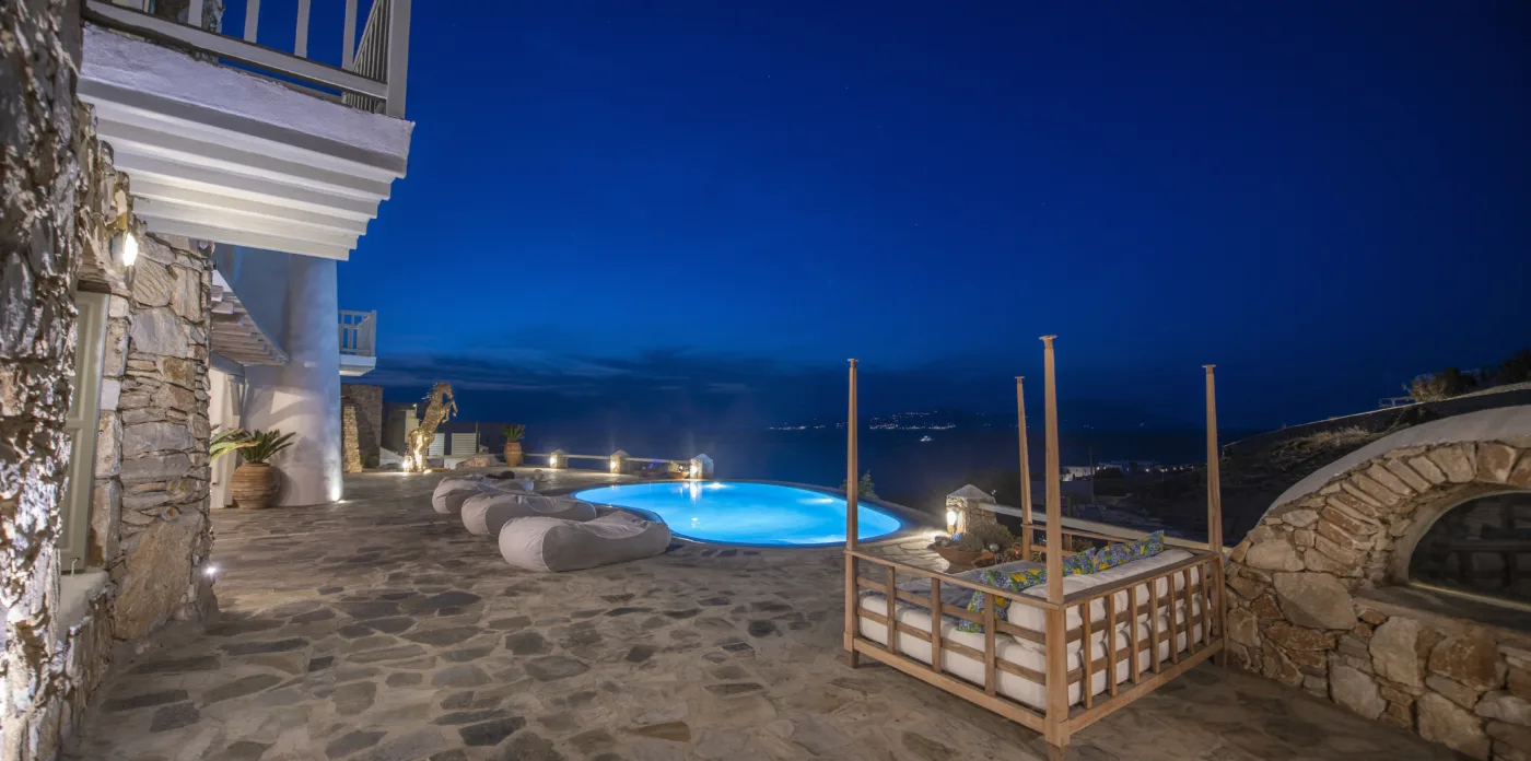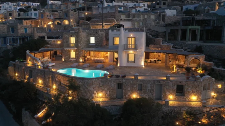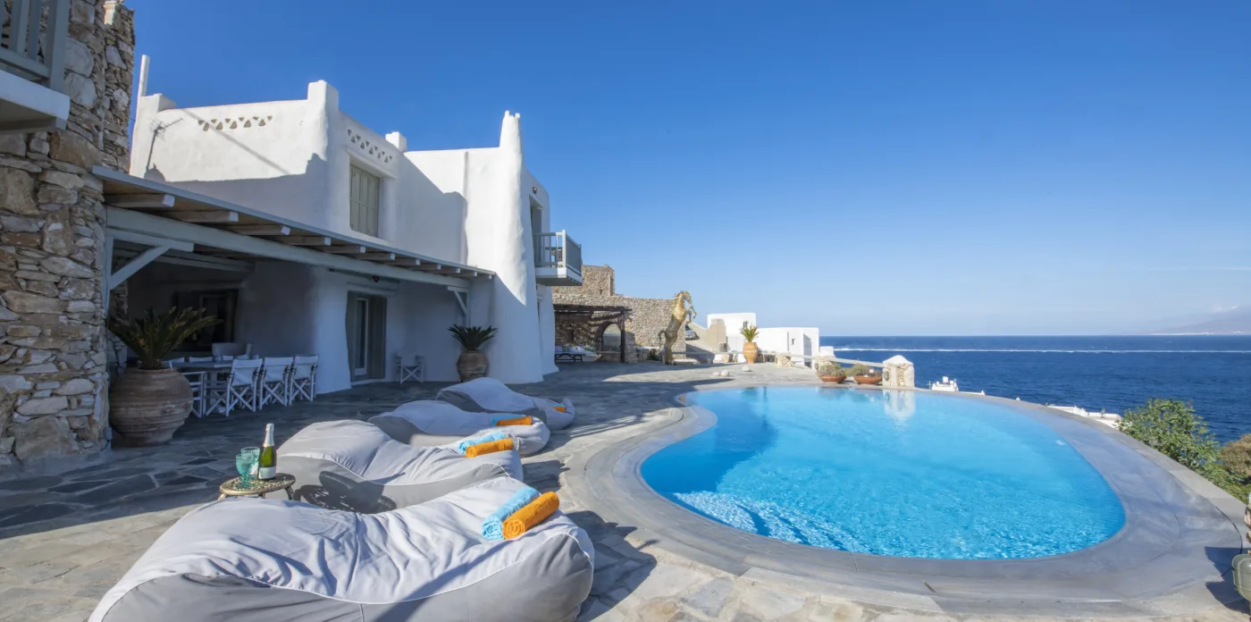 With sea and sunset views from every room, Mykonian Muse is comprised of two separate villas with unique architecture and a distinctive Mediterranean flair.