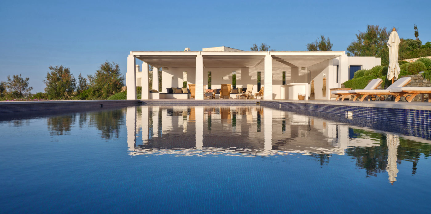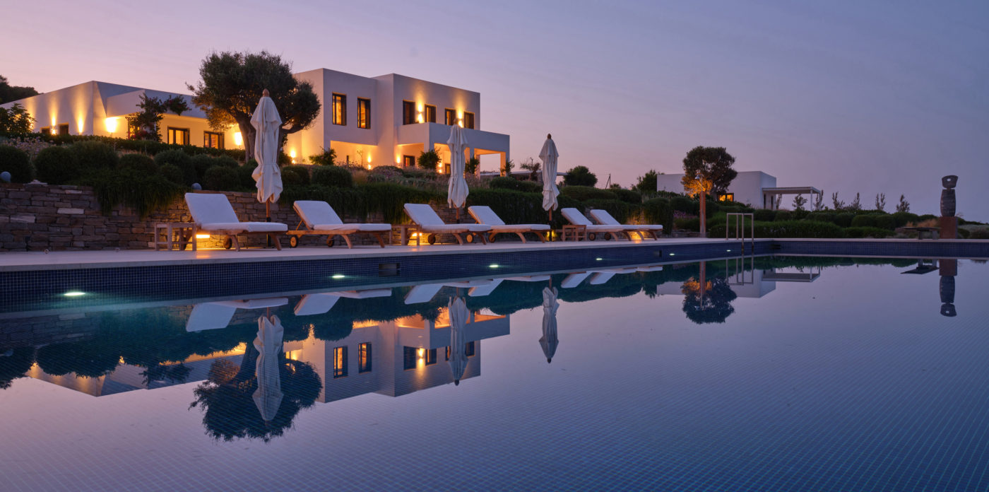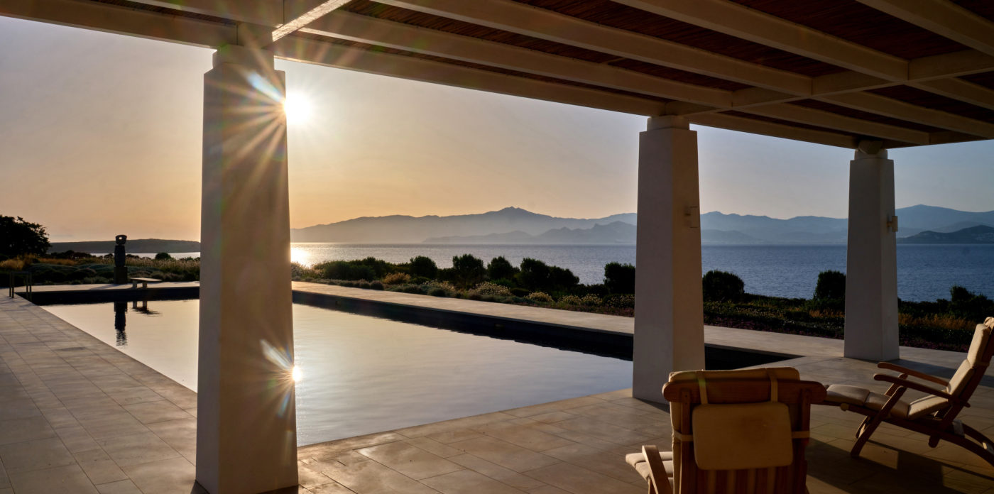 Nestled in an idyllic location on the stunning island of Paros, Oceana is an exceptional residence that epitomizes tranquility, privacy, and breathtaking beauty. Perched in a peaceful setting, this meticulously designed mansion enjoys panoramic views of the endless Aegean blue and the twinkling lights of Naxos at night, creating an enchanting backdrop.