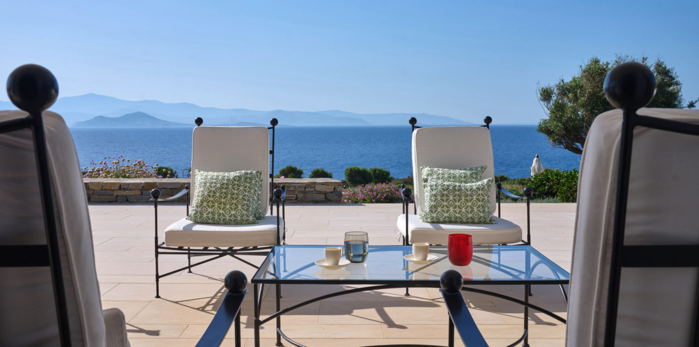 Oceana’s exquisite outdoor areas are designed for both relaxation and entertainment. Enjoy alfresco dining under shaded pergolas, unwind by the stunning private pool overlooking the Aegean, or sip cocktails at the chic poolside bar with an outdoor shower. The landscaped gardens are not only visually striking but also easy to maintain, adding to the villa’s effortless charm.