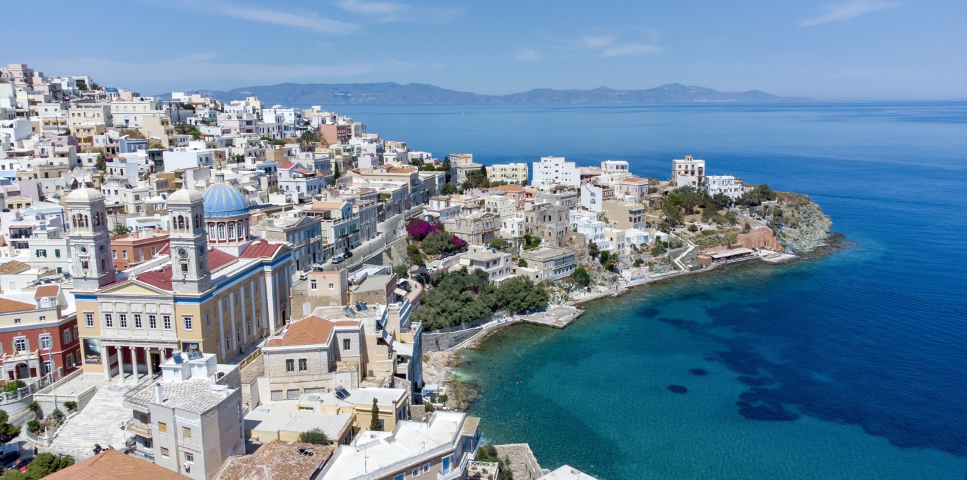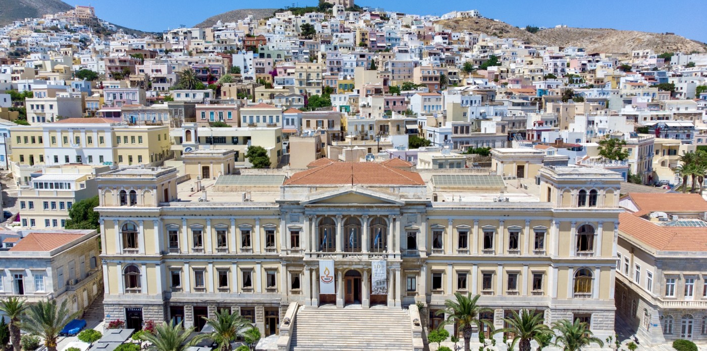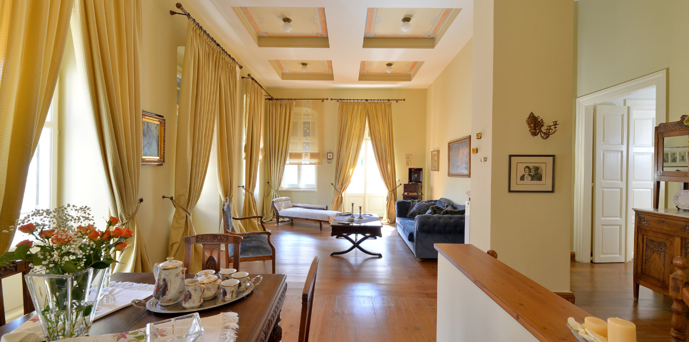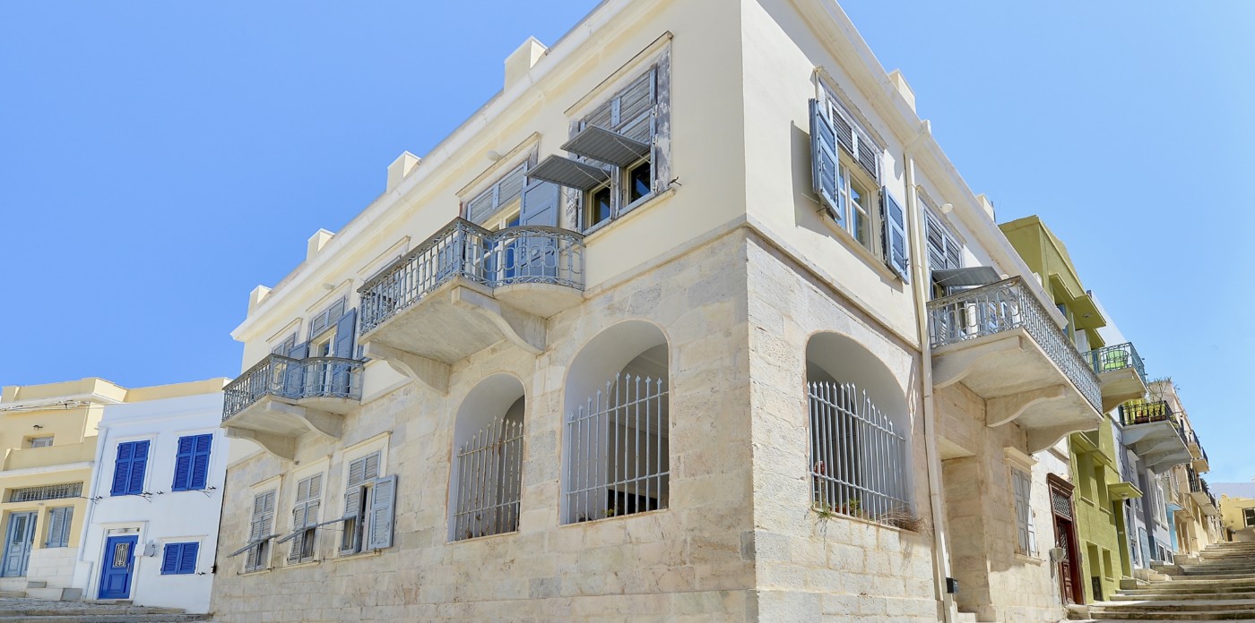 Orchestra, a beautifully restored 19th century neoclassical home showcasing beautiful architectural features unique to the island of Syros. Located in the historic quarter of Ermoupolis, the island’s capital, Orchestra enjoys panoramic sea views from its rooftop terrace.