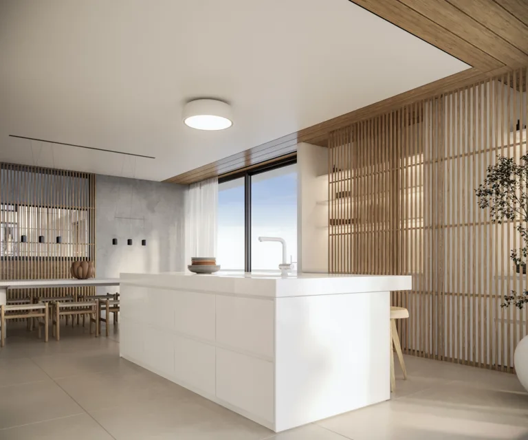 The artistry of the design lies in the details that exemplify high-end aesthetics with functionality. The natural tones of the decor and the abundance of sunlight streaming through sleek frameless windows brings about an inviting atmosphere that immediately captures the attention.