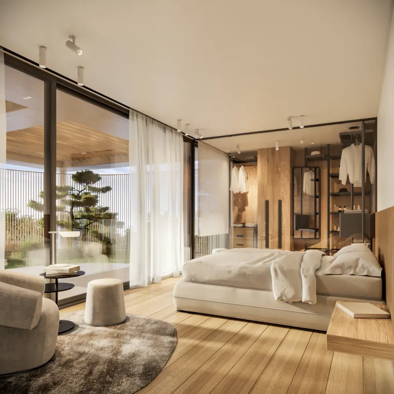 The spacious living environment at Pavilion offers four master bedrooms with en-suite bathrooms plus two guest bathrooms. There is a shared gym, a spa with a sauna, a jacuzzi and ice bath, making it a complete wellness sanctuary. The underground parking with electric charging stations, along with top-notch security and home automation, are extra highlights that ensure convenience and safety.