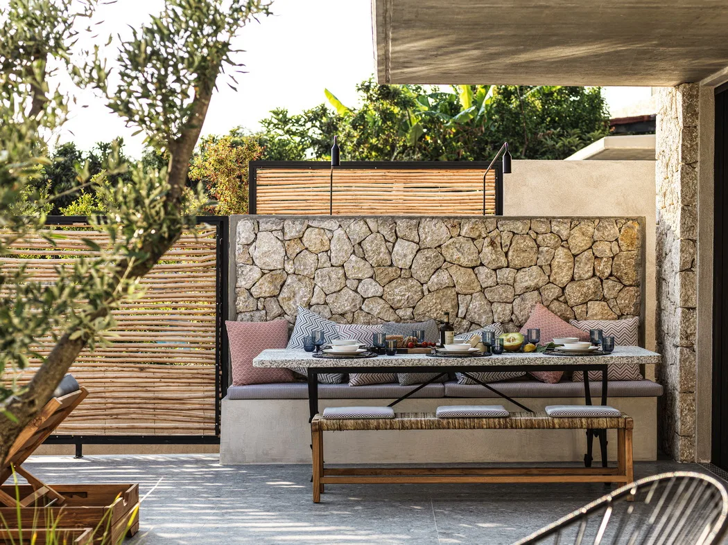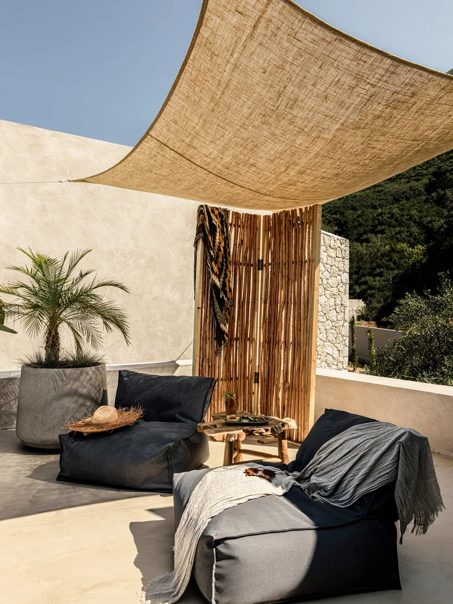 Villa 2 offers a similar layout, with a lush exterior Hydro Spa and a private terrace overlooking the sea. The primary bedroom on the upper level provides a peaceful escape with its own private terrace.