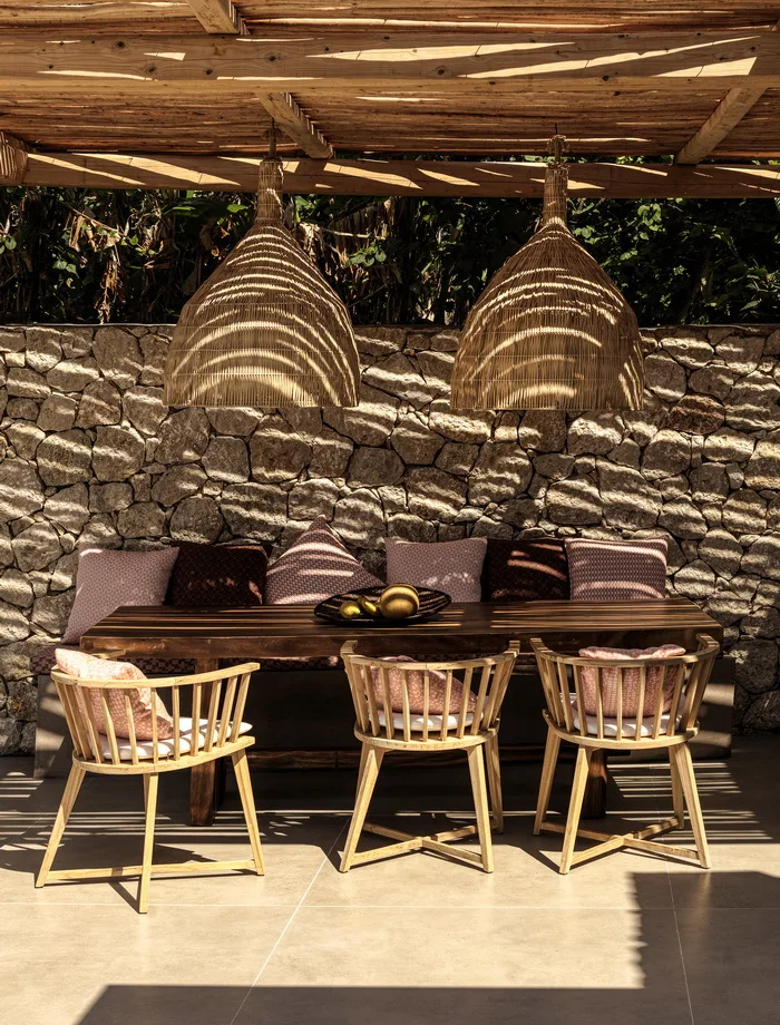 Villa 3, uniquely positioned in front of the other two villas, features two bedrooms, an open-plan living room, and a private infinity pool.