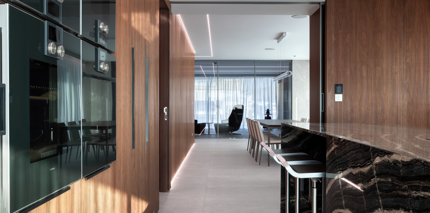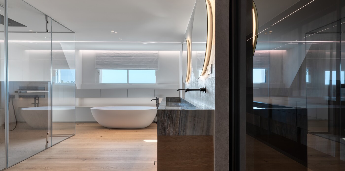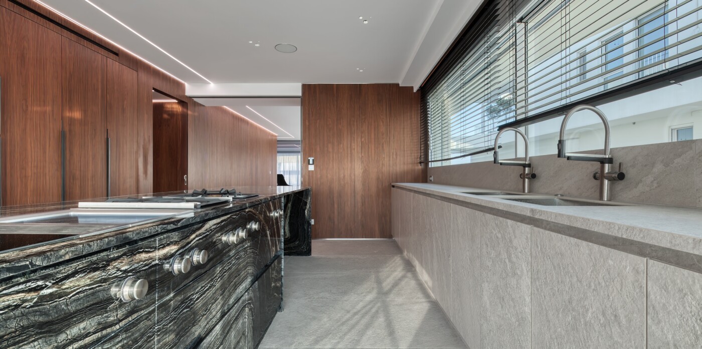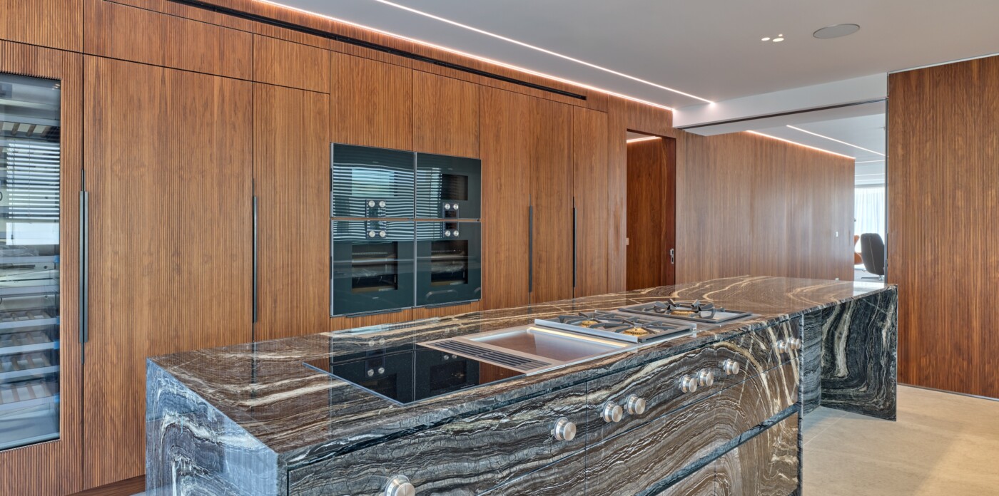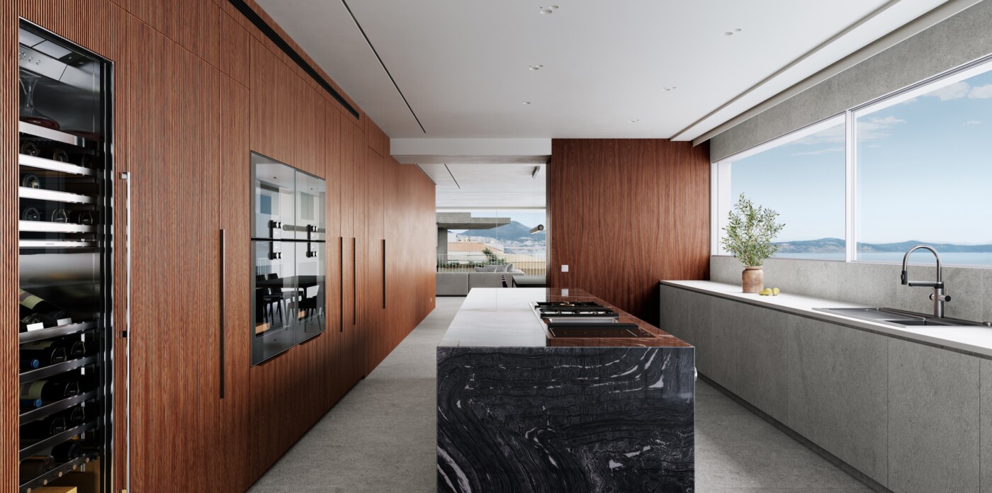 Life at the top is redefined in this exceptional penthouse, which offers more than just a home; it provides a luxurious and sophisticated lifestyle. The kitchen is fully equipped with high-end Gaggenau appliances, the separate laundry room with Miele appliances, and a spacious pantry is also included. For versatility, sleek Rimadesio sliding doors allow you to effortlessly transition between an open-plan layout and separate living, dining, and kitchen spaces, offering both flexibility and privacy.