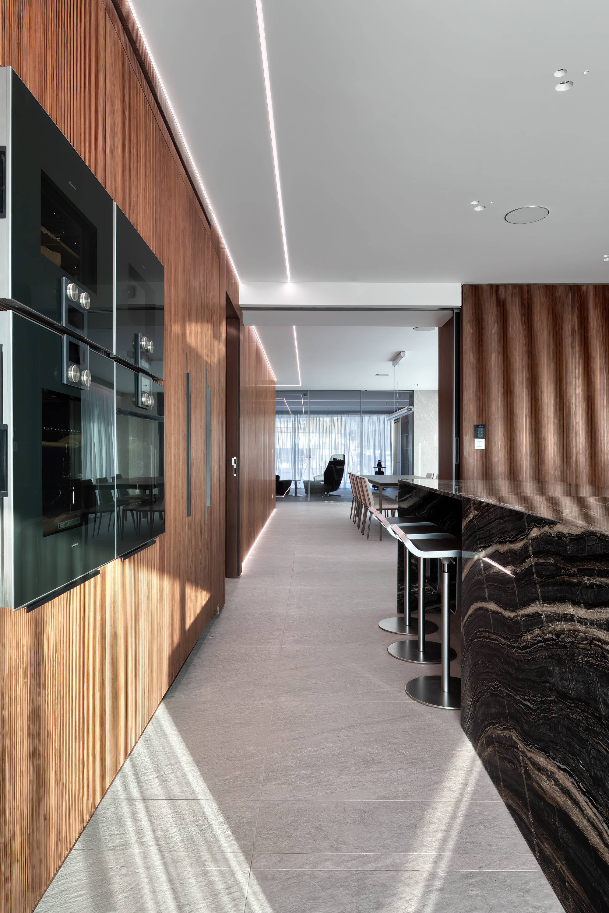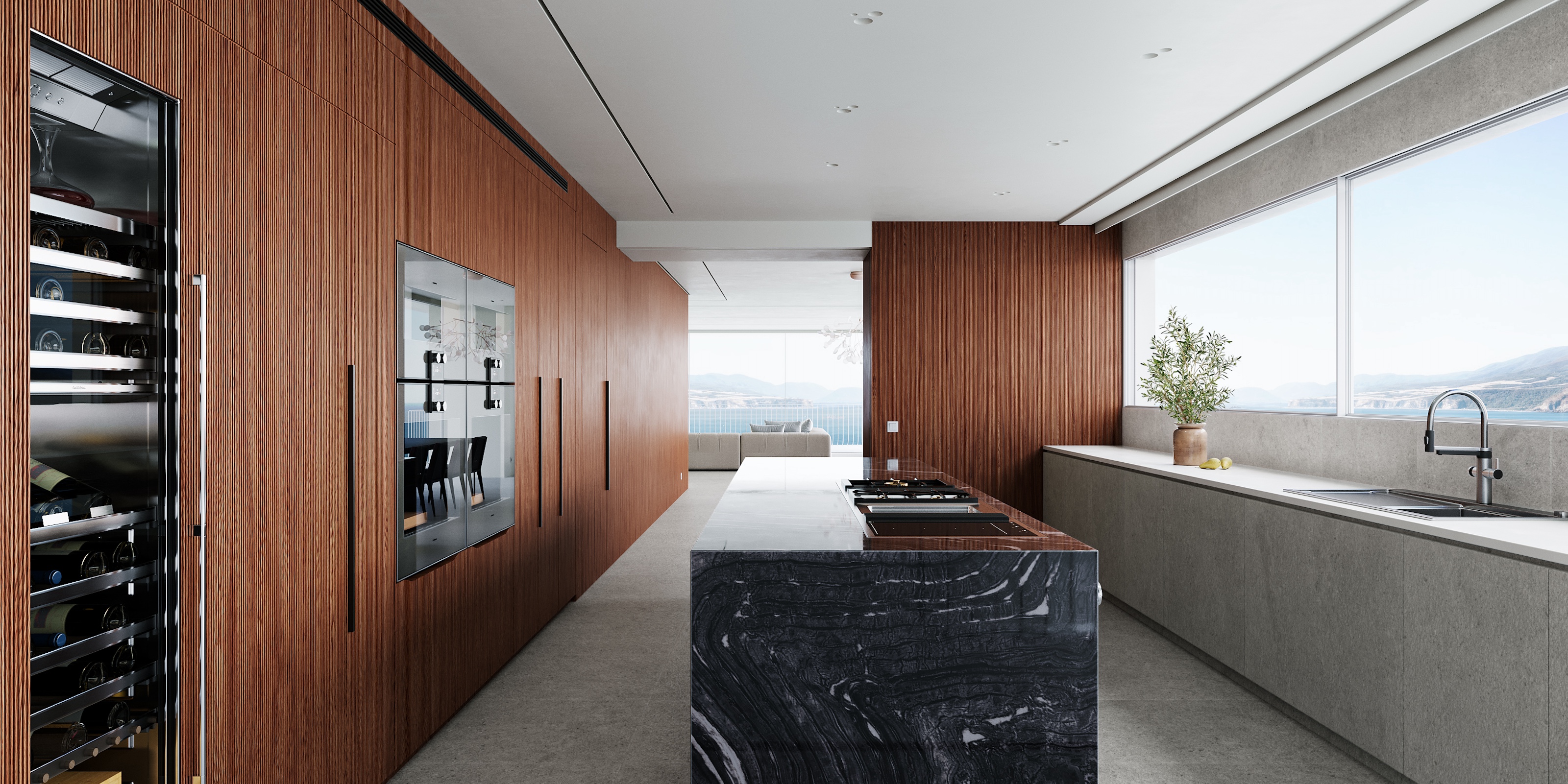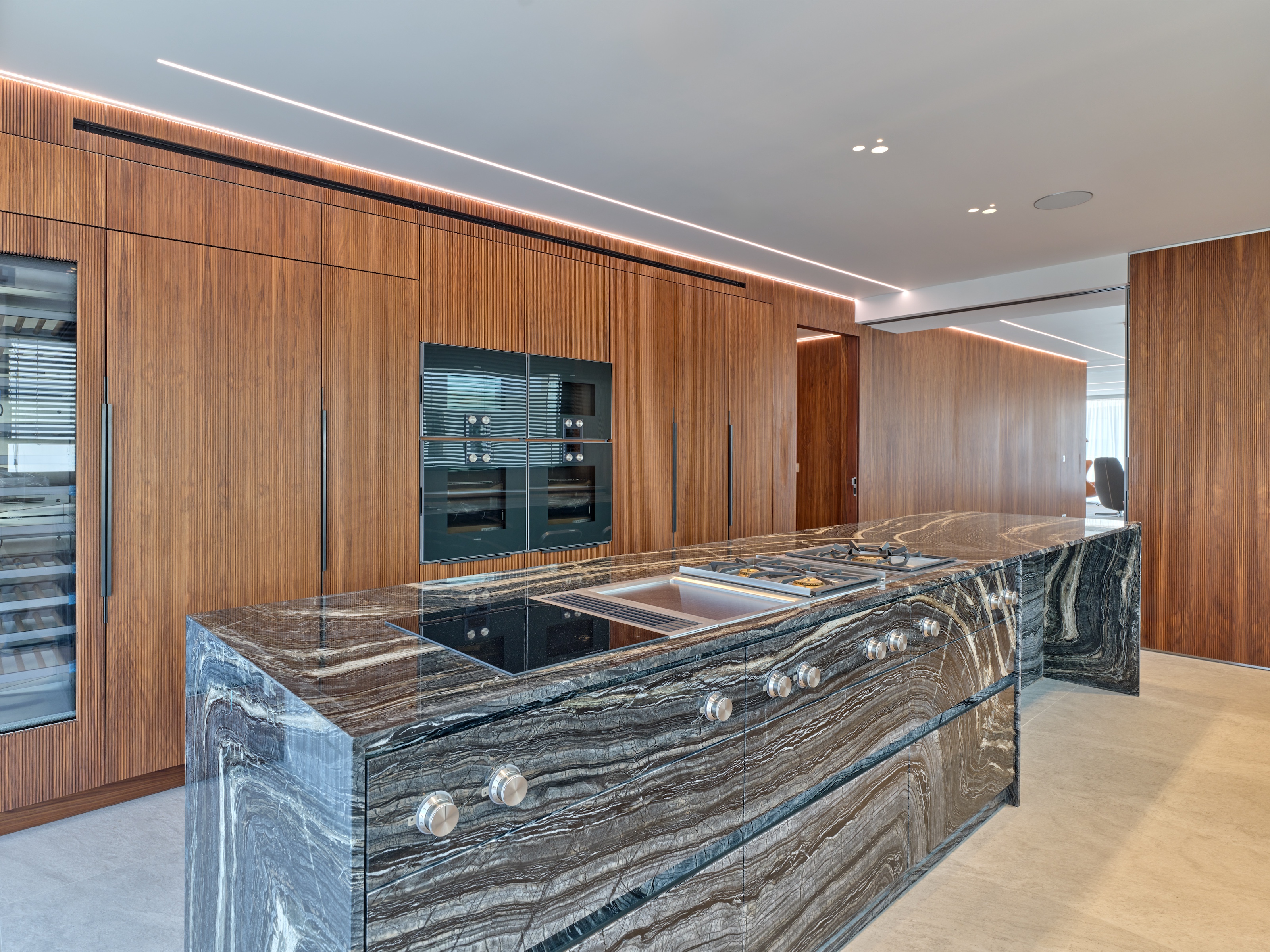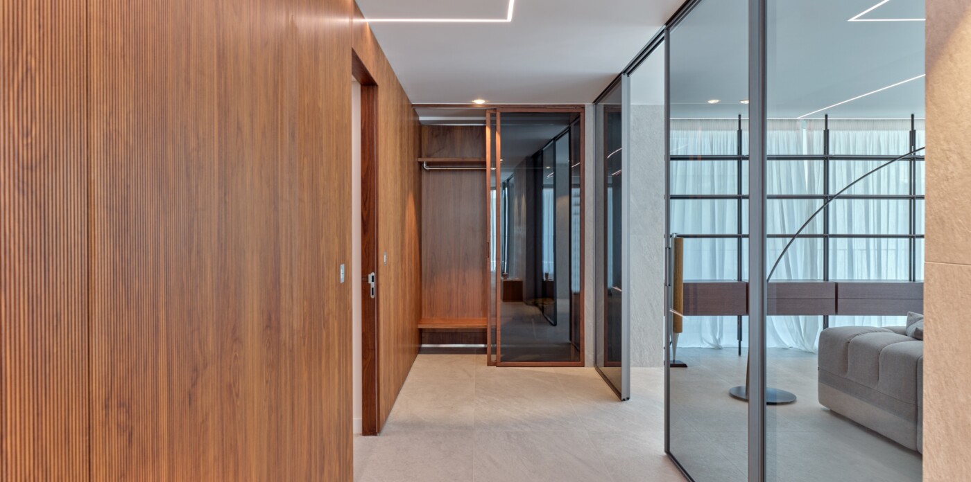 Life at the top is redefined in this exceptional penthouse, which offers more than just a home; it provides a luxurious and sophisticated lifestyle. The kitchen is fully equipped with high-end Gaggenau appliances, the separate laundry room with Miele appliances, and a spacious pantry is also included. For versatility, sleek Rimadesio sliding doors allow you to effortlessly transition between an open-plan layout and separate living, dining, and kitchen spaces, offering both flexibility and privacy.