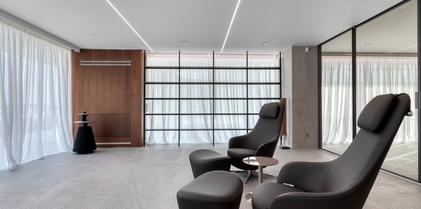 This fully-furnished penthouse features a top-of-the-line Bang & Olufsen audio-visual system.