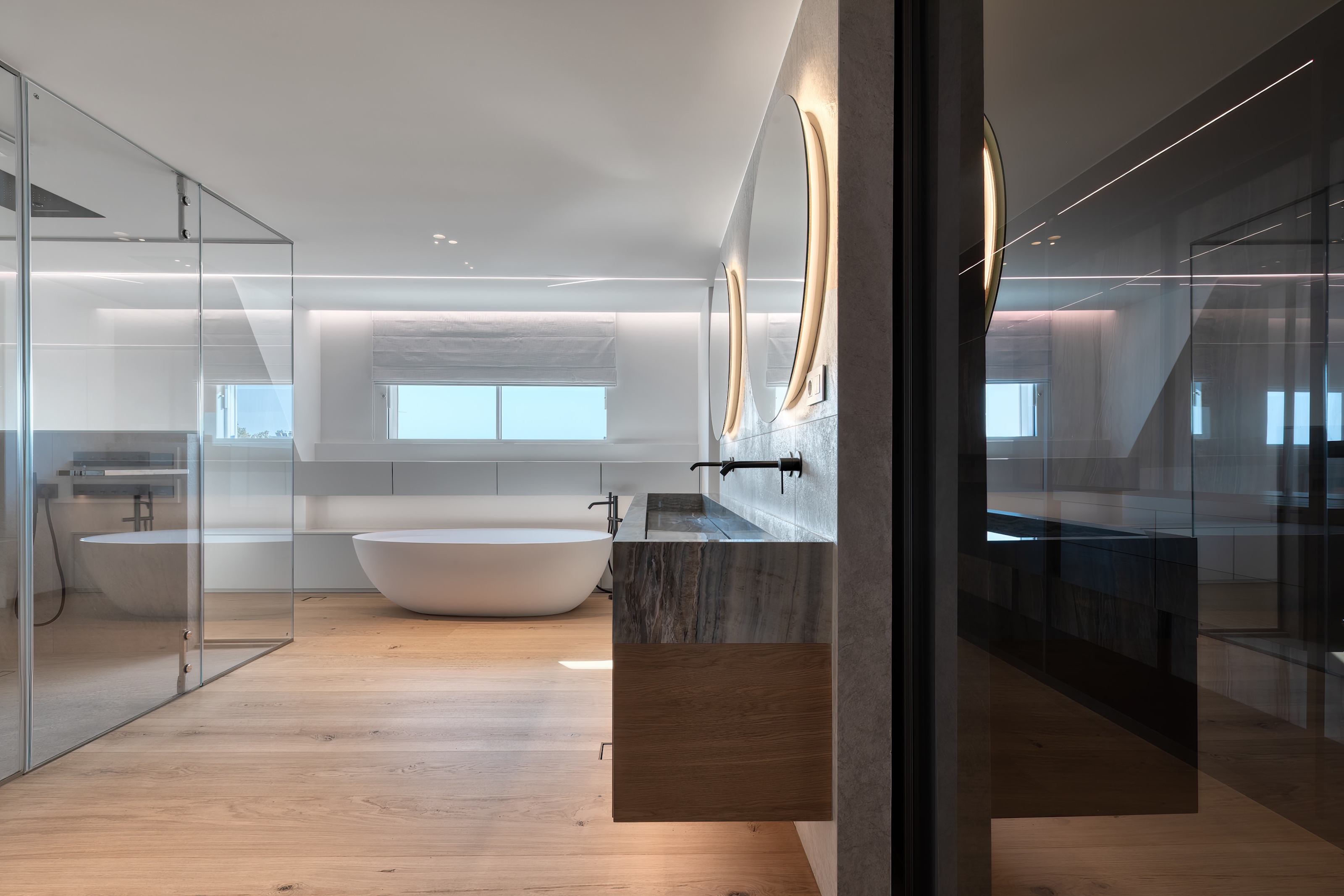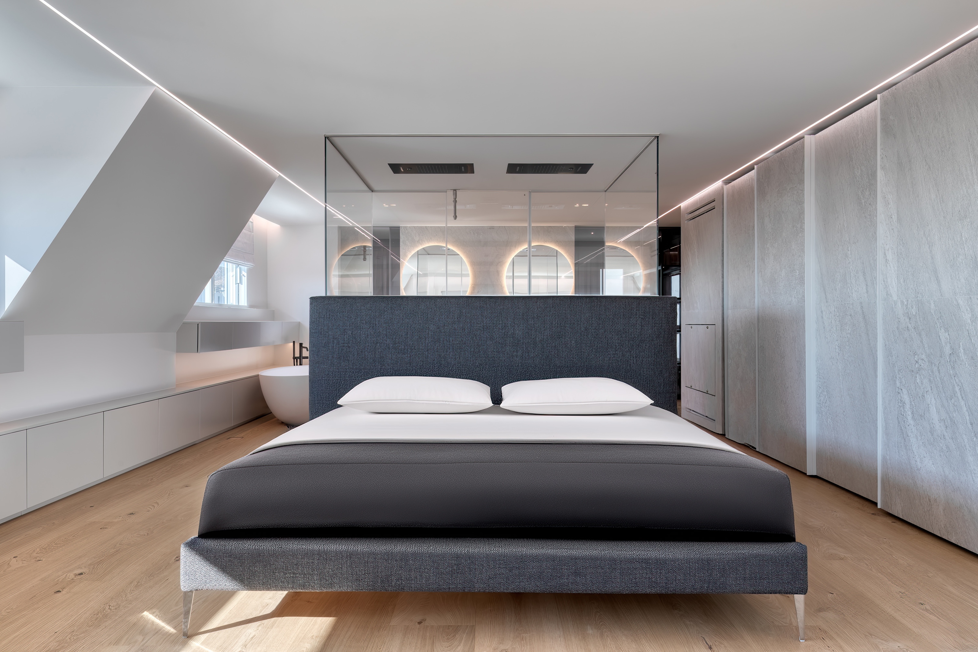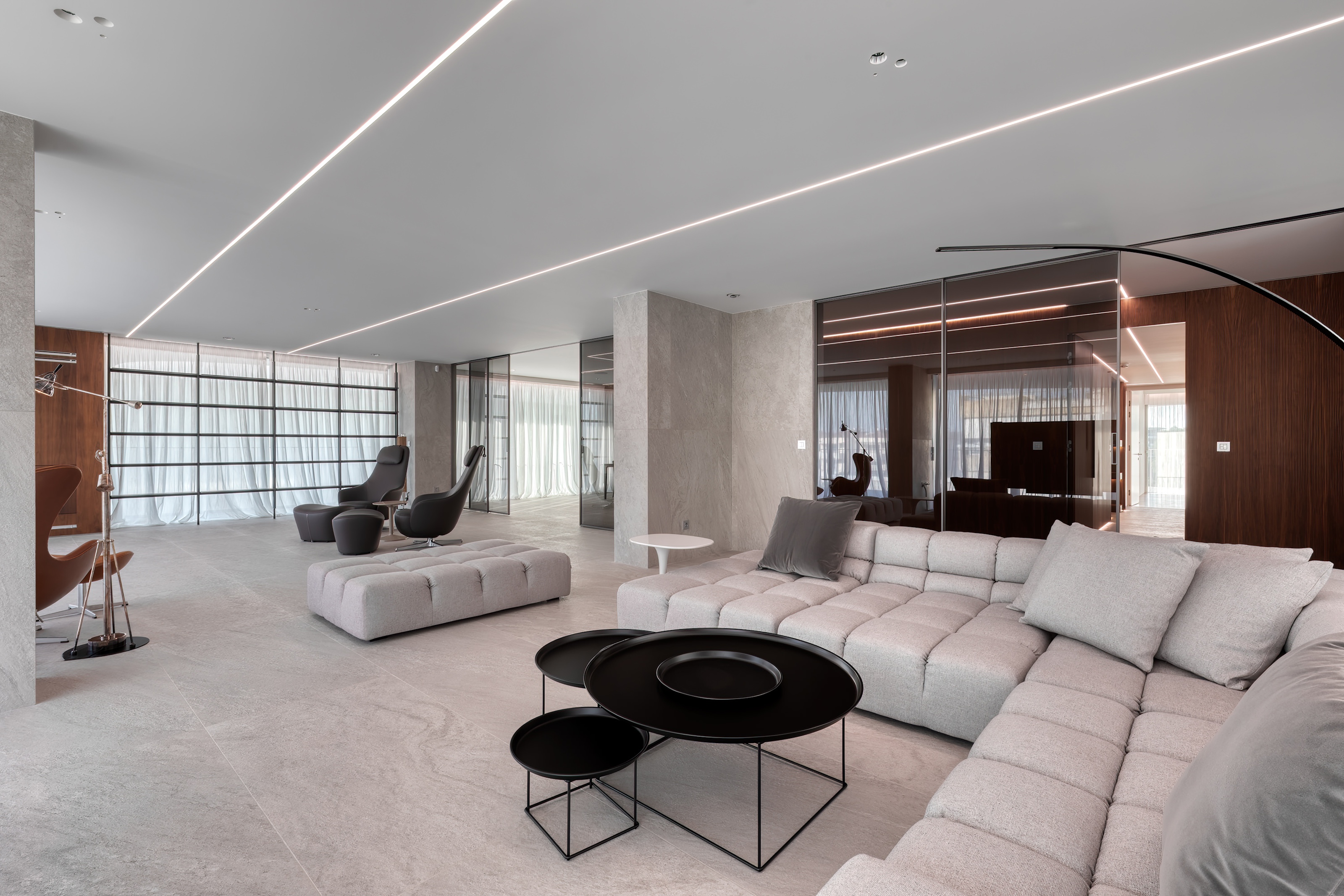 The lighting throughout the penthouse is meticulously designed with dim-to-warm features, allowing you to adjust the ambiance to suit any occasion, whether it be a bright morning or a cozy evening.