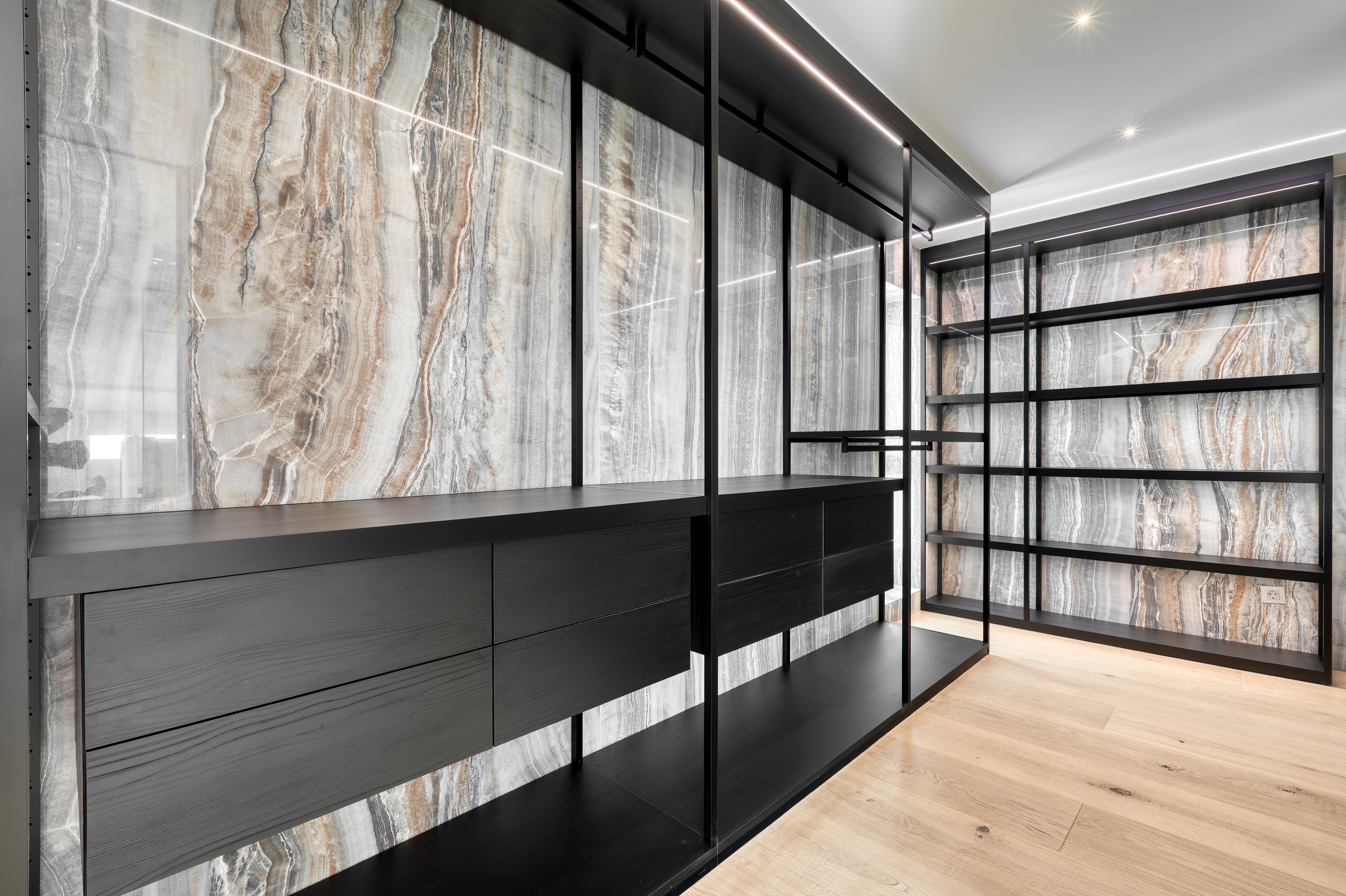 The fifth floor, encompassing a generous 179.84 square meters, unveils a haven of luxury. Here, the master bedroom exudes sophistication with its lavish Porro walk-in closet, offering a stylish solution for wardrobe organization. An adjacent office provides a quiet workspace, while a movie room promises cozy nights of entertainment.