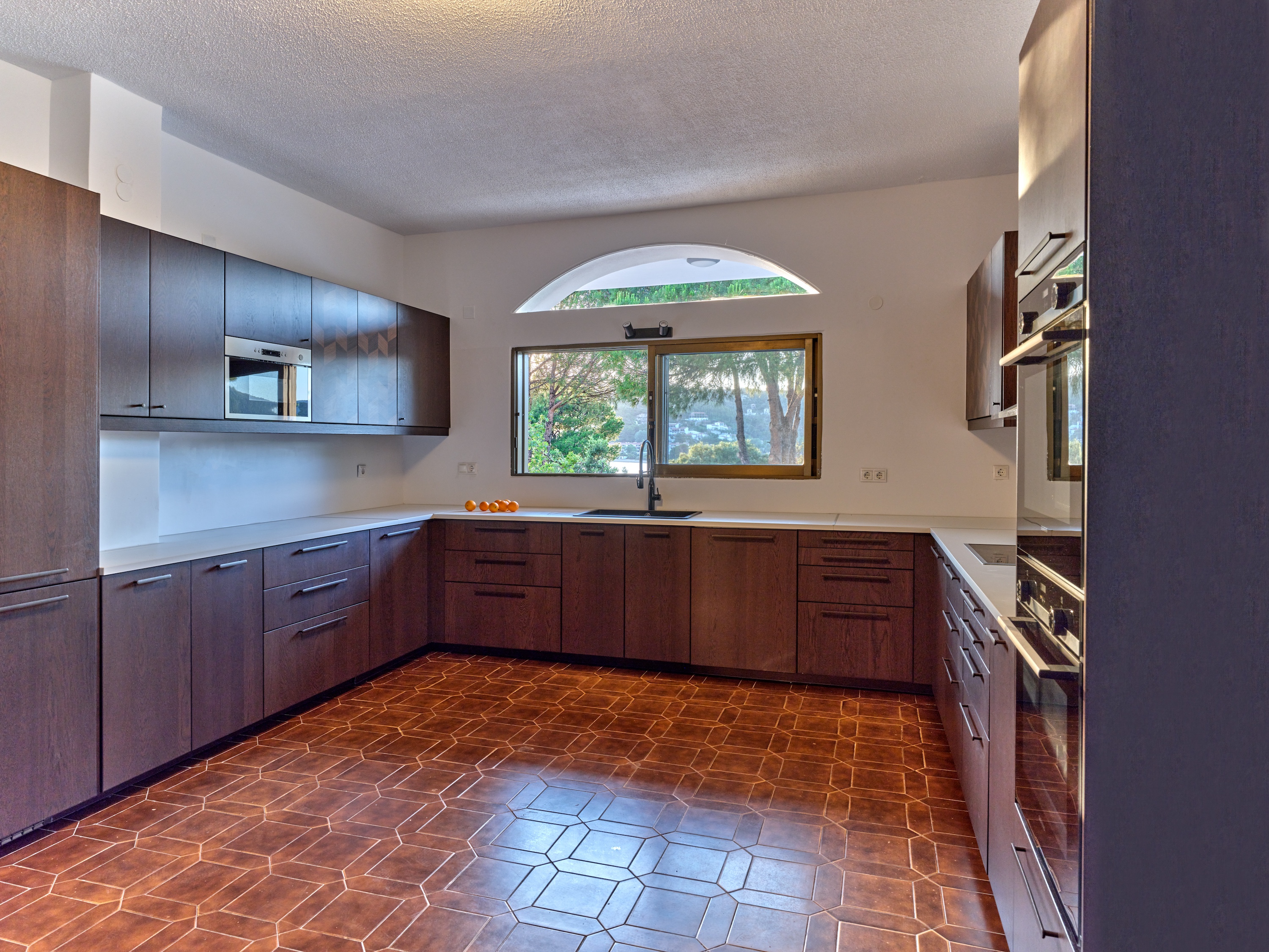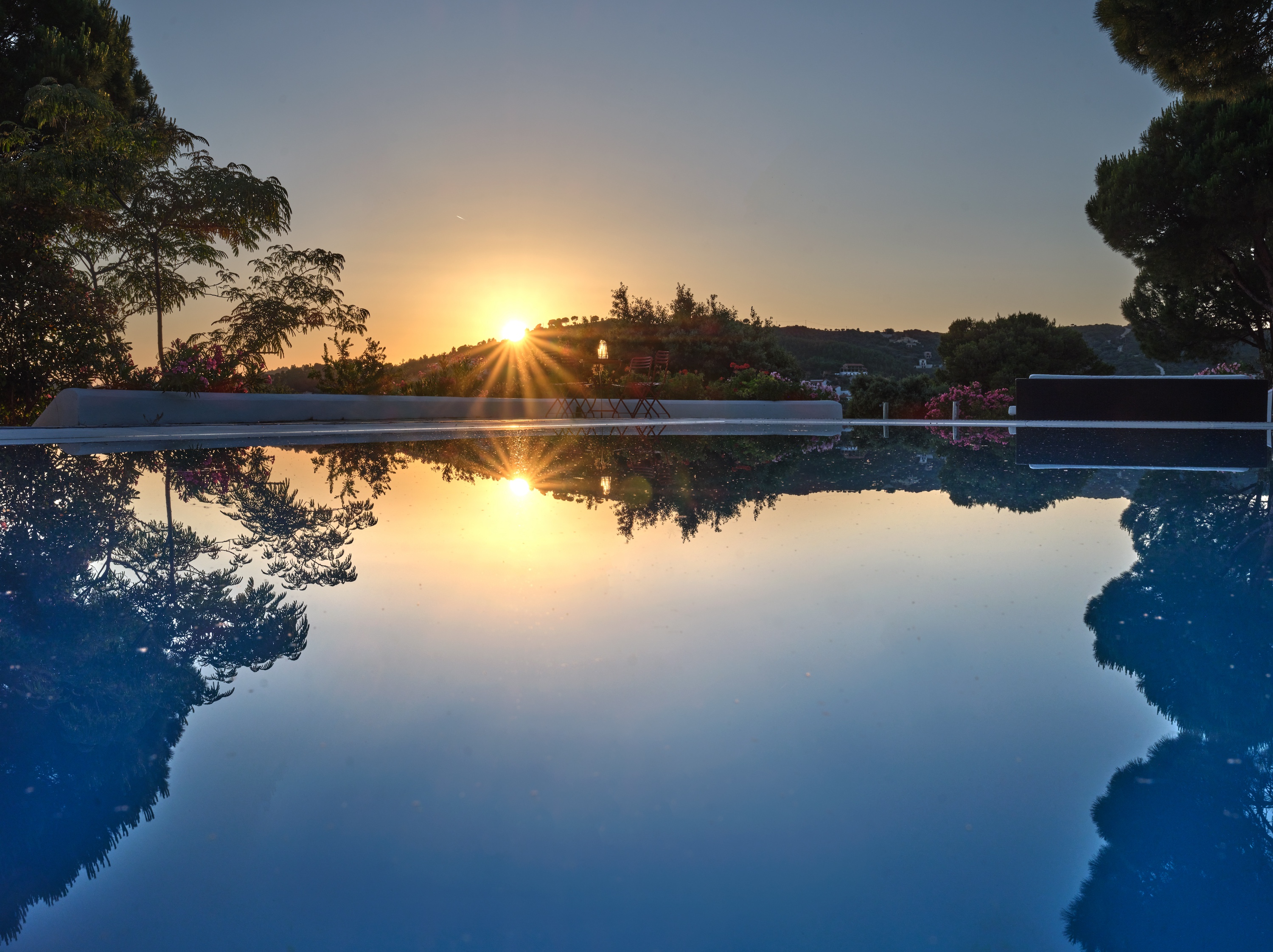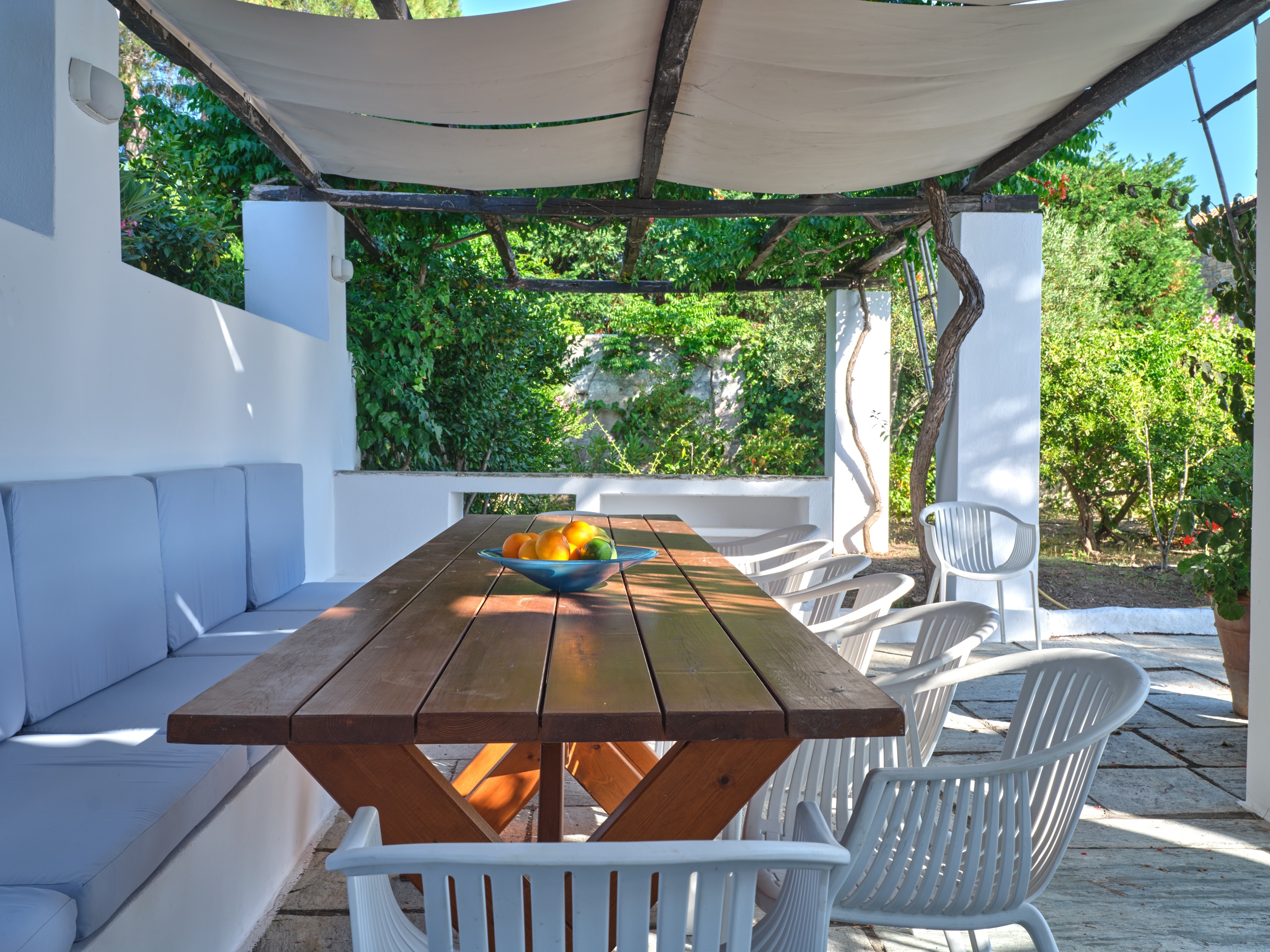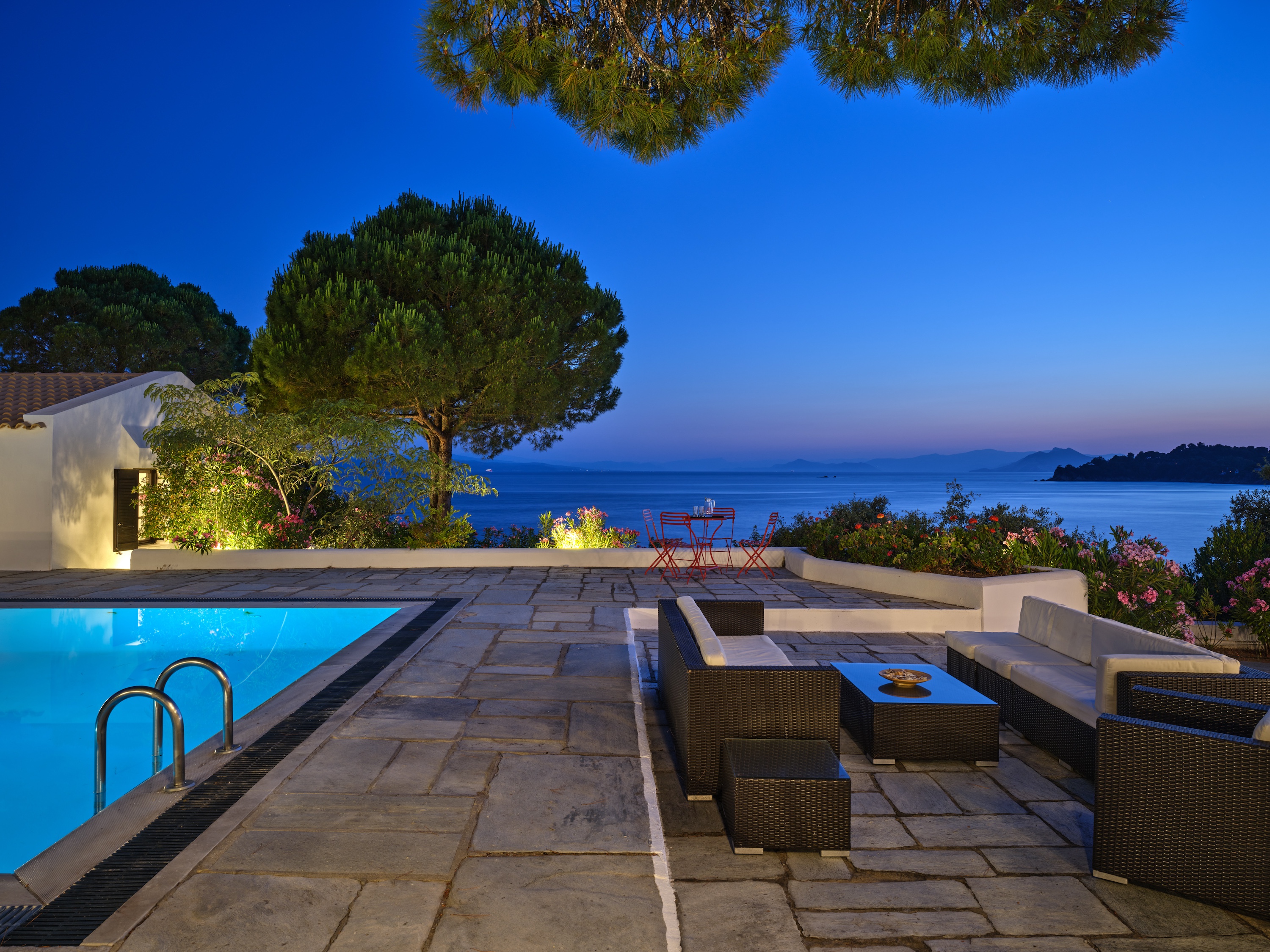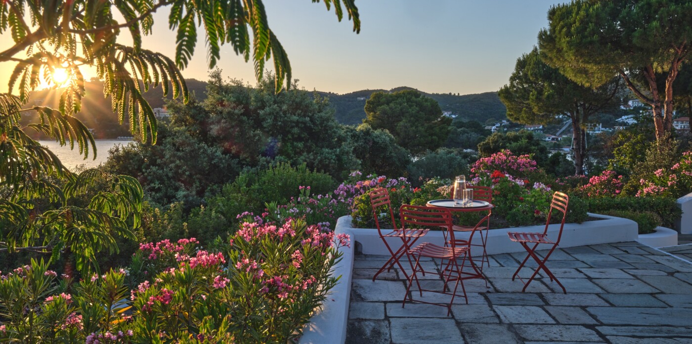Stroll through shaded pathways lined with aromatic lavender and rosemary, their soothing scents filling the air. Discover hidden corners shaded by majestic pine trees, where you can lose yourself in quiet contemplation, or simply unwind by the private swimming pool, surrounded by olive and cypress trees, their rustling leaves creating a gentle melody as you gaze upon the turquoise waters below.