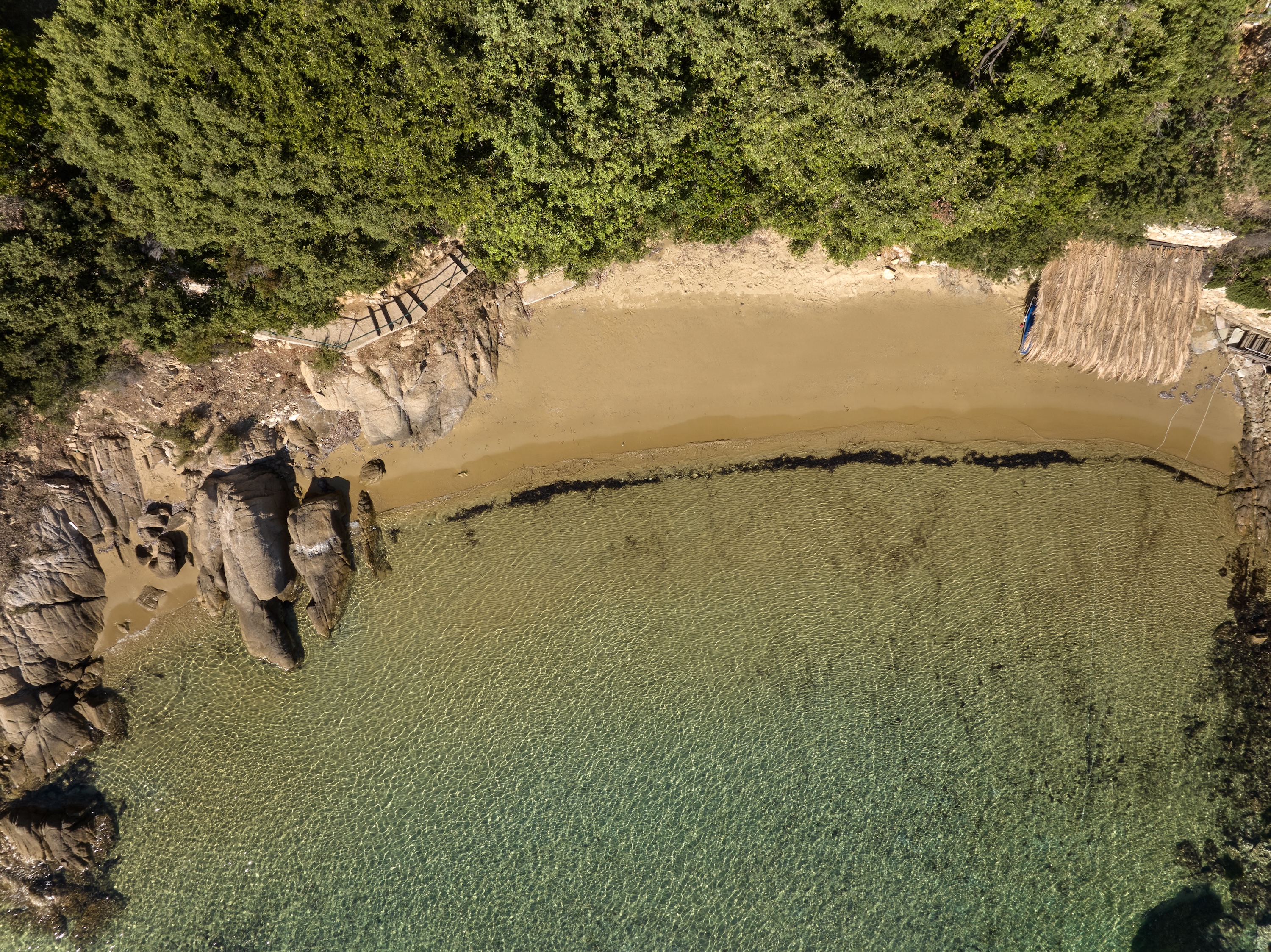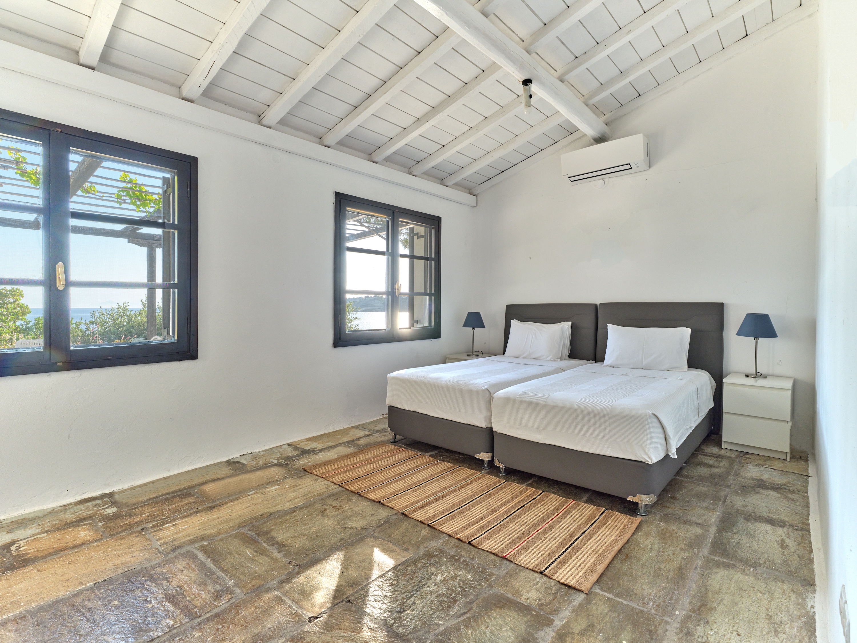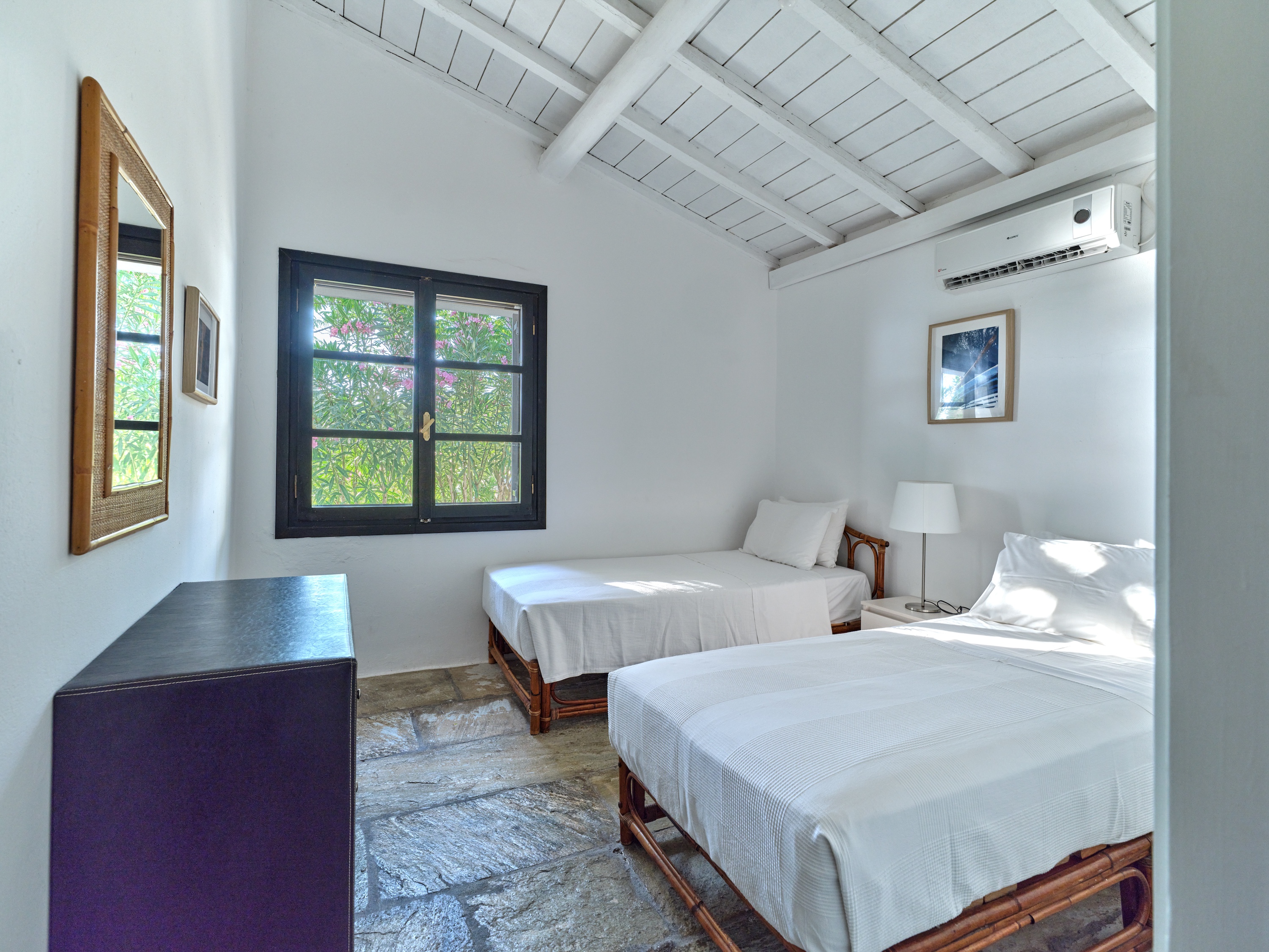Descend private paths that wind gently down from the villa, and you’ll find yourself on not one, but two secluded sandy beaches