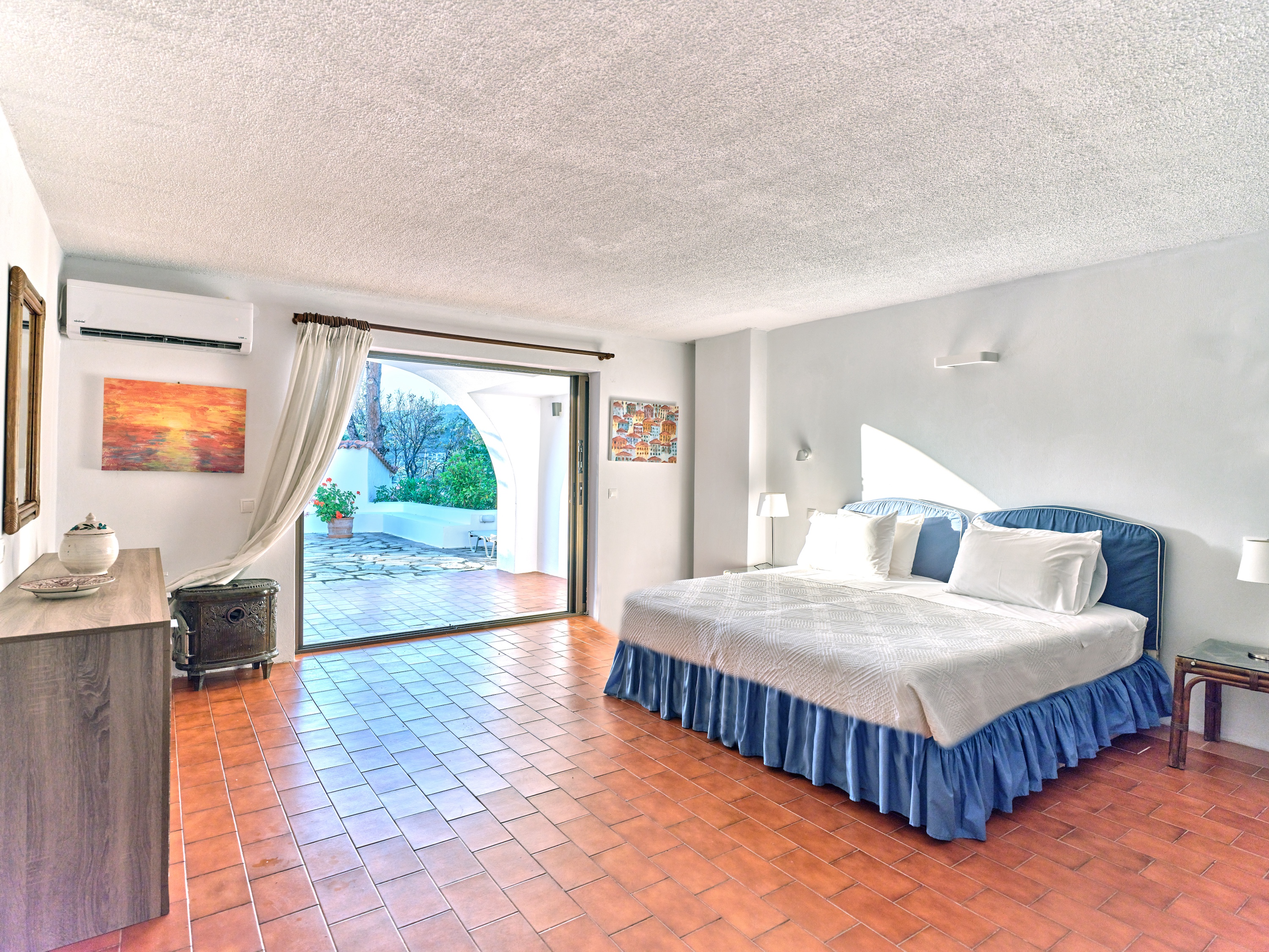 Velvet Cove showcases a harmonious fusion of traditional Cycladic architecture and contemporary comforts. Exposed wooden beams, terracotta tiles, and locally sourced stone create a warm and inviting ambiance, while expansive living areas, six lavish bedrooms with ensuite bathrooms cater to the most discerning tastes.