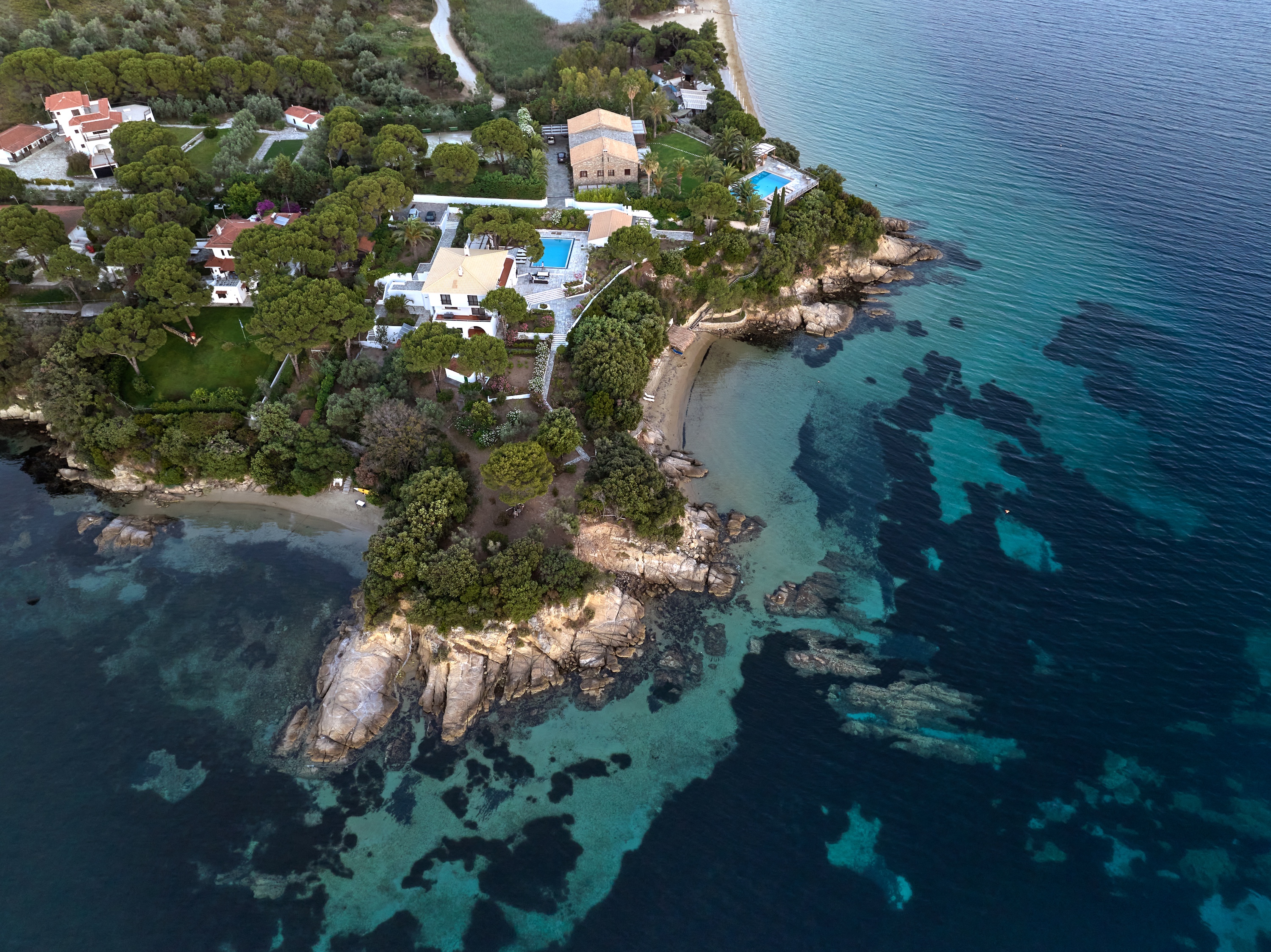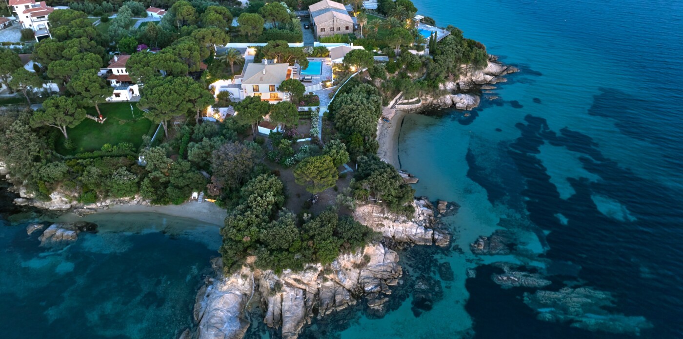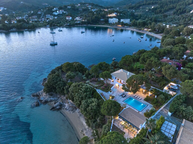 Velvet Cove is a rare beachfront estate on the idyllic island of Skiathos, where turquoise waters meet pristine sands, and ancient charm embraces modern luxury. With not one, but two directly accessible golden beaches nestled beneath a gentle rise, this is a sanctuary where the rhythms of the Aegean Sea become the soundtrack of your life.