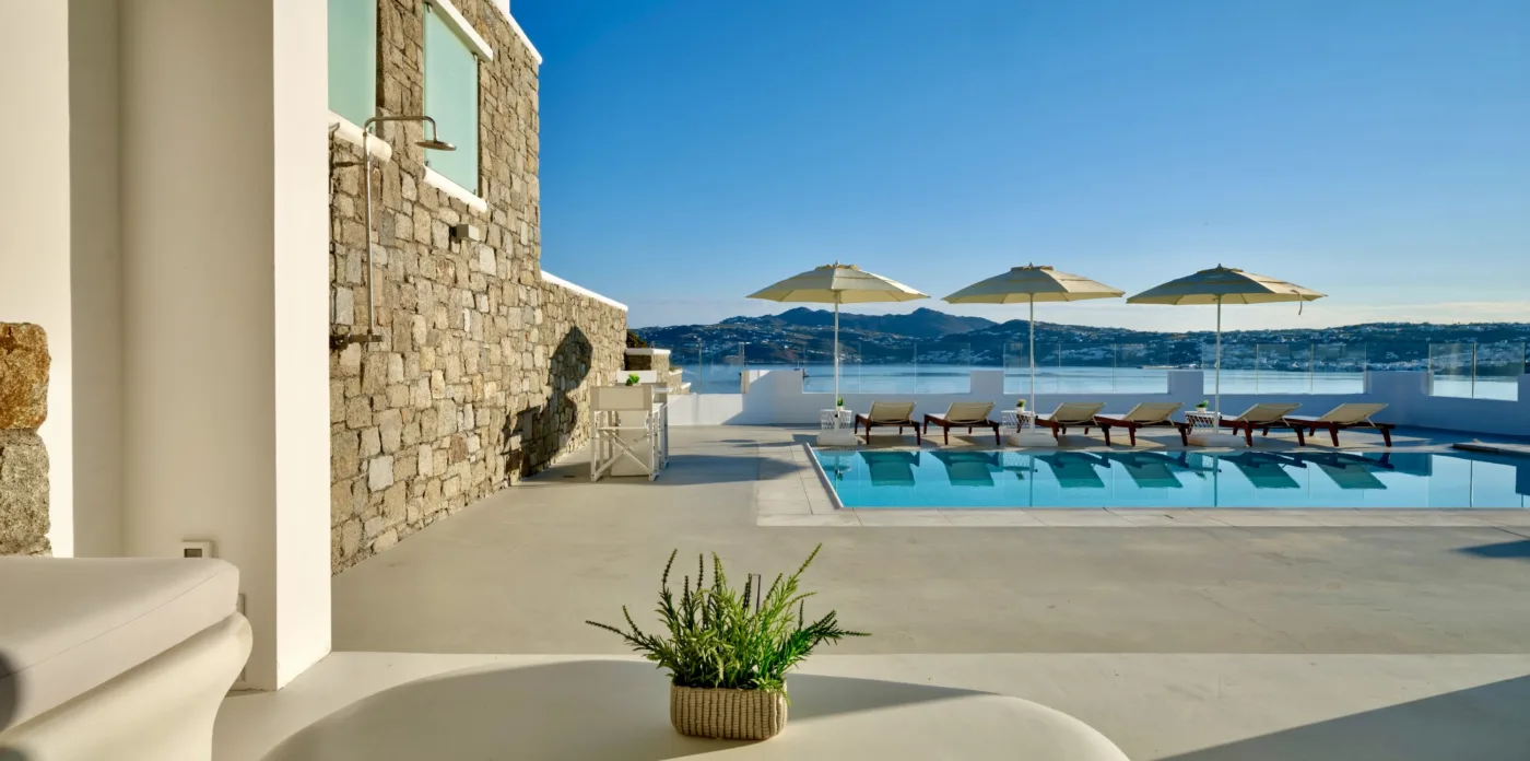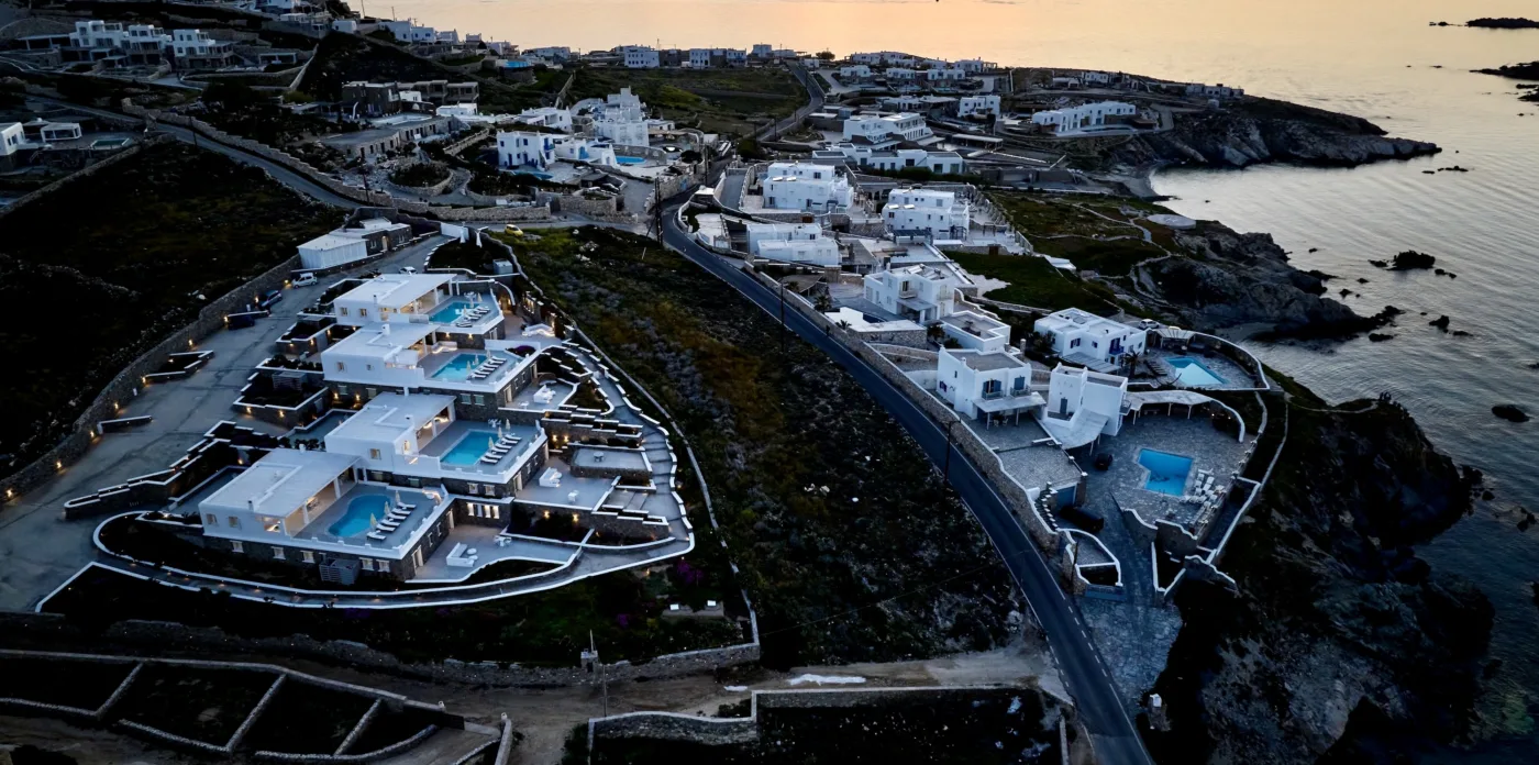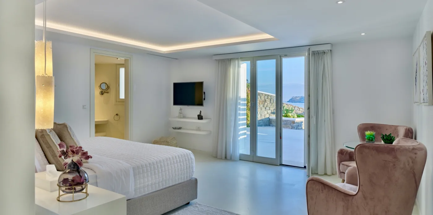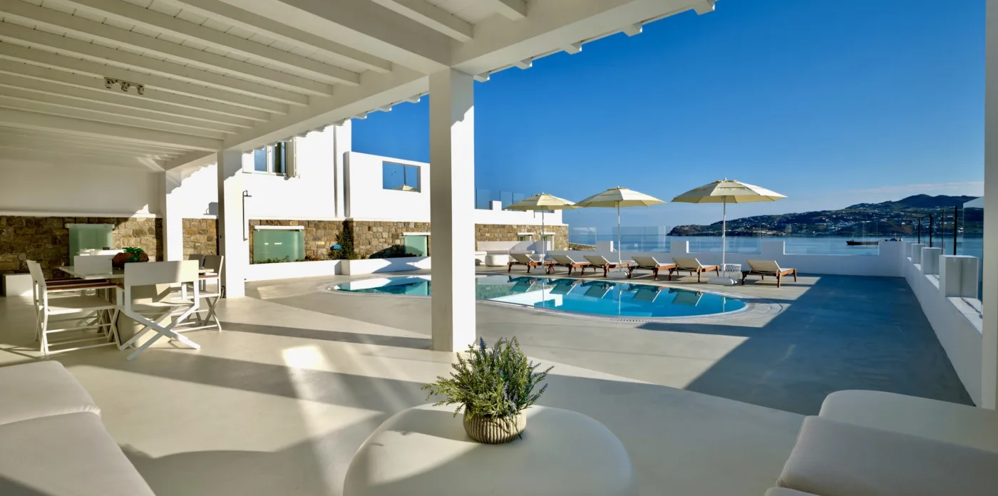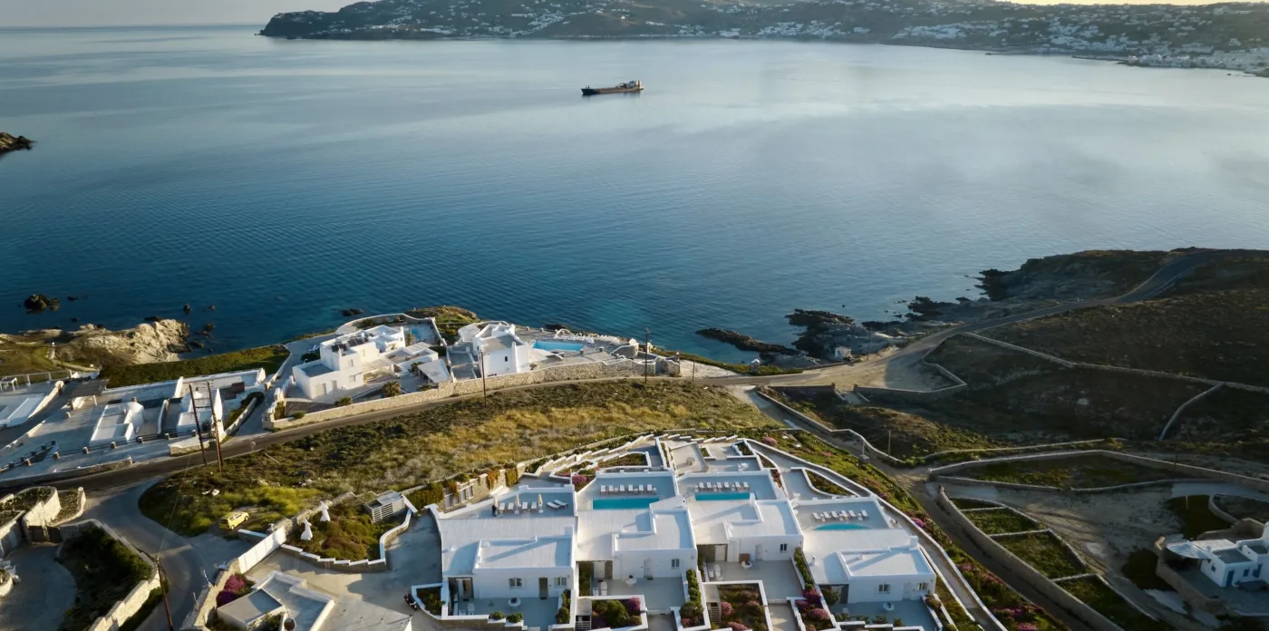 Nestled in the picturesque area of Kanalia, on the island of Mykonos, lies Virtuoso. This 4-villa complex boasts uninterrupted views of the Aegean Sea, while being within minutes of Mykonos Town and the most popular beaches of the island.