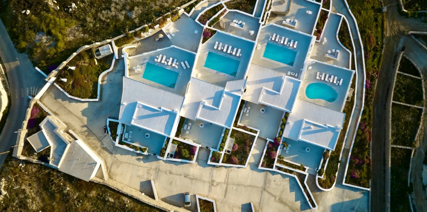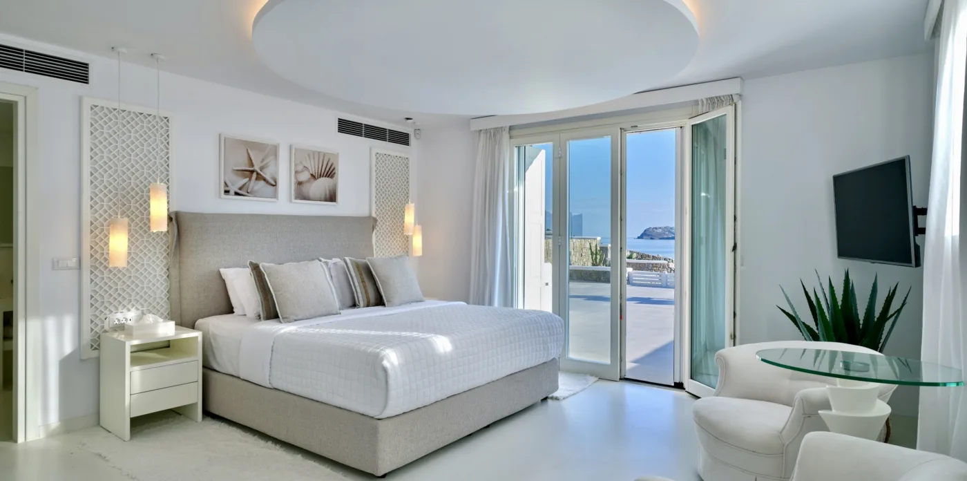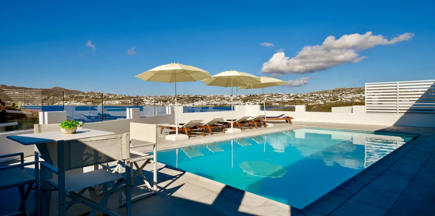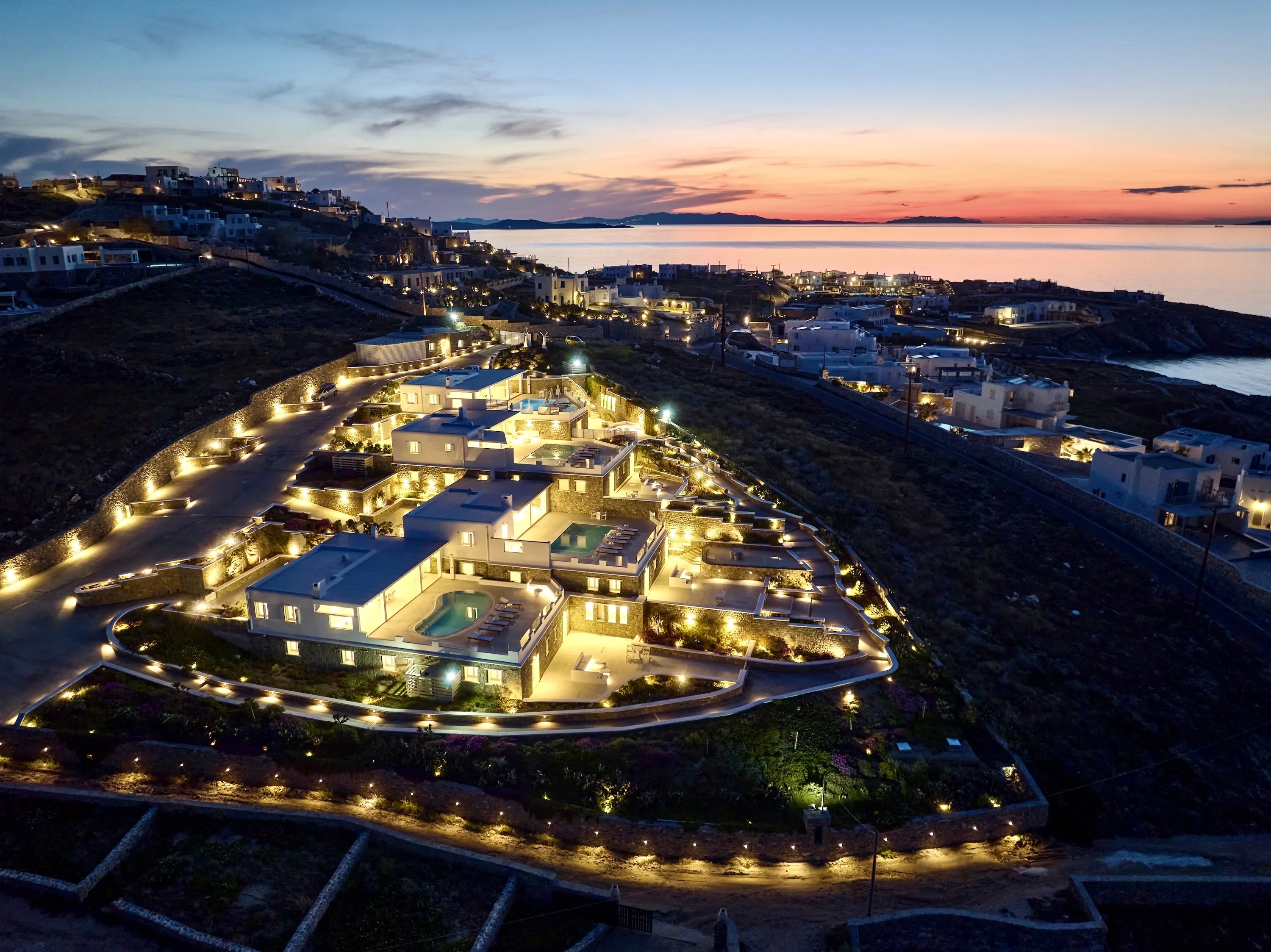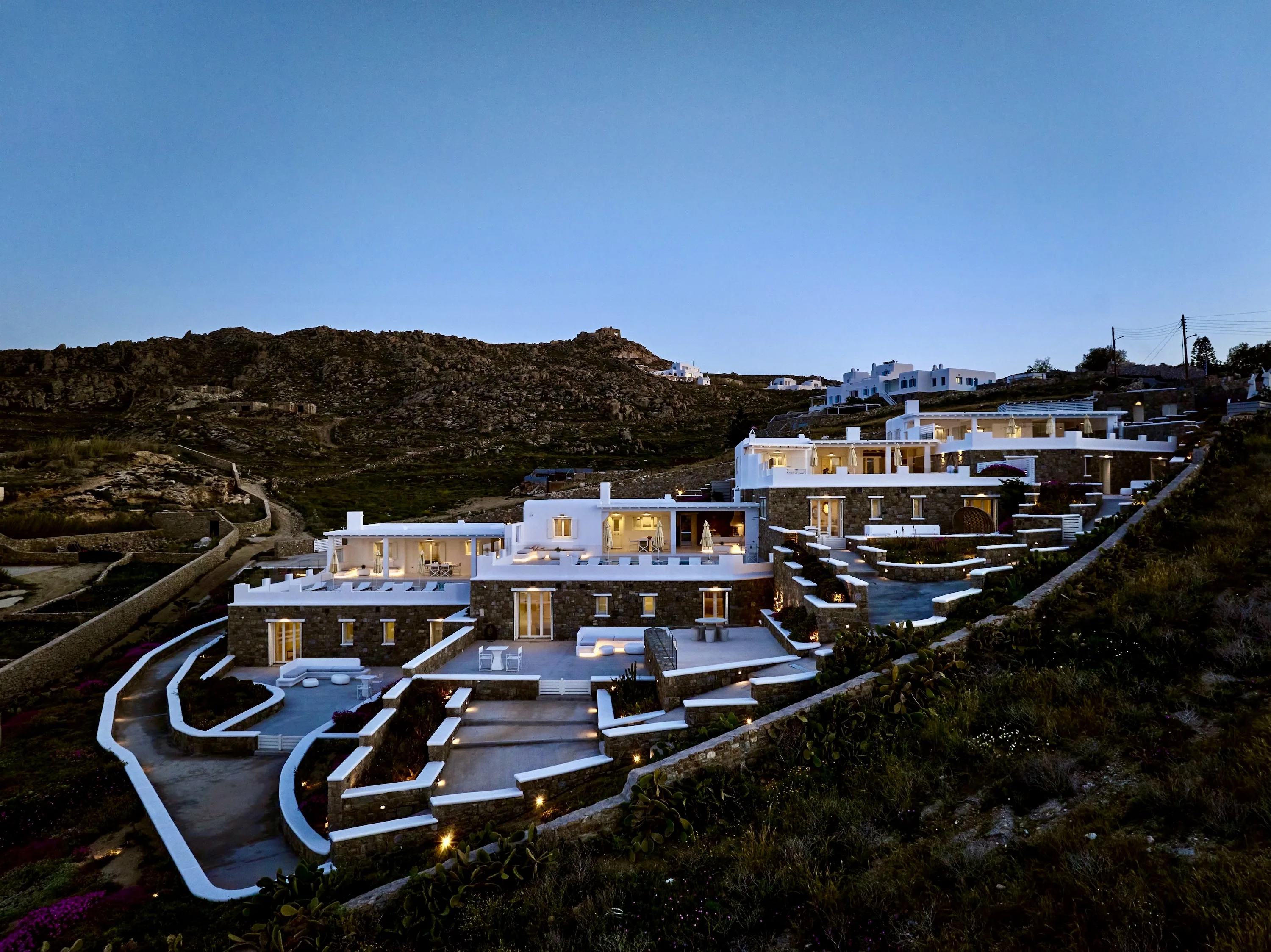Nestled in the picturesque area of Kanalia, on the island of Mykonos, lies Virtuoso. This 4-villa complex boasts uninterrupted views of the Aegean Sea, while being within minutes of Mykonos Town and the most popular beaches of the island.