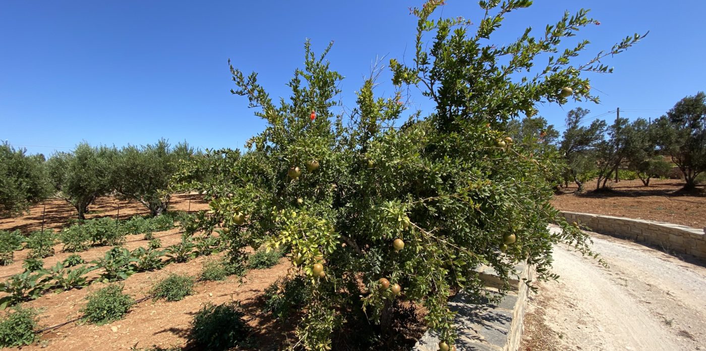 More than 130 olive trees produce yearly between 200 to 500 litres of premium organic olive oil while within the 3 acres garden there are 50 grapevines and a variety of fig trees and pomegranates.