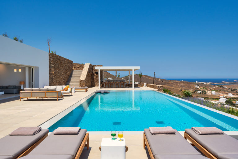 Anima is a luxurious cave villa on the island of Antiparos, located on a hill-side offering breathtaking views of Paros, the Aegean sea and the surrounding islands.