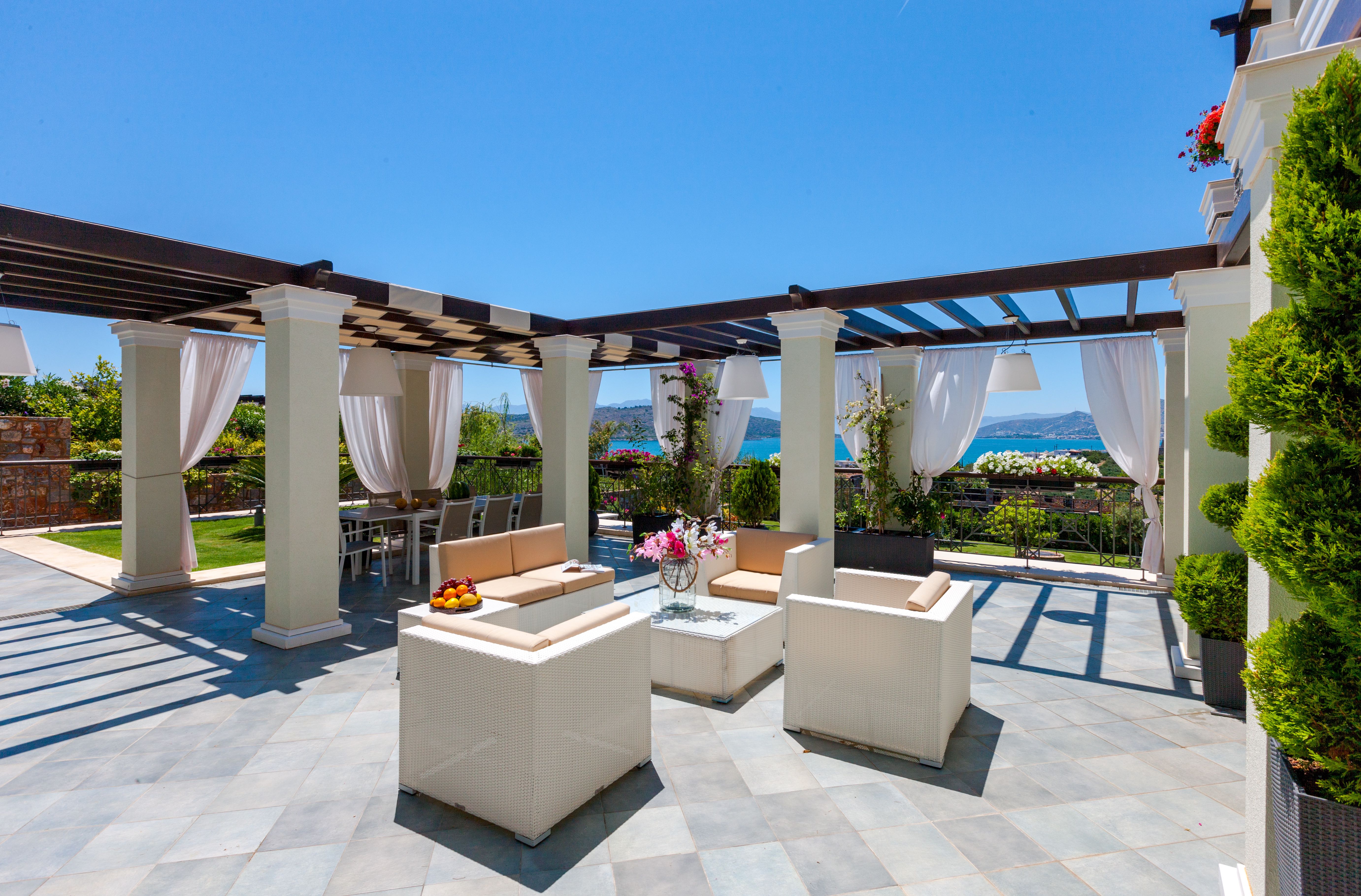 A footpath gives you direct access to a private sandy beach and offers plenty of space to enjoy the warm Greek weather and impeccable landscaping.