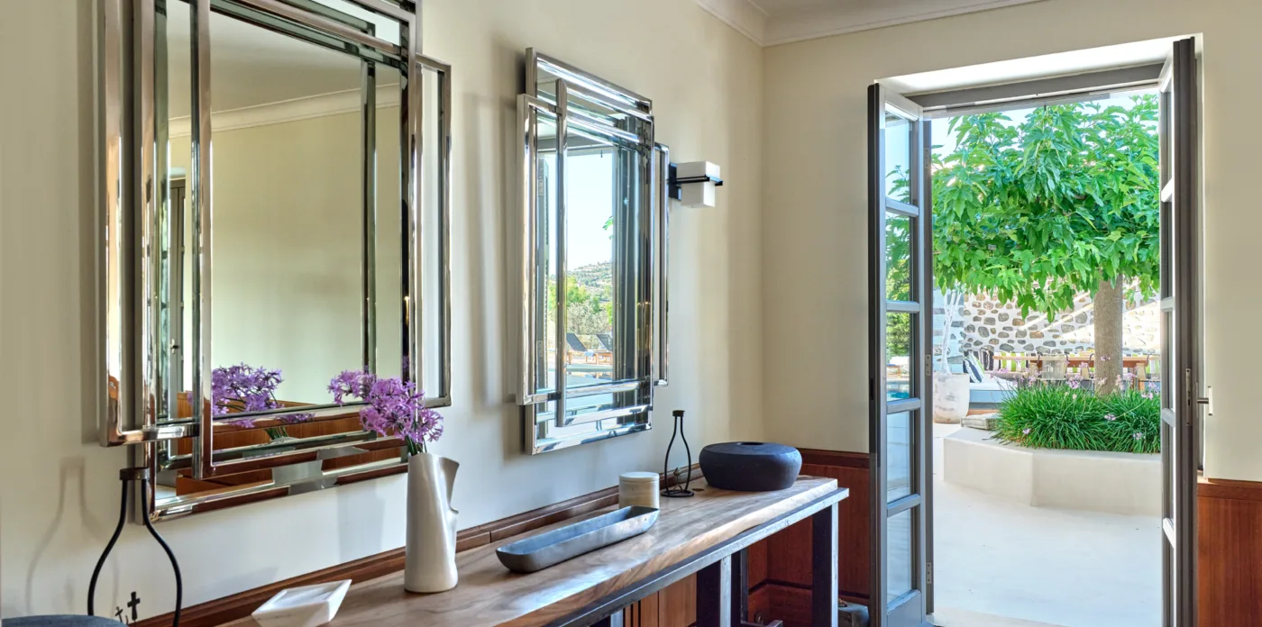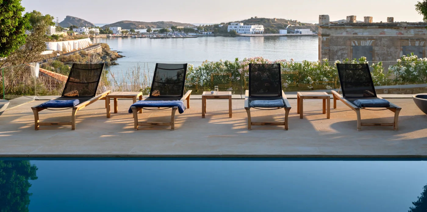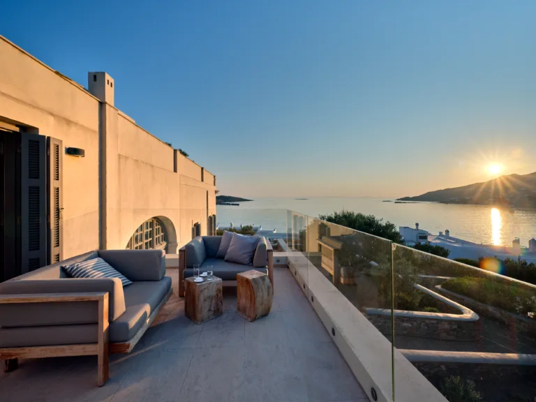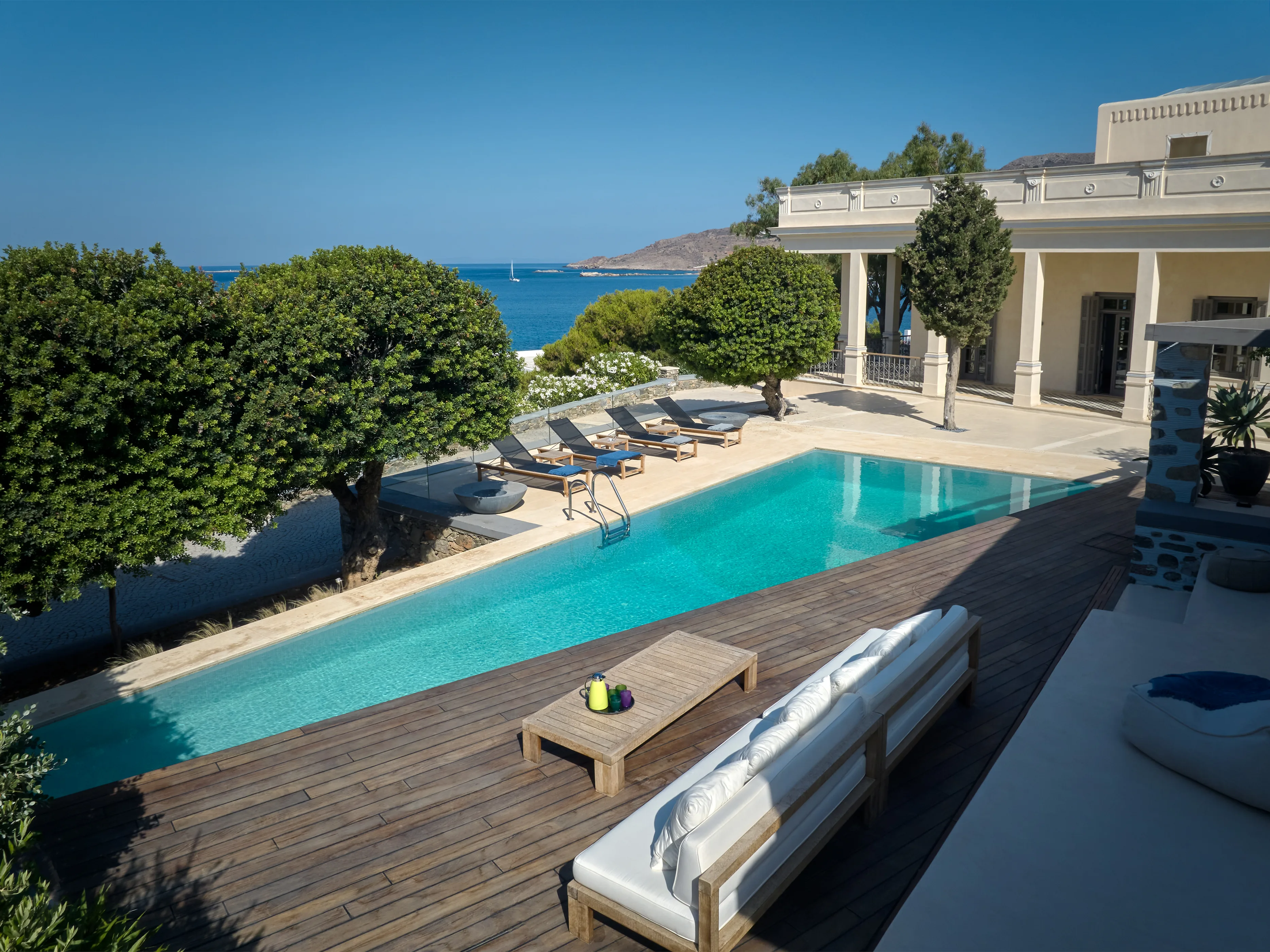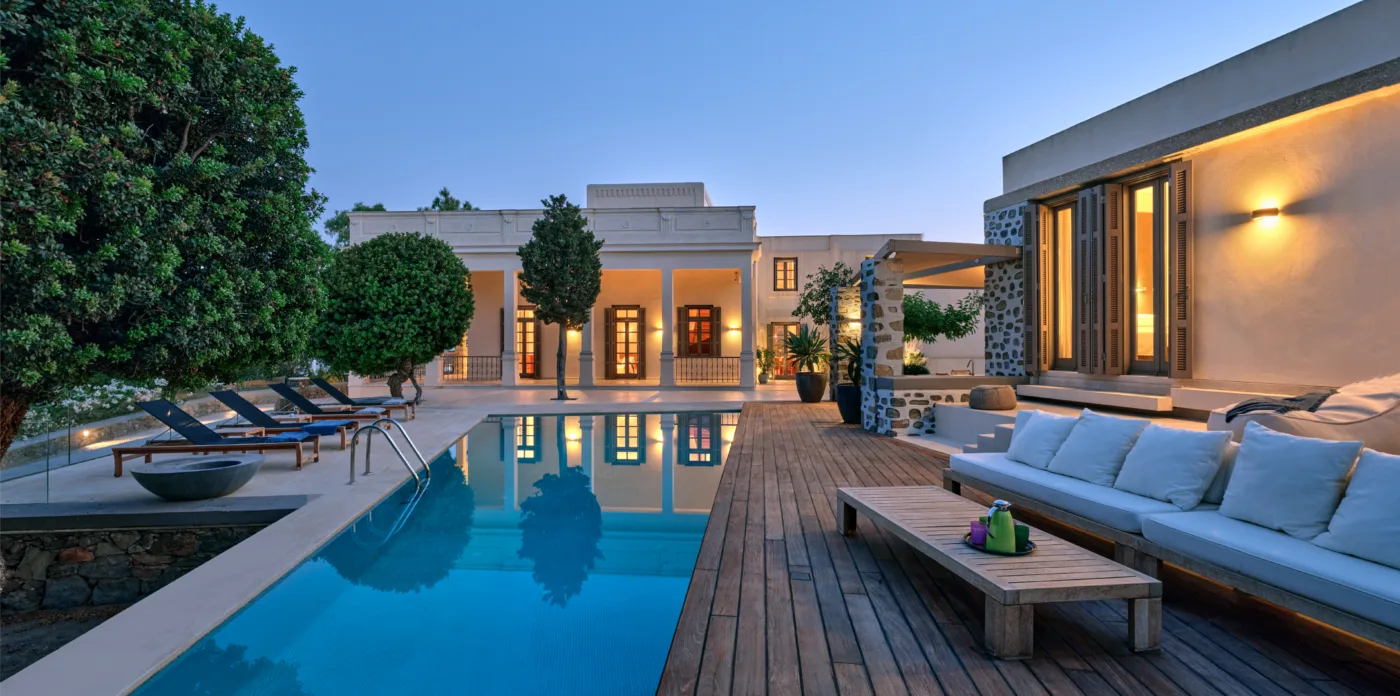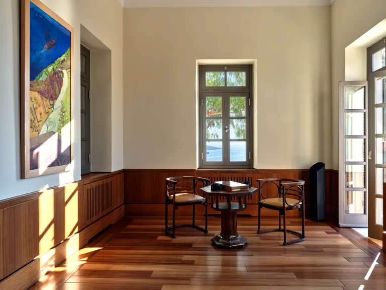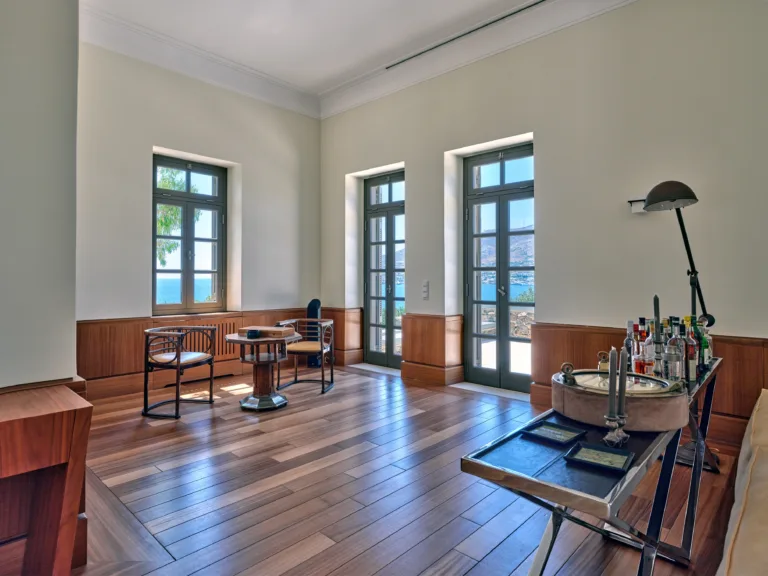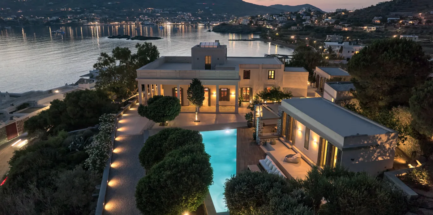 In one of the most prestigious locations on the island, Poseidonia, Eloise will enchant you at first sight. The stunning mansion has been carefully renovated by its owners to combine minimalism, art deco details and neoclassical features in both its indoor and outdoor areas.