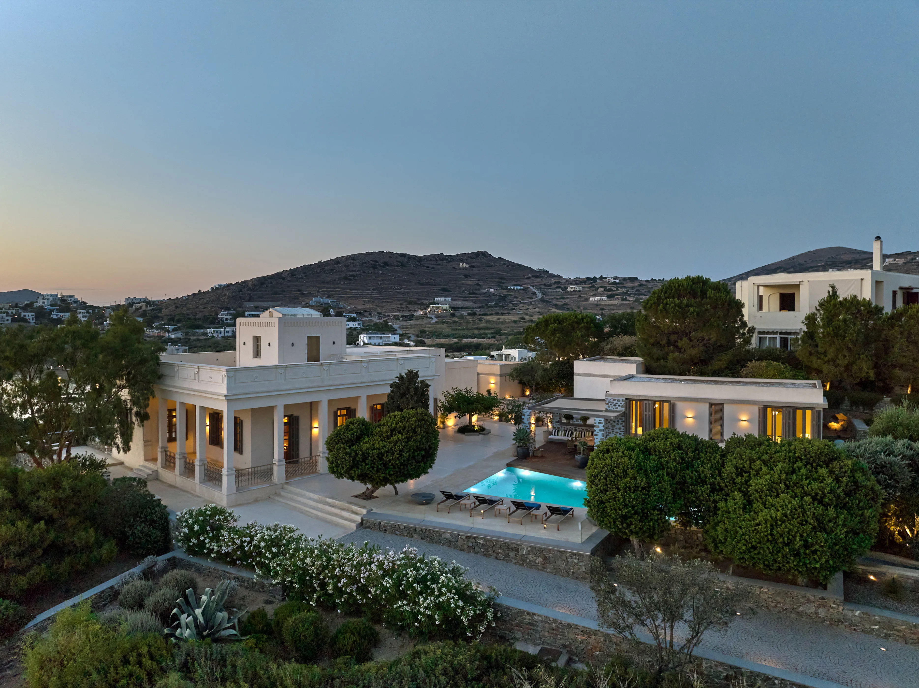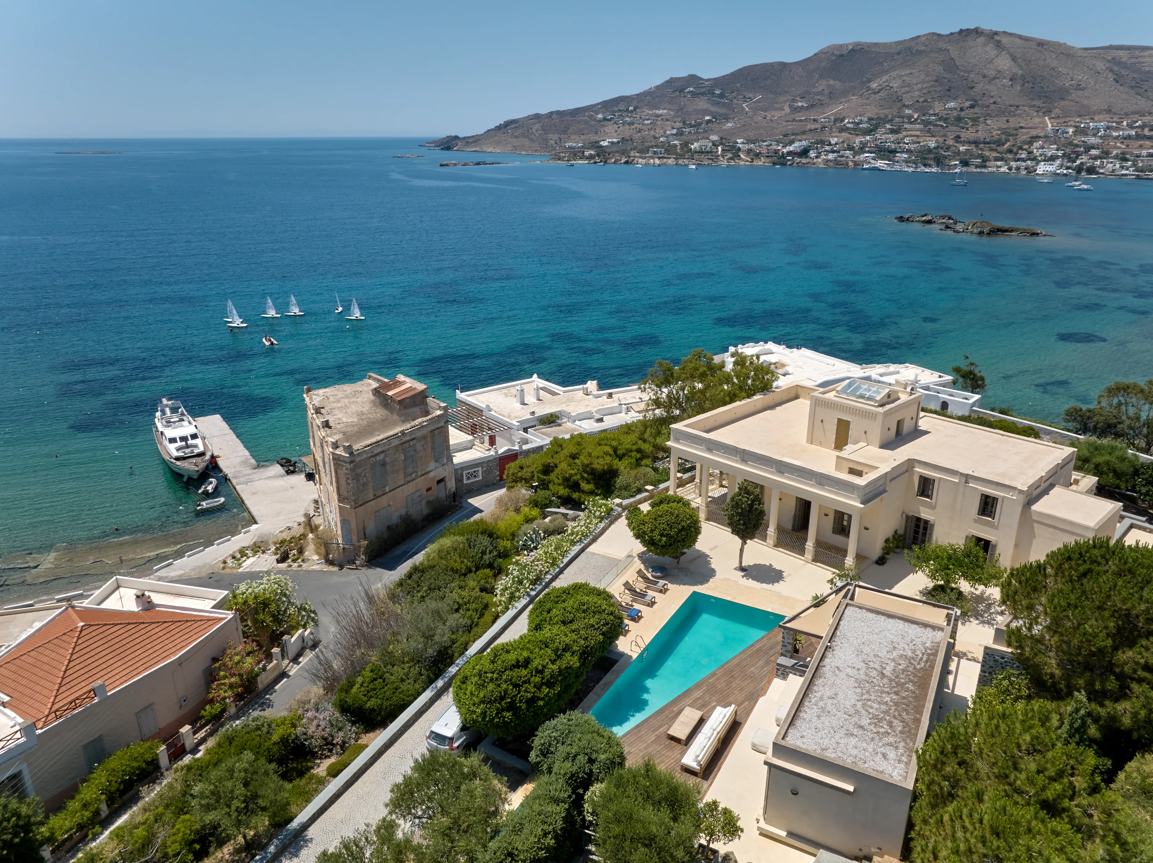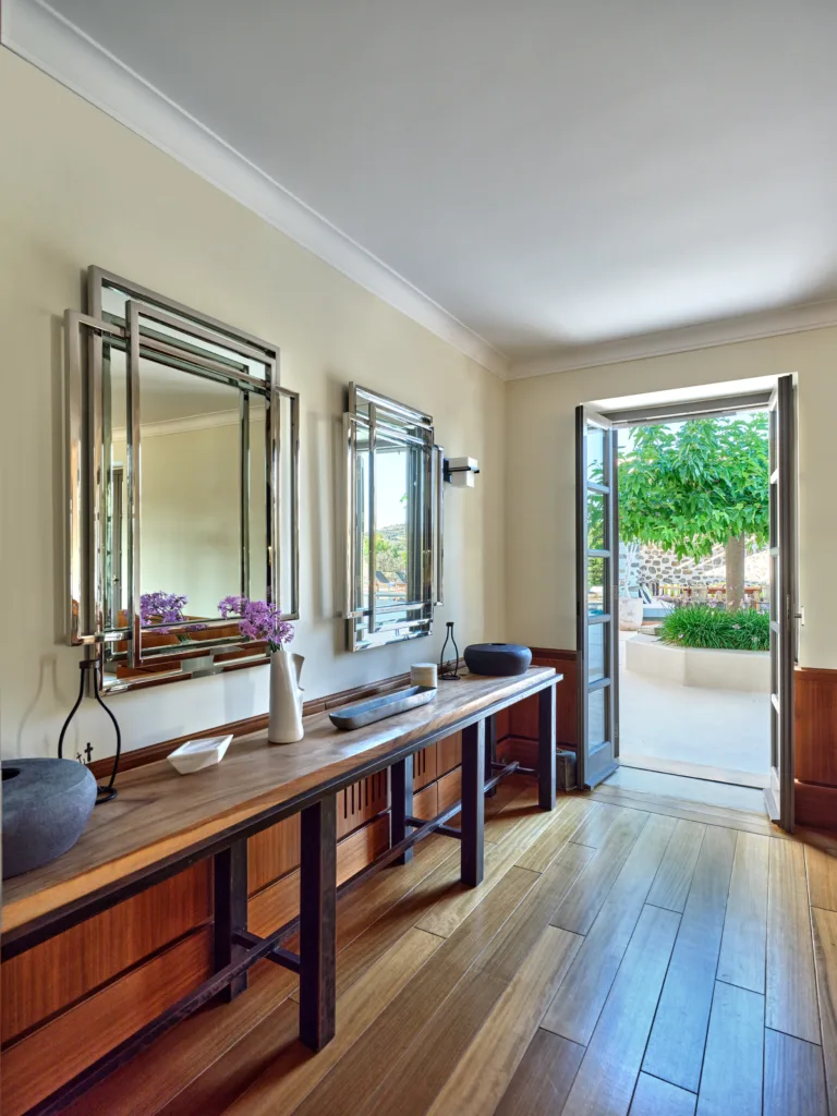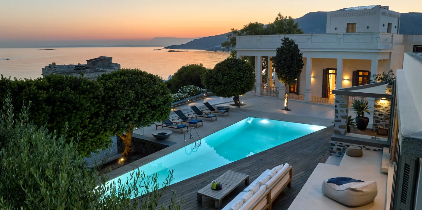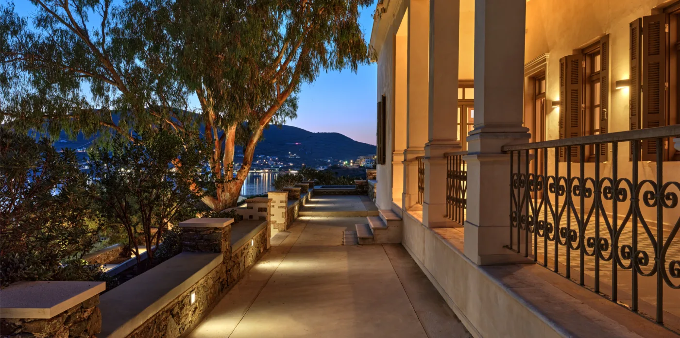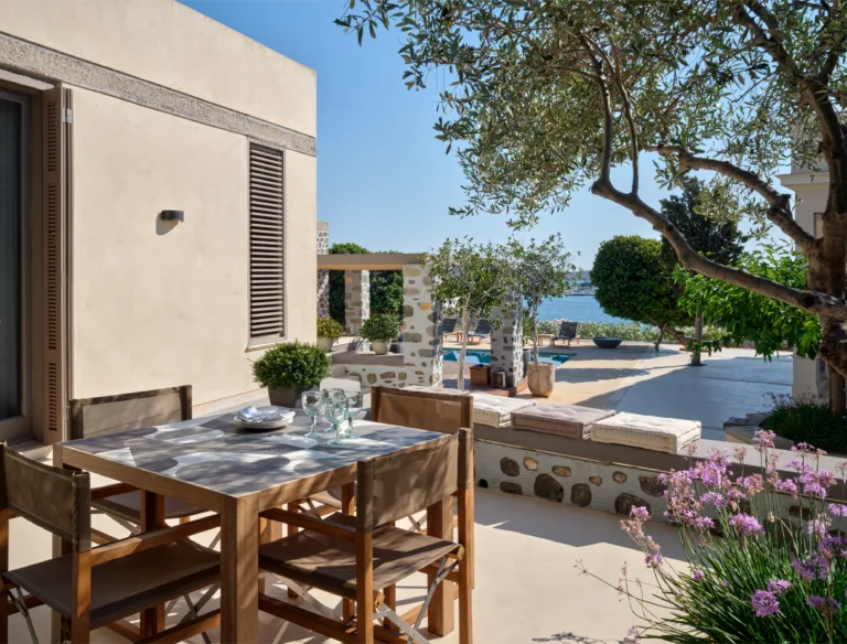 In one of the most prestigious locations on the island, Poseidonia, Eloise will enchant you at first sight. The stunning mansion has been carefully renovated by its owners to combine minimalism, art deco details and neoclassical features in both its indoor and outdoor areas.
