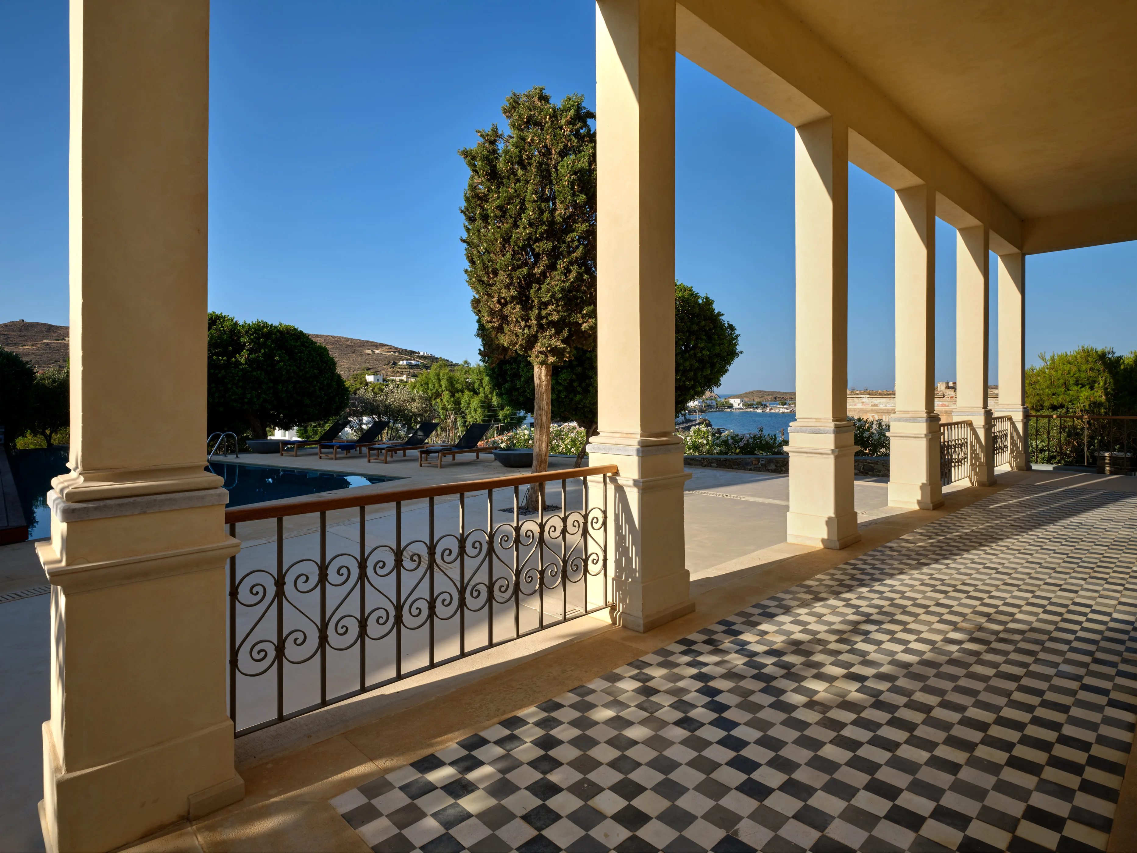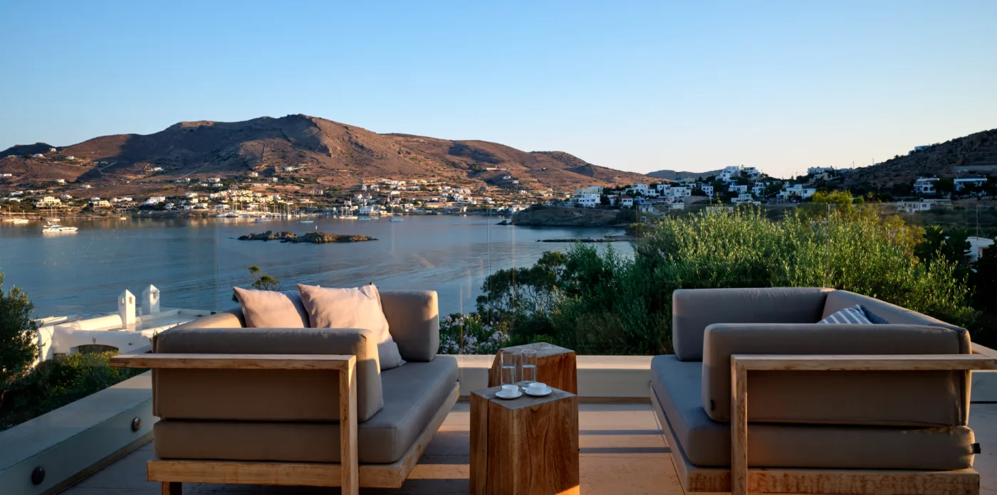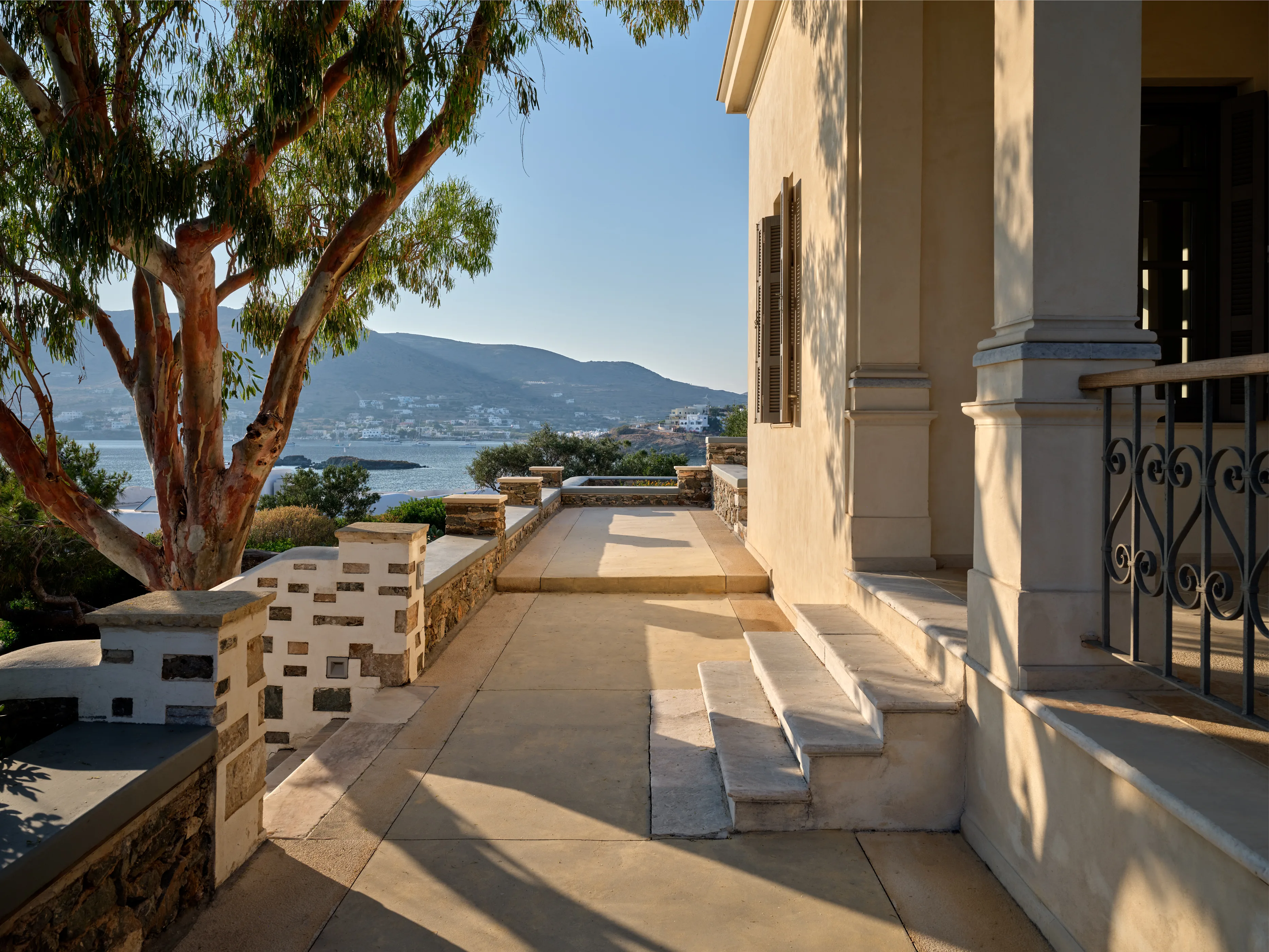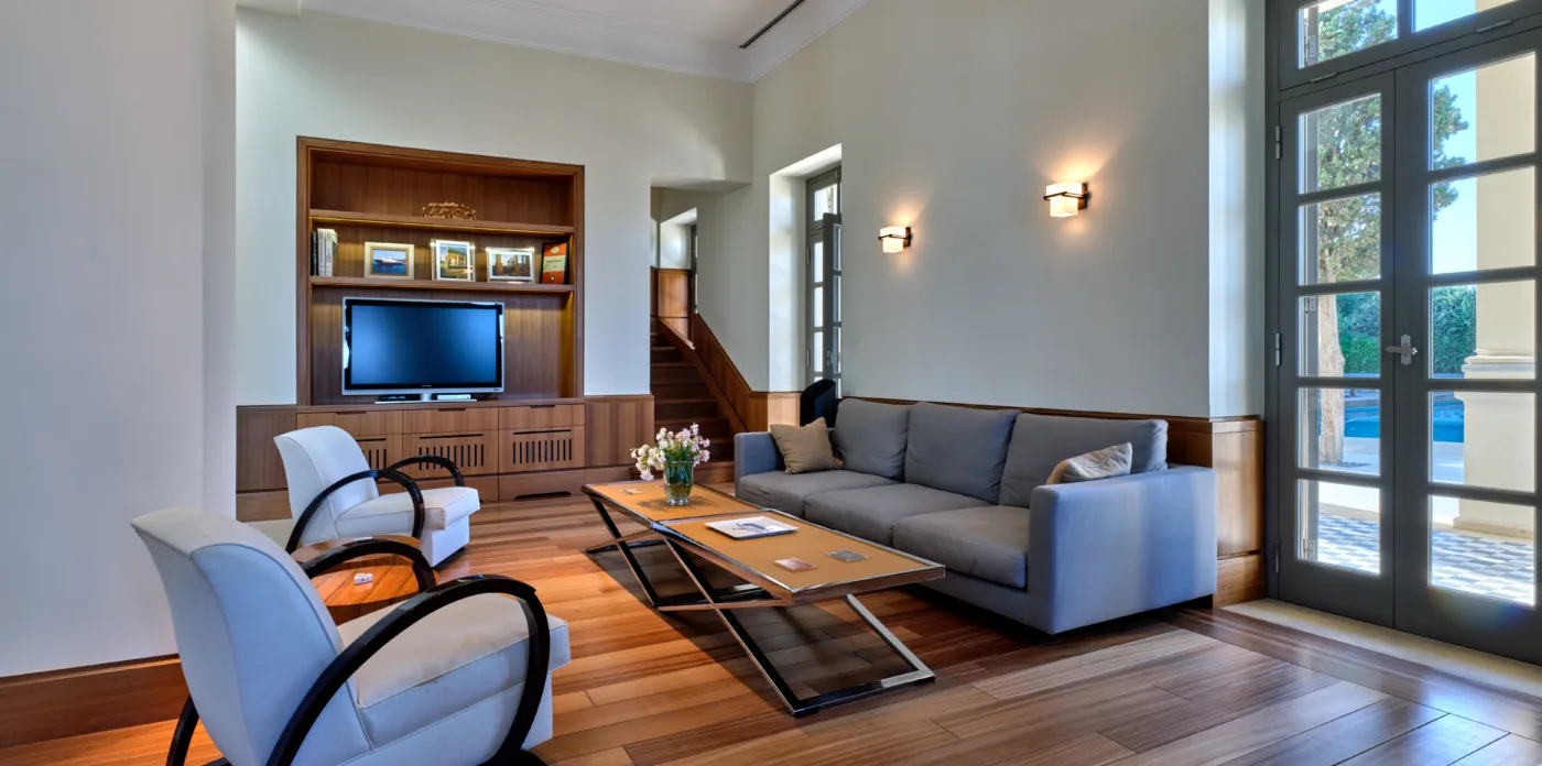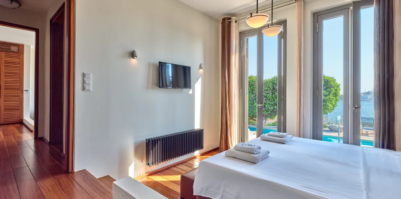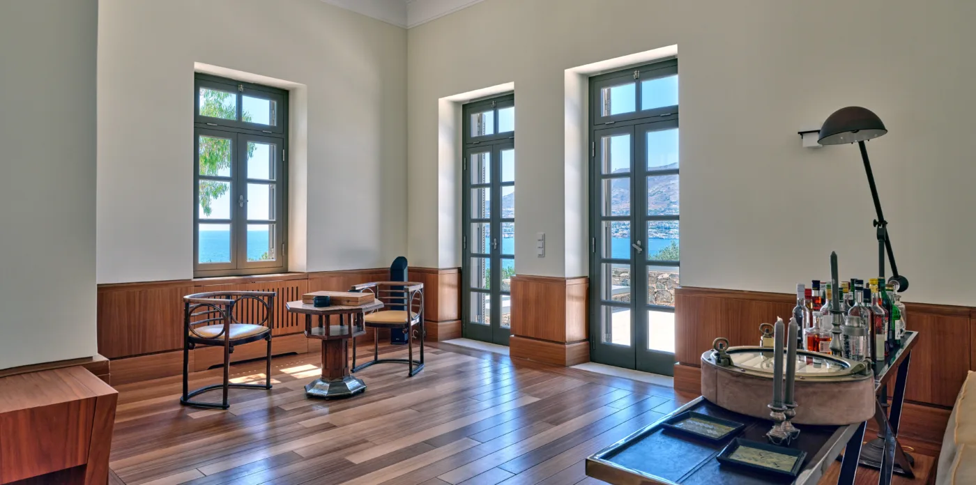 In one of the most prestigious locations on the island, Poseidonia, Eloise will enchant you at first sight. The stunning mansion has been carefully renovated by its owners to combine minimalism, art deco details and neoclassical features in both its indoor and outdoor areas.